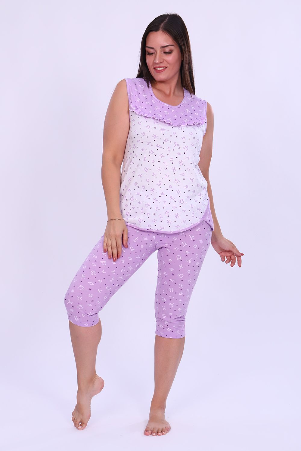 Очаровательные пижамные комплекты из мягкого и нежного натурального хлопка, очень приятного к телу! Состоит из футболки с кокетливой рюшей и удобных бриджей. Домашний комплект отлично садится по фигуре, удобный крой позволяет чувствовать себя свободно и уютно. Удобен в носке и в уходе. Не полиняет и не потеряет форму в течение долгого времени!