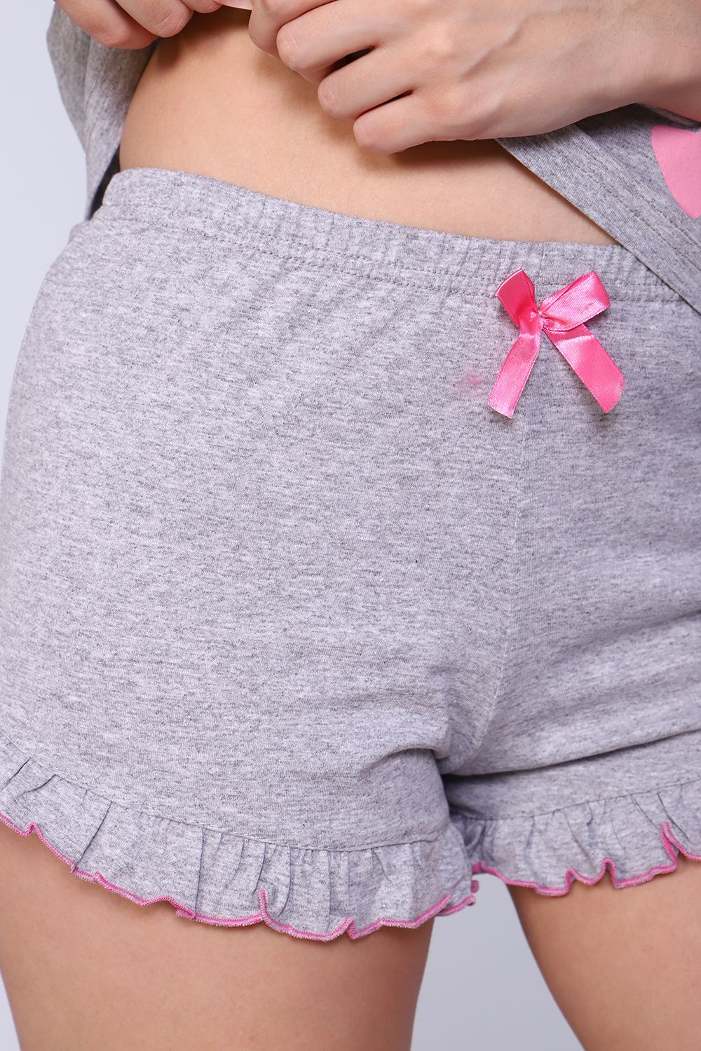 Кокетливый костюмчик для молодежи. Шортики с рюшей по низу, футболка со спущенной проймой. На полочке оригинальная печать. Костюмчик подойдет для сна и как домашний костюм.