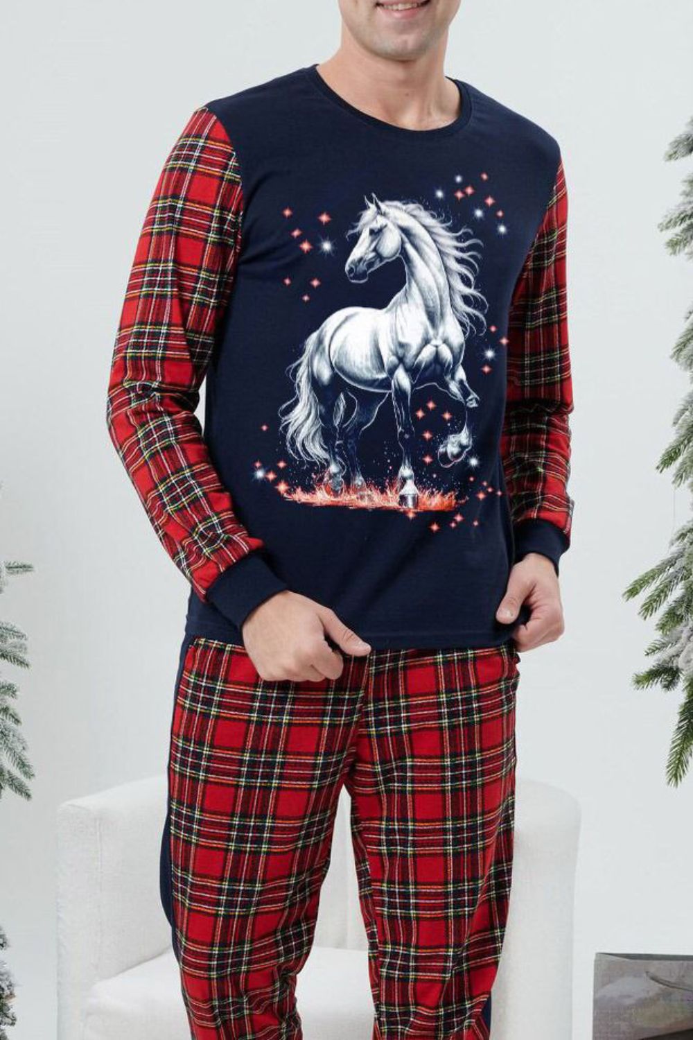Пижама 7290 - лошадь+красно-синяя клетка