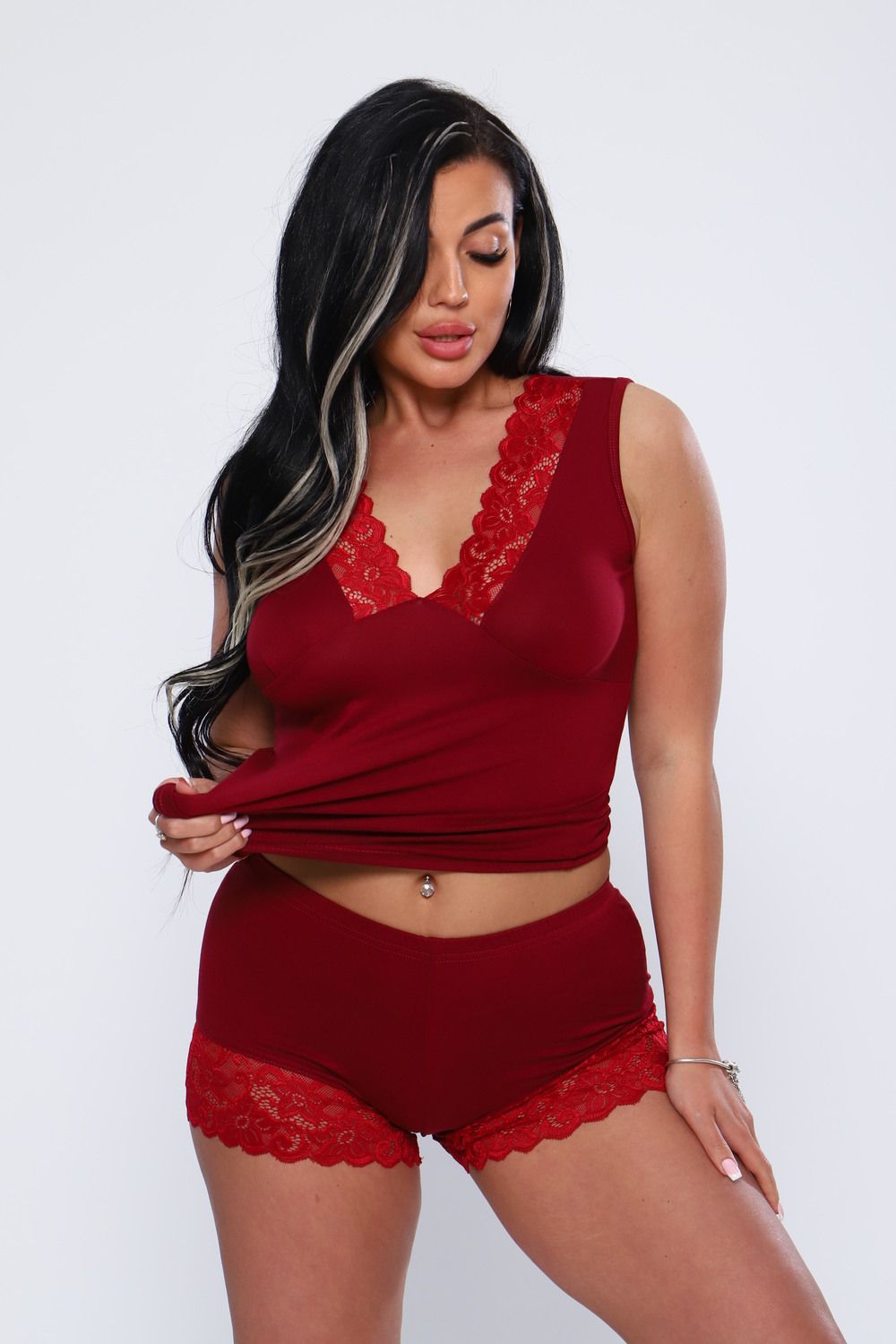 Пижама женская сексуальная с шортами из вискозы.Шортики и майка выполнена из нежной вискозы идеально подчнеркивают фигуру.Майка без рукава по груди сесуальный вырез оформлен кружевом под грудью подрез со складками,шортики по низу с кружевом.в этой пижаме вы будите неотразима .На модели 48 размер. Идеально подойдет к модели 78518.