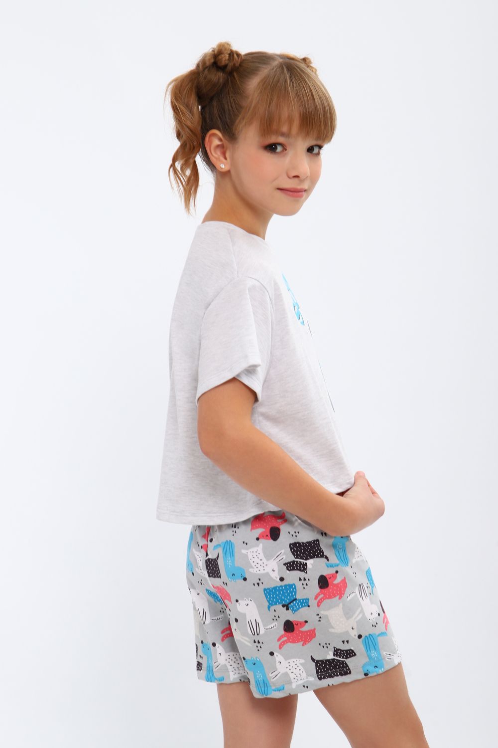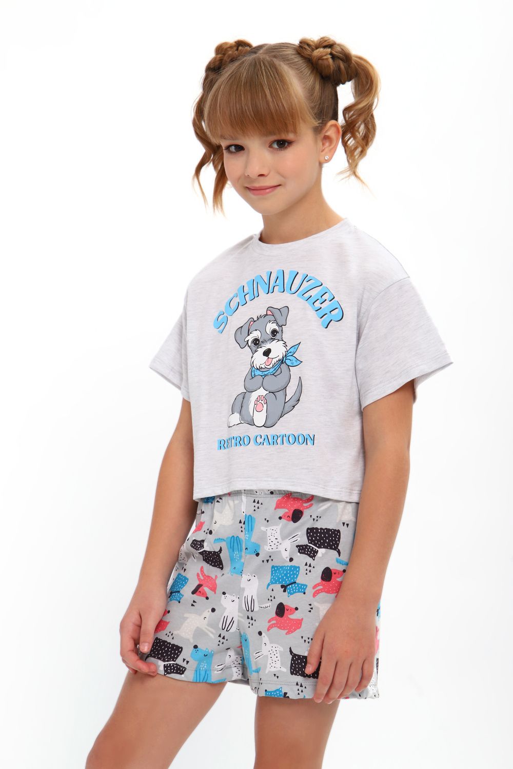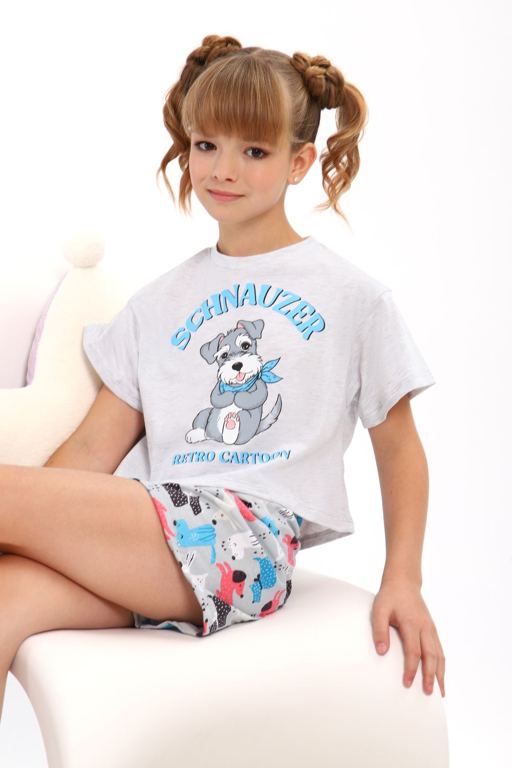 Модная пижамка двойка с милым рисунком. Молодежный крой футболки и стильные шорты. Можно использовать как ночную пижаму для сна, костюм для девчачьей пижамной вечеринки или домашний комплект. Отлично подходит для того чтобы взять ее с собой с вещами в летний лагерь или на отдых в путешествие. Пижама сшита из мягкого хлопкового трикотажа, состоящего из натуральных материалов. Благодаря широкому ряду размеров вы точно сможете подобрать идеальный вариант для детей и для девочек постарше более высокого роста или собрать набор для фемили лука всей семьи!