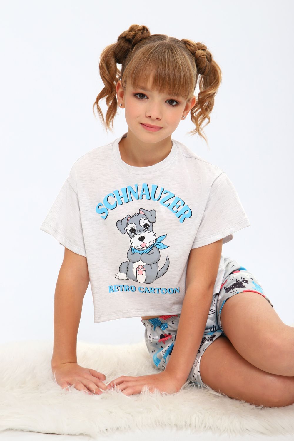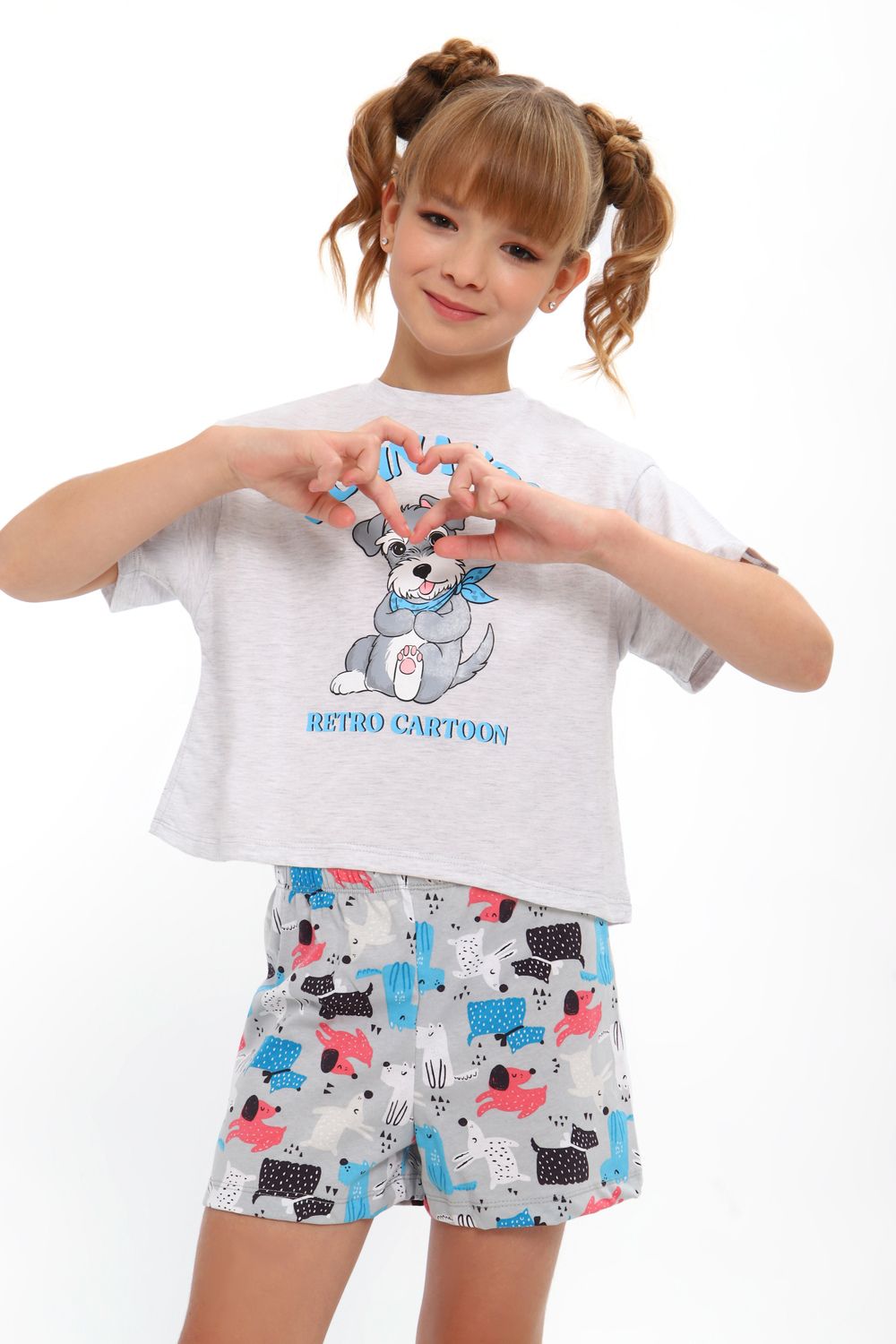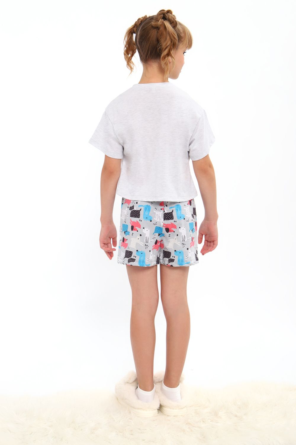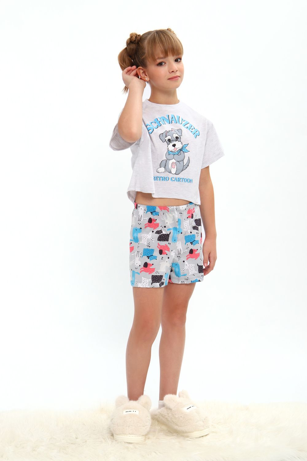 Модная пижамка двойка с милым рисунком. Молодежный крой футболки и стильные шорты. Можно использовать как ночную пижаму для сна, костюм для девчачьей пижамной вечеринки или домашний комплект. Отлично подходит для того чтобы взять ее с собой с вещами в летний лагерь или на отдых в путешествие. Пижама сшита из мягкого хлопкового трикотажа, состоящего из натуральных материалов. Благодаря широкому ряду размеров вы точно сможете подобрать идеальный вариант для детей и для девочек постарше более высокого роста или собрать набор для фемили лука всей семьи!