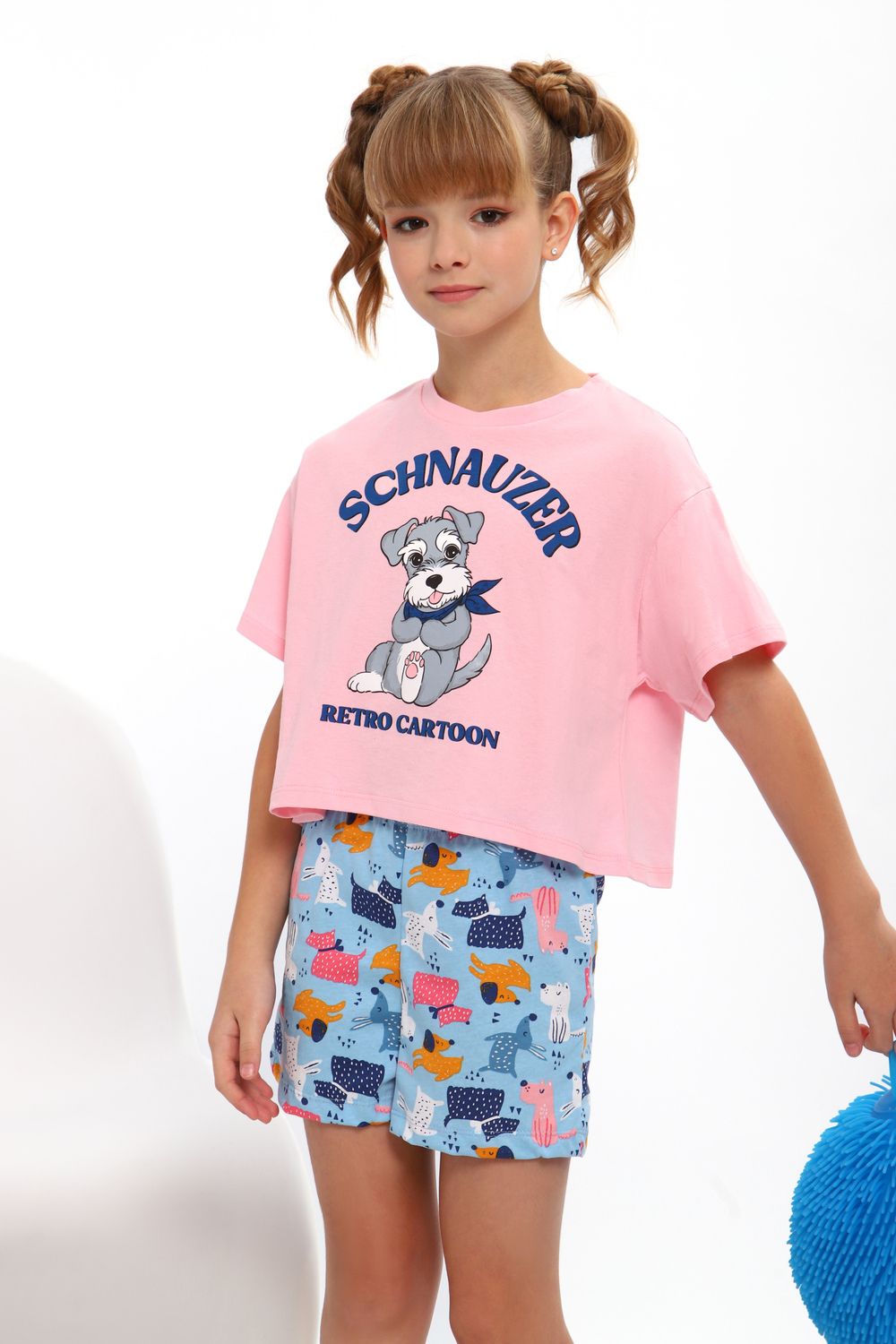 Модная пижамка двойка с милым рисунком. Молодежный крой футболки и стильные шорты. Можно использовать как ночную пижаму для сна, костюм для девчачьей пижамной вечеринки или домашний комплект. Отлично подходит для того чтобы взять ее с собой с вещами в летний лагерь или на отдых в путешествие. Пижама сшита из мягкого хлопкового трикотажа, состоящего из натуральных материалов. Благодаря широкому ряду размеров вы точно сможете подобрать идеальный вариант для детей и для девочек постарше более высокого роста или собрать набор для фемили лука всей семьи!