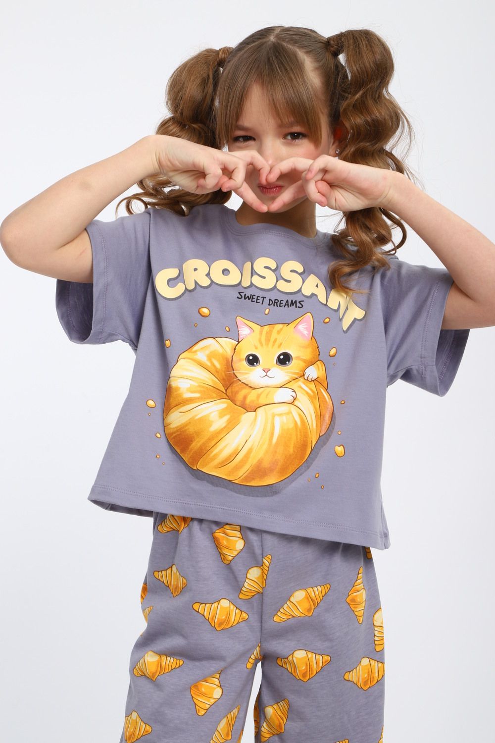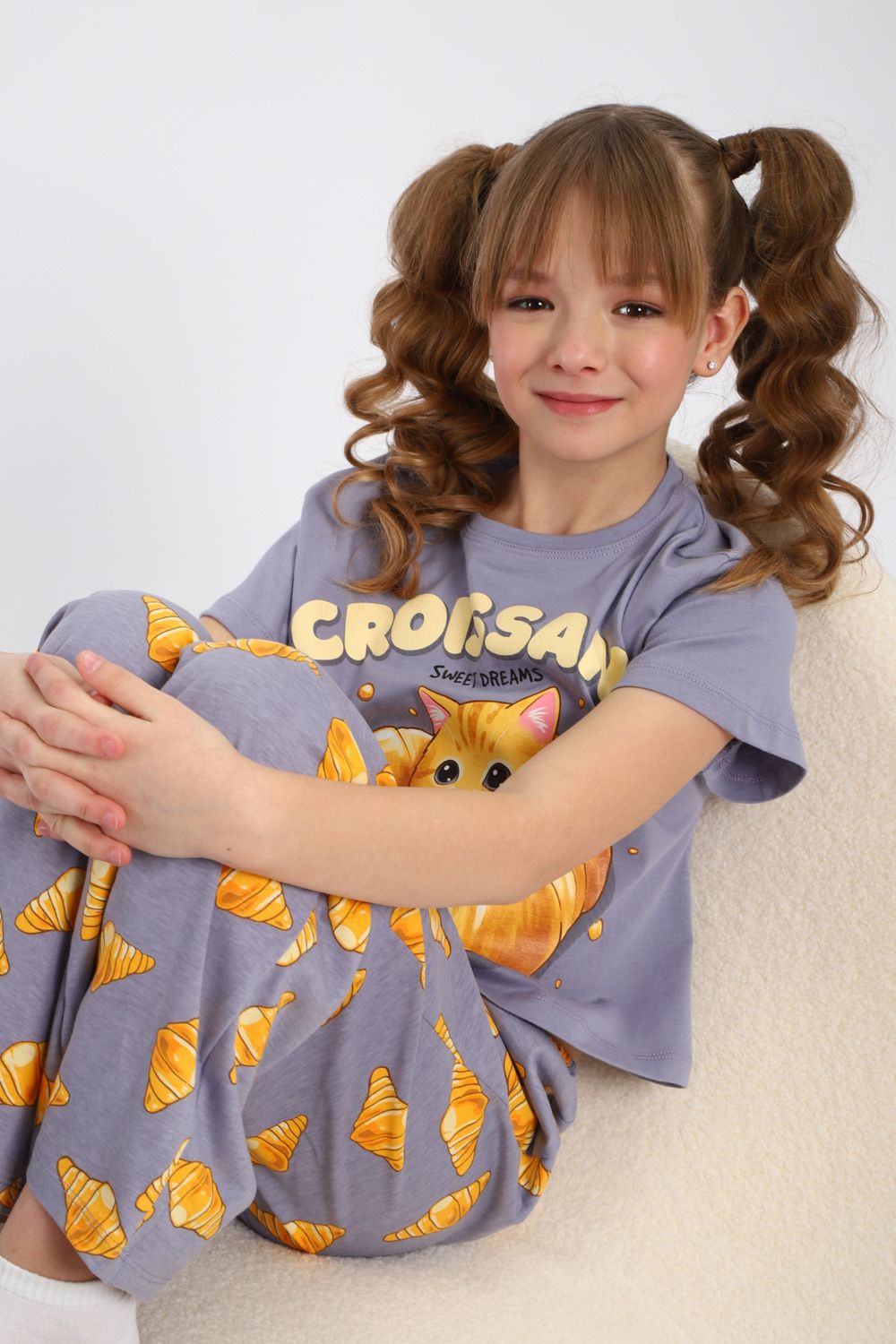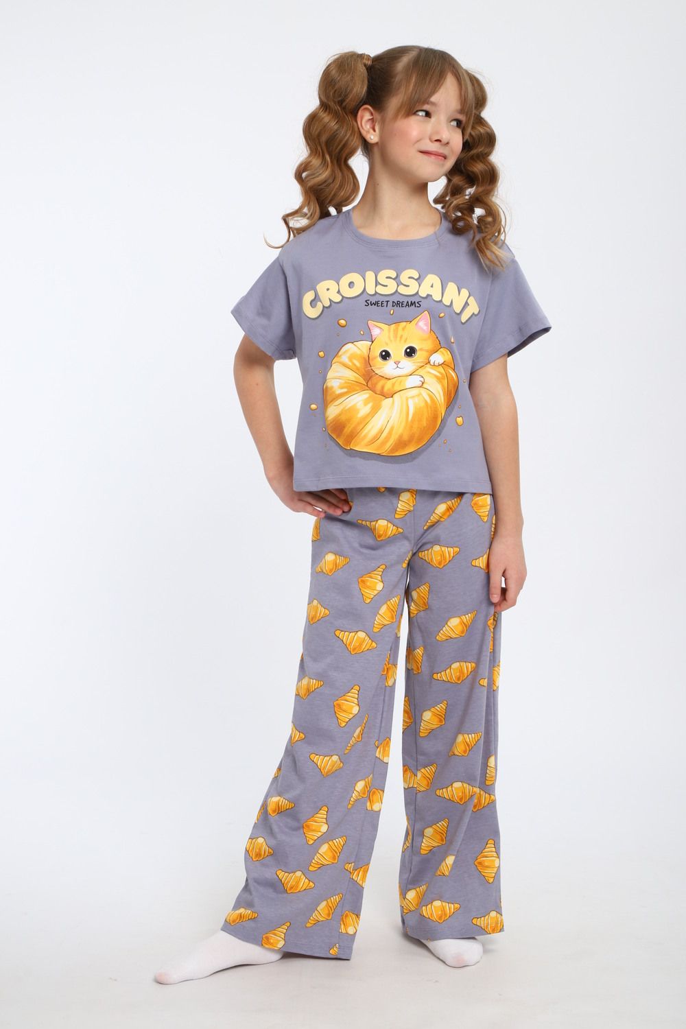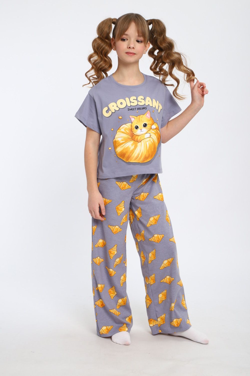 Пижама для девочки "Котенок-круассан" арт. ПД-015-084