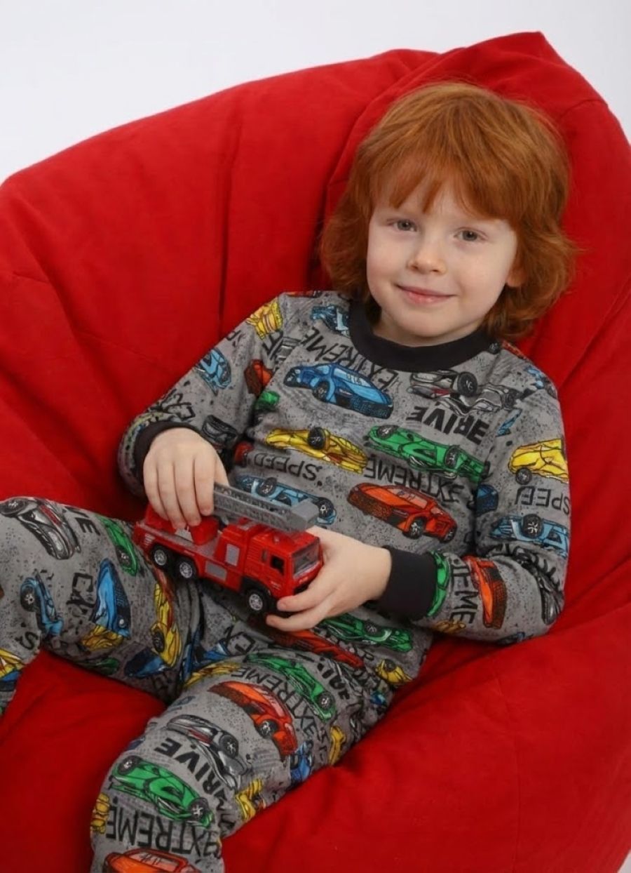 Комфортная пижама с длинным рукавом для мальчика с ярким модным принтом "Гонки", рукава и штанины на манжете. Материал очень мягкий и в то же время износостойкий, не скатывается и не вытягивается. Идеальный подарок на день рождения, новый год, 23 февраля для сына или внука.