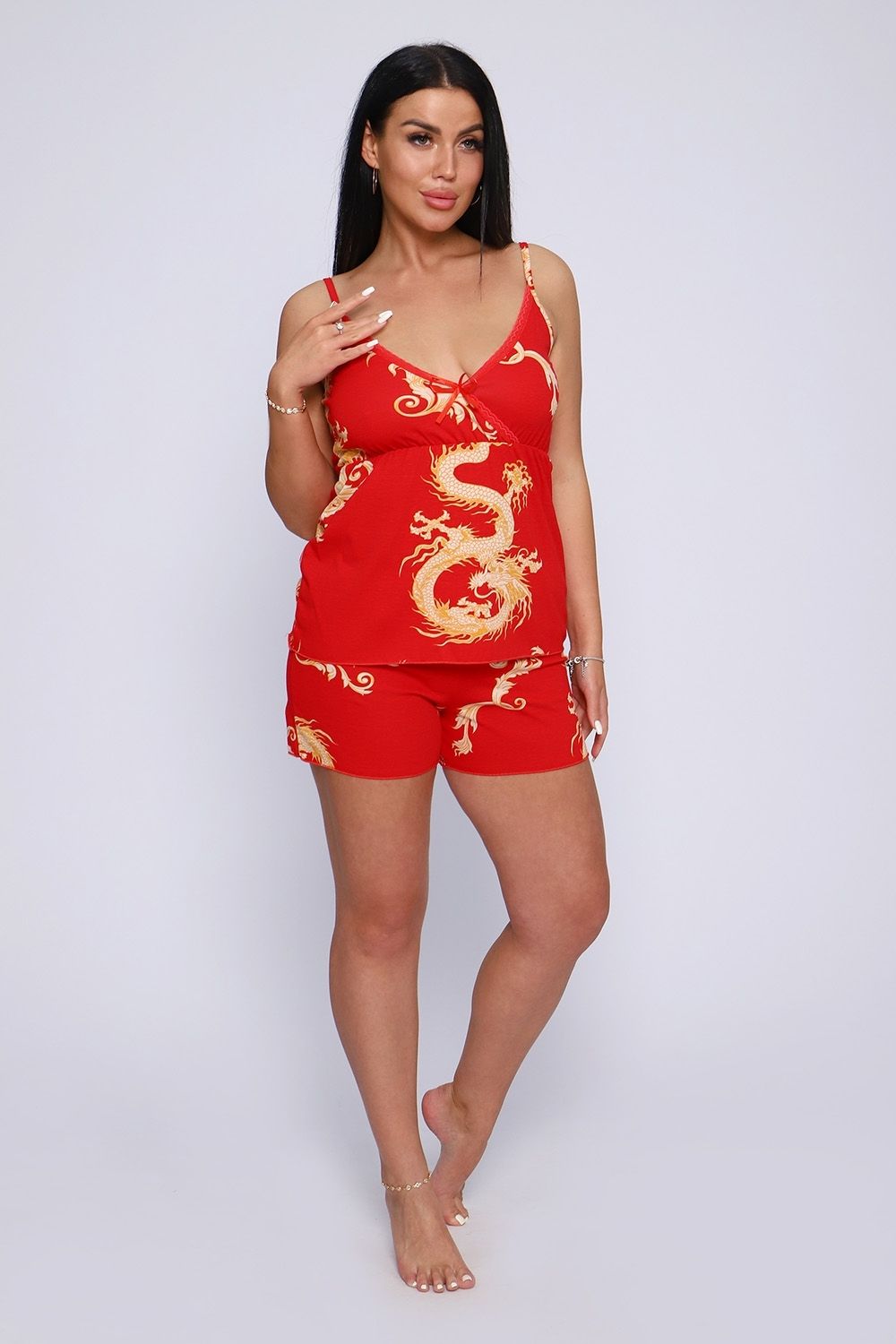 Ищете идеальный комплект для расслабленных домашних вечеров? Стильная пижама с шортами станет жемчужиной вашей коллекции домашней одежды. Это гармоничное сочетание элегантности и комфорта, которое подарит ощущение уюта в любой обстановке. Идеальный подарок на все праздники.