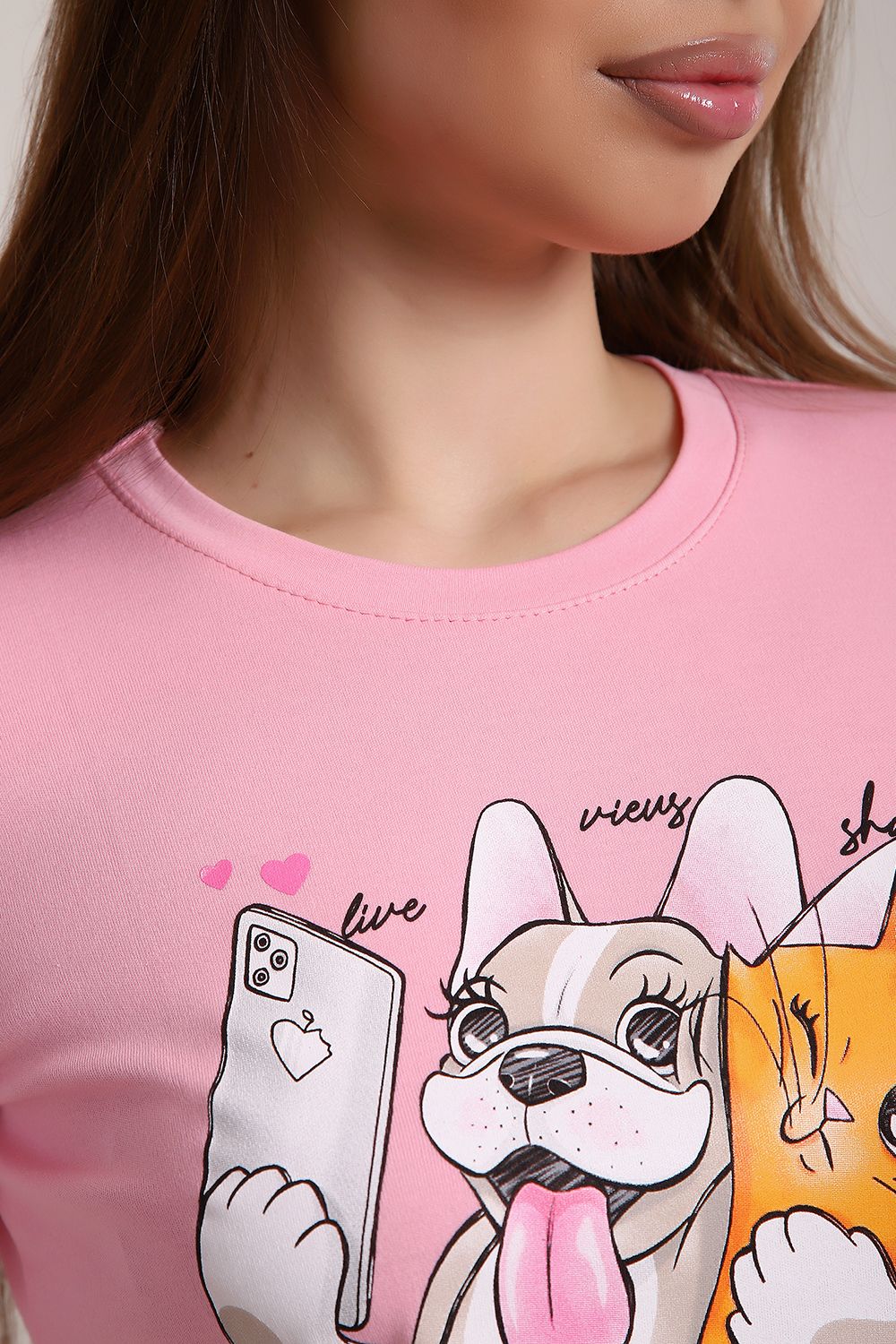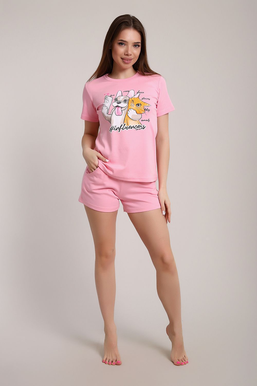 Многофункциональный комплект, состоящий из майки и шортов, изготовленный из качественного хлопкового трикотажа идеально подходит для самых разных вариантов использования. Он может быть одеждой для сна, домашним нарядом, а так же костюмом для молодежной вечеринки. Костюм прекрасно подойдет для девочек подростков, женщин и девушек всех возрастов. Полочка кофты украшена милым принтом. Благодаря использованию мягкого трикотажа из 100% хлопка, вы будете наслаждаться комфортом и уютом во время ночного сна или отдыха дома