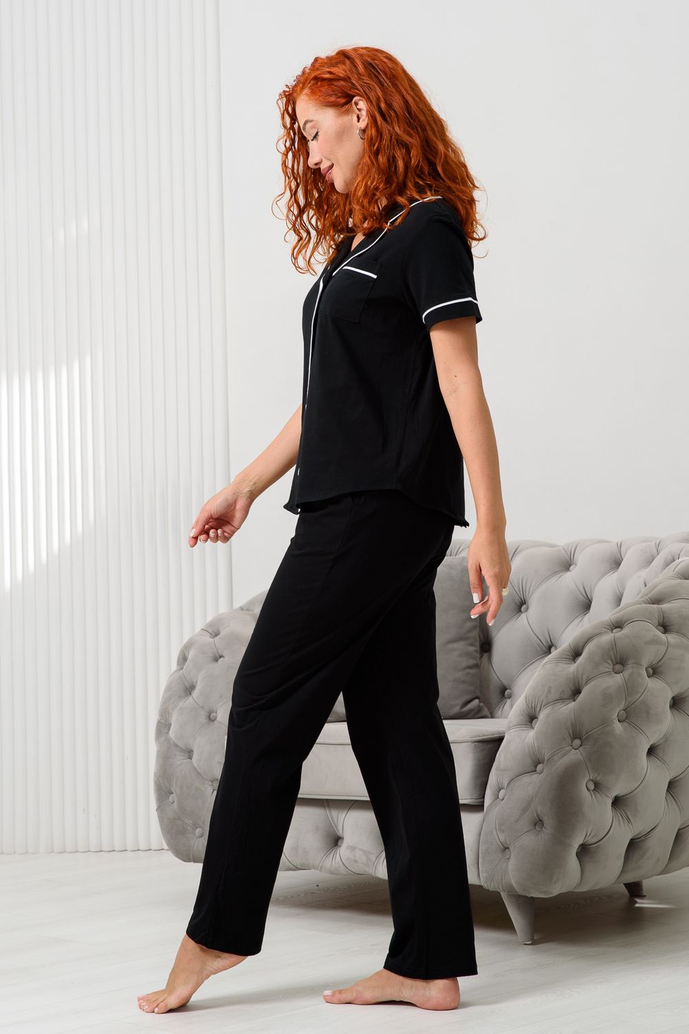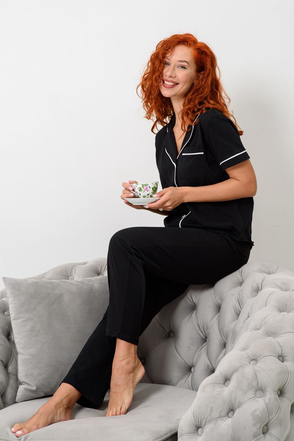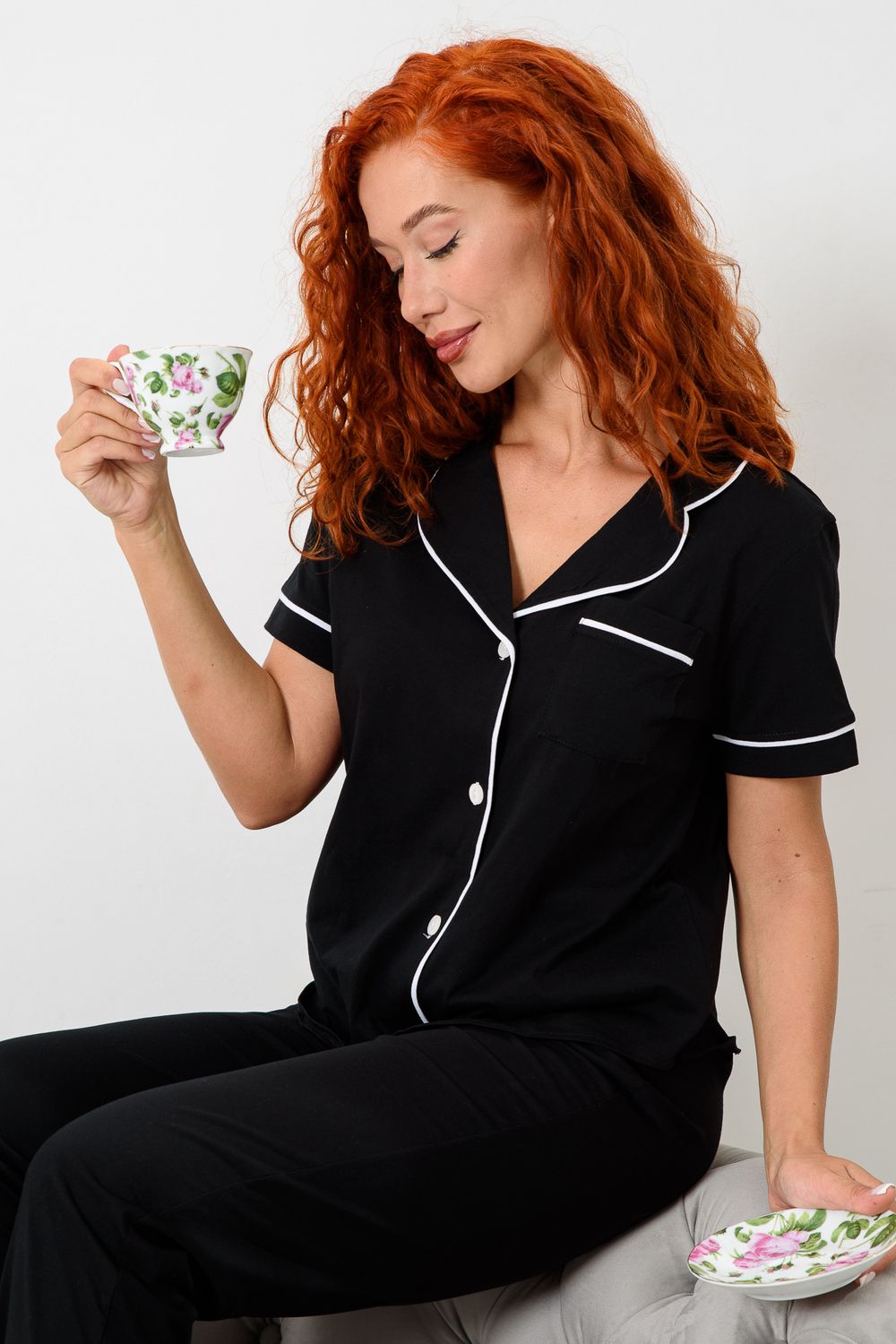 Уютный пижамный комплект – это то, что Вам нужно, для комфортного ночного сна и вечернего отдыха! Домашний костюм из новой коллекции нашего бренда включает рубашку на пуговицах и штаны с высокой посадкой. Вещи сшиты из приятной к телу и хорошо дышащей хлопковой ткани. Они имеют прямой свободный крой, благодаря чему не стесняют движений и не доставляют дискомфорта. Рубашка с длинными рукавами и отложным воротником дополнена карманом на груди. Она отлично сочетается с брюками на эластичной резинке. Красивая и удобная пижамка подойдет взрослым женщинам и молодым девушкам. Это универсальный спальный комплект, который станет базовым в домашнем гардеробе девочек – подростков.