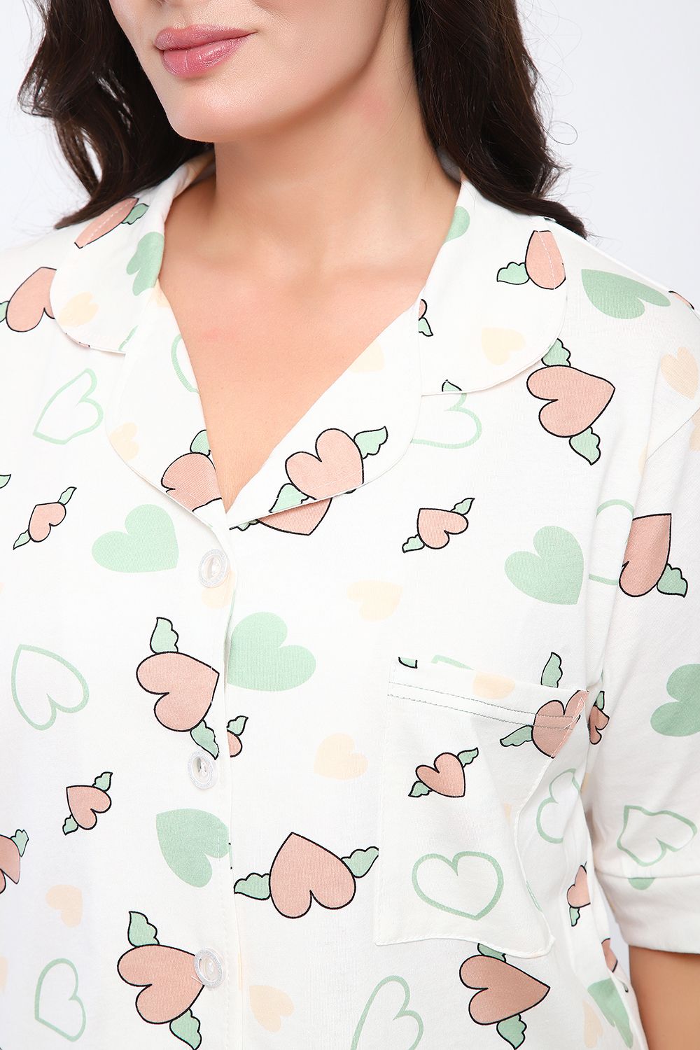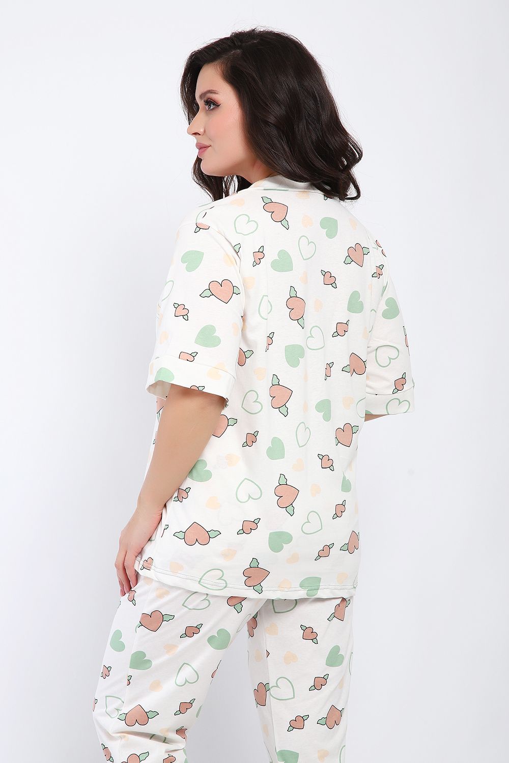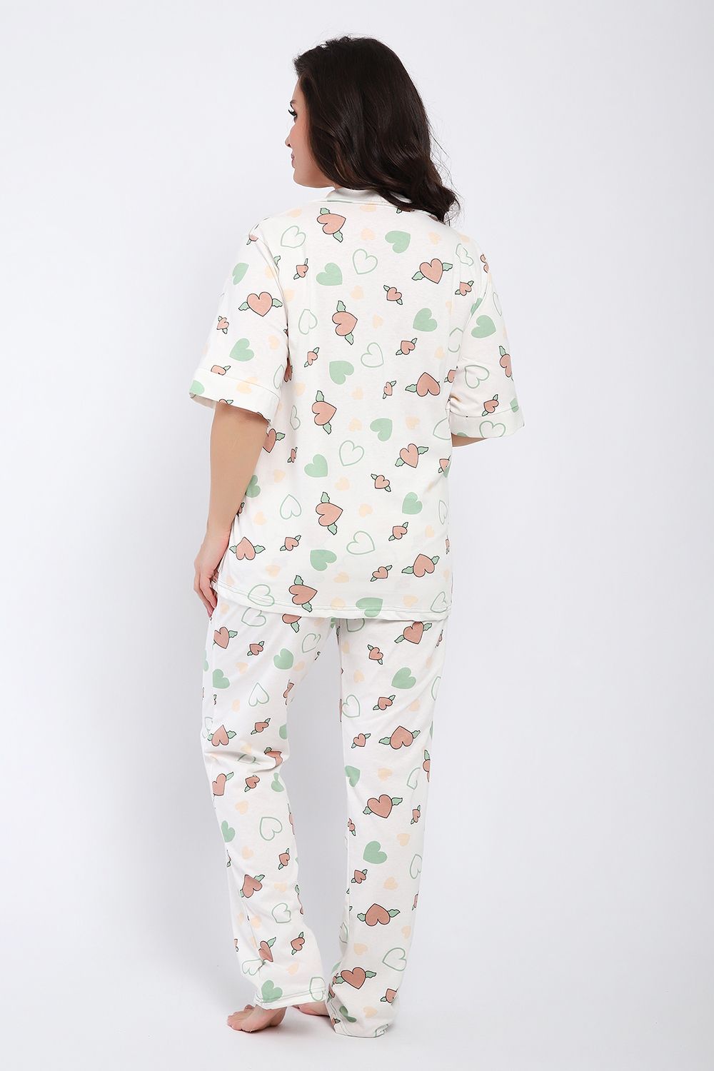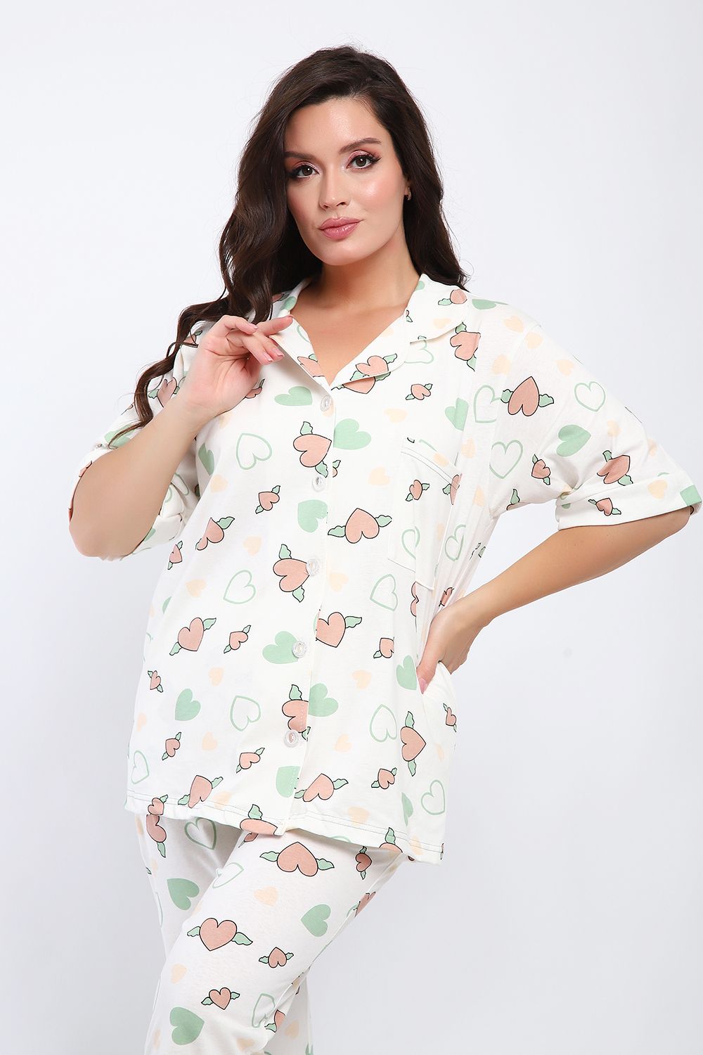 Женская пижама состоит из рубашки и брюк. В этом ансамбле вы найдете все - трендовая расцветка, идеальная посадка, широкий размерный ряд. Рубашка свободного покроя застегивается на 5 пуговиц, на груди накладной карман. Брюки прямого покроя с карманами по бокам. Выглядеть прекрасно дома - это просто.