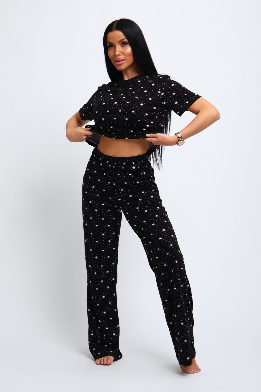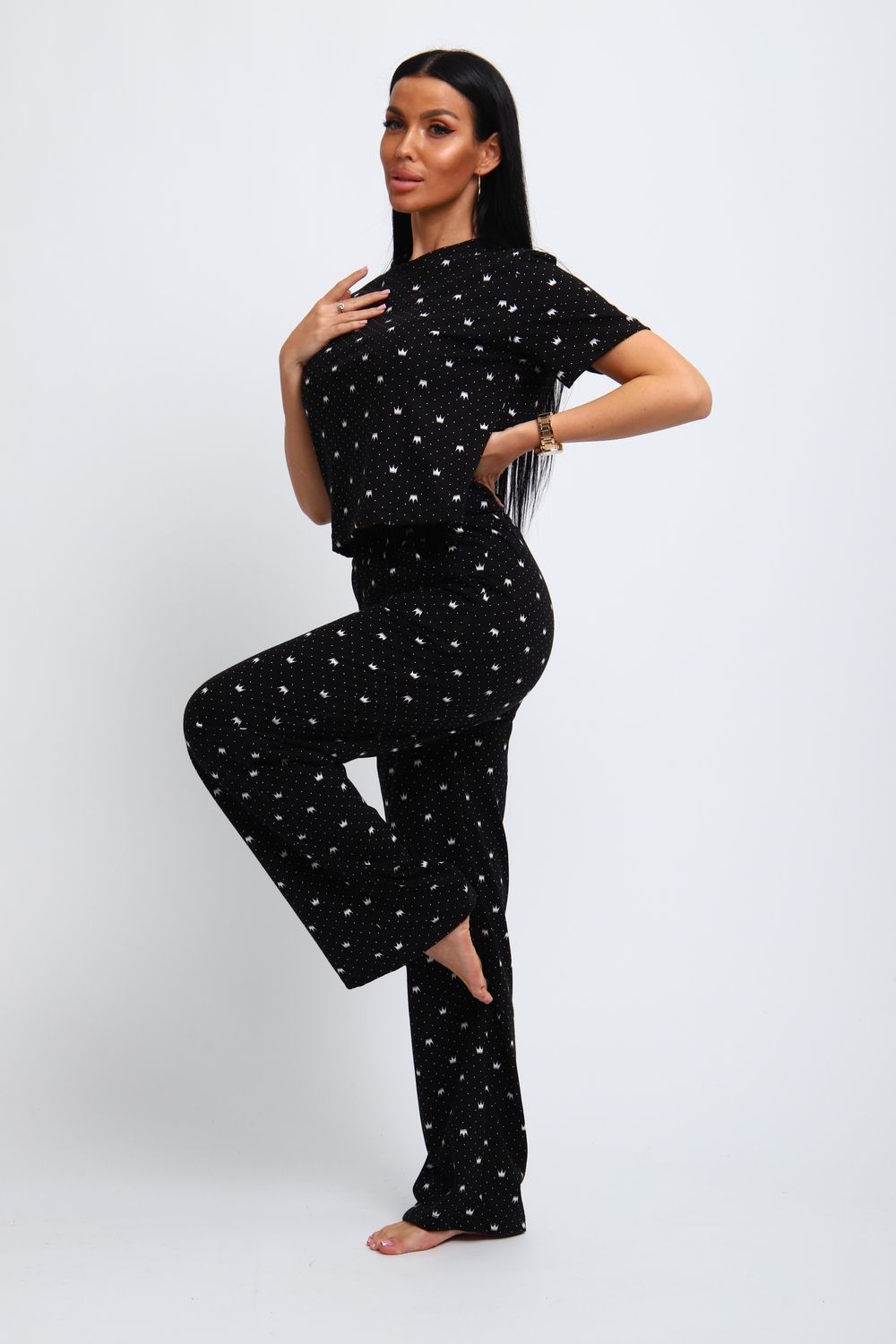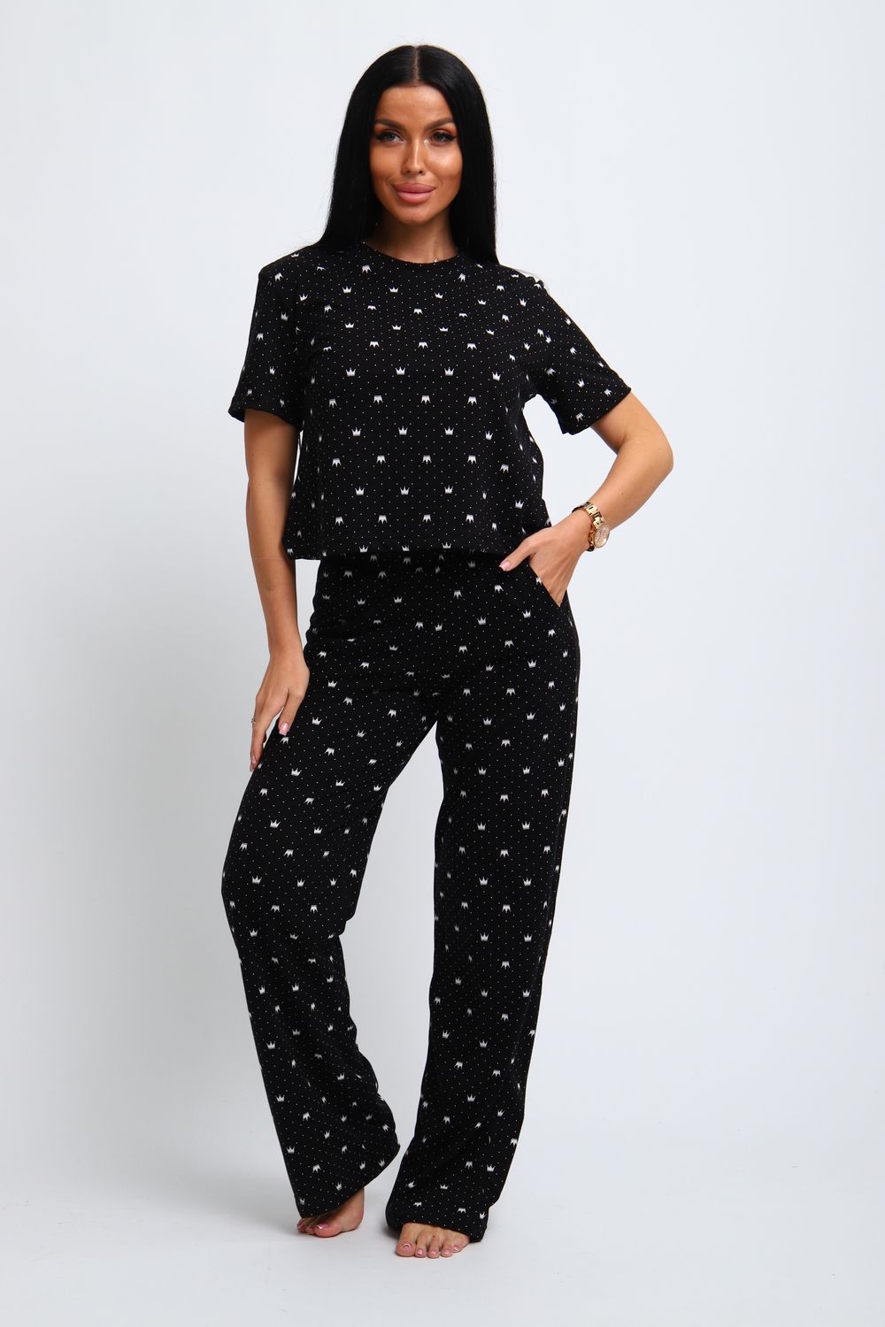 Пижама женская футболка и брюки. Брюки прямого кроя, с карманами. Футболка с коротким рукавом.