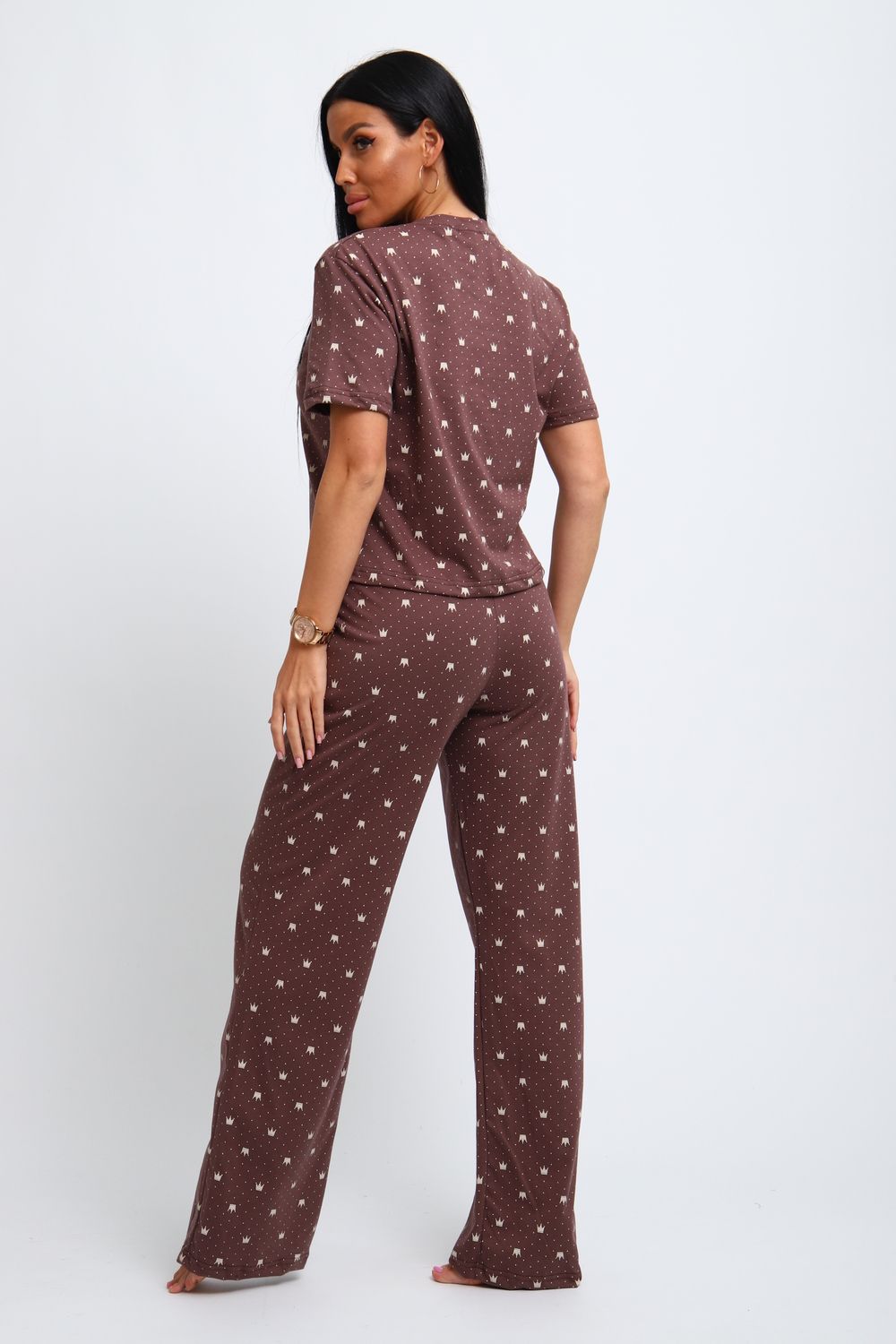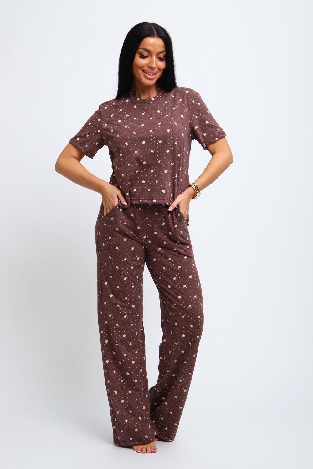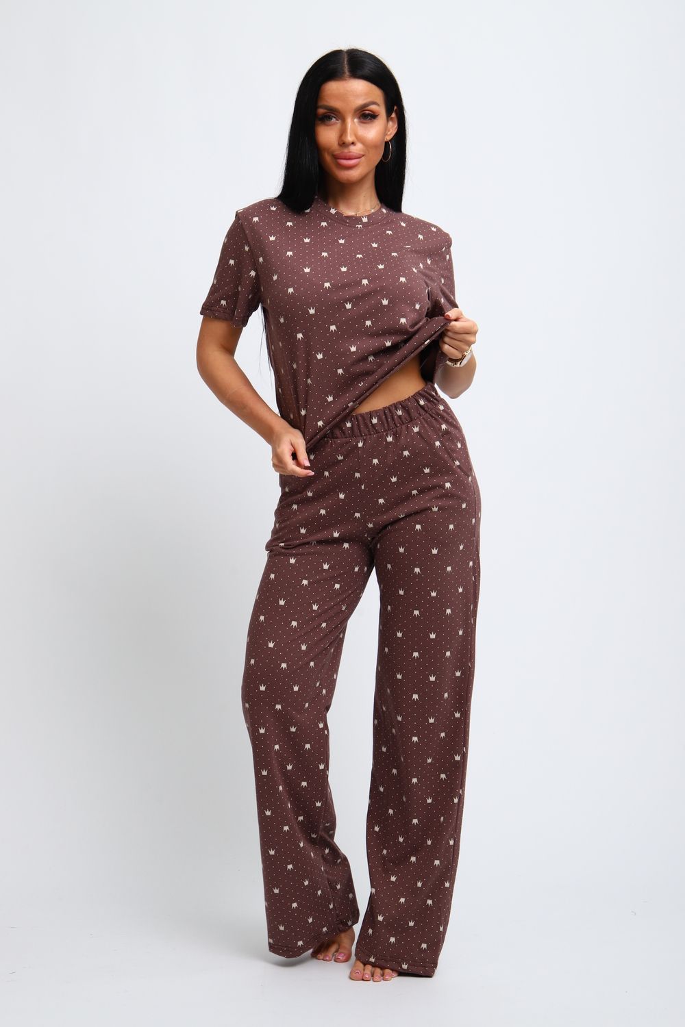 Пижама футболка и брюки. Брюки прямого кроя, с карманами. Футболка с коротким рукавом.