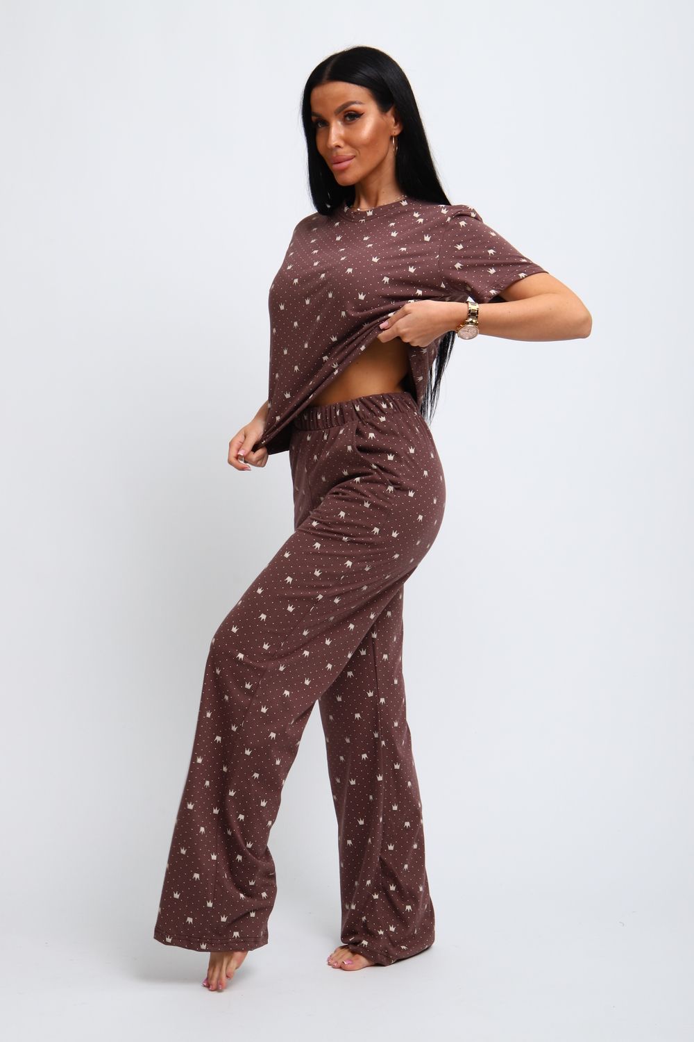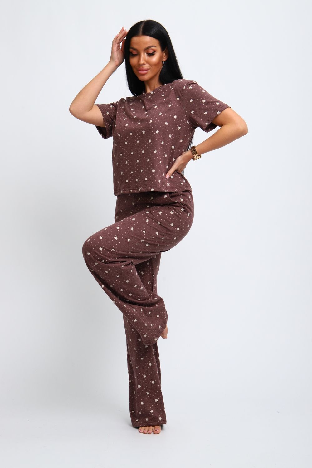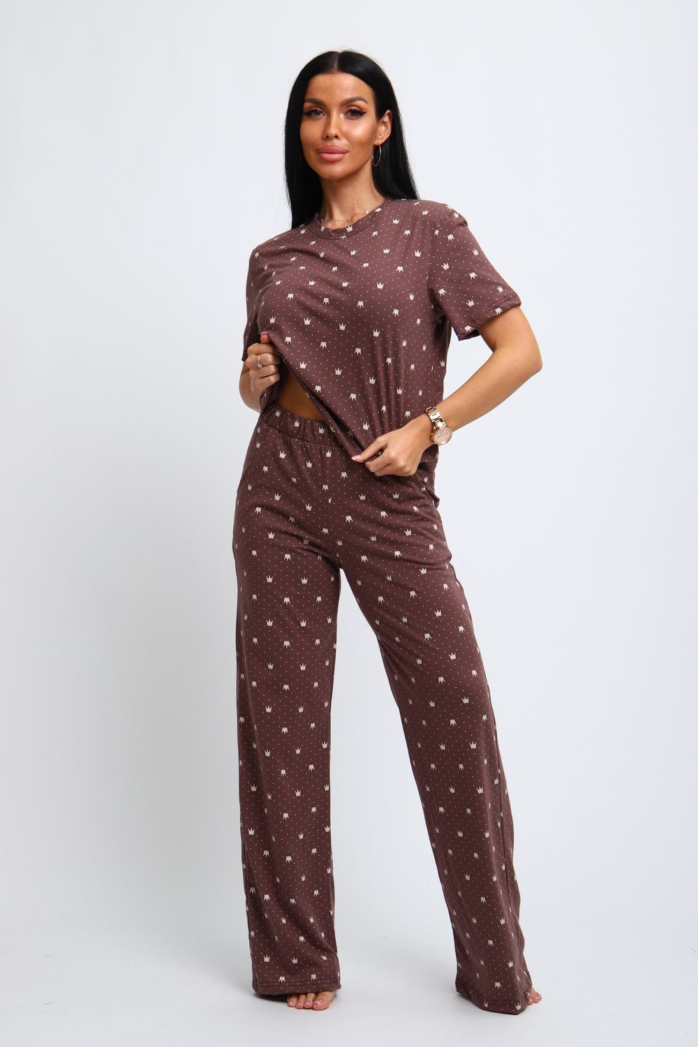 Пижама футболка и брюки. Брюки прямого кроя, с карманами. Футболка с коротким рукавом.