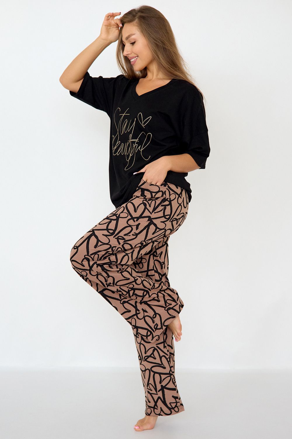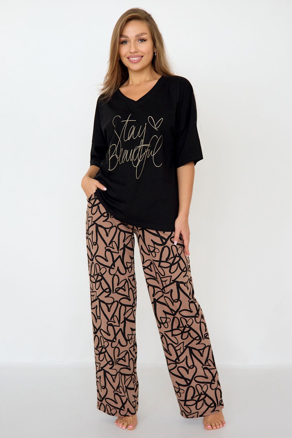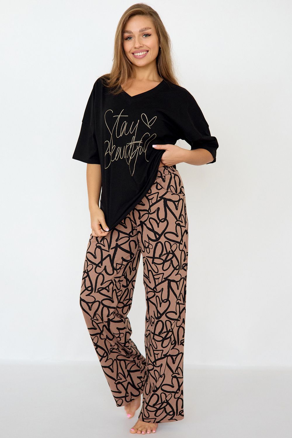 Пижама женская Кэр - черный/коричневый