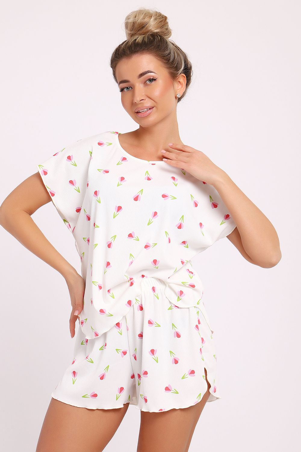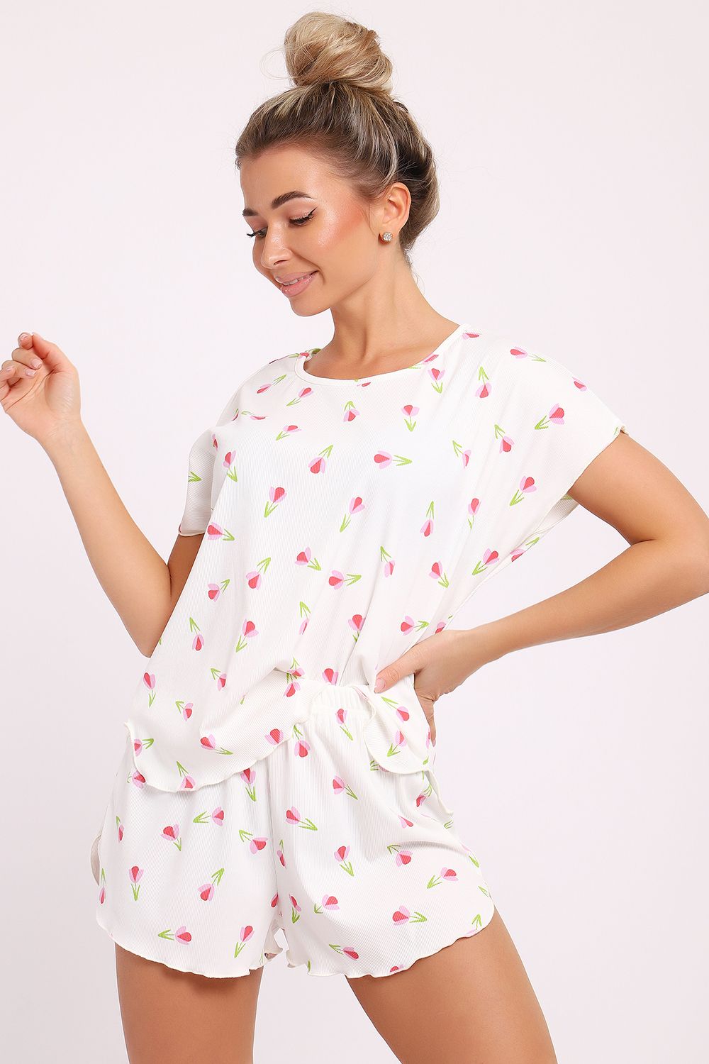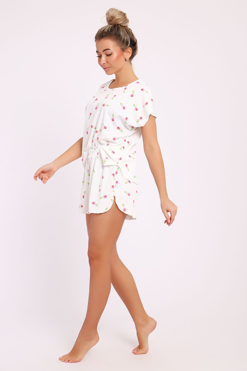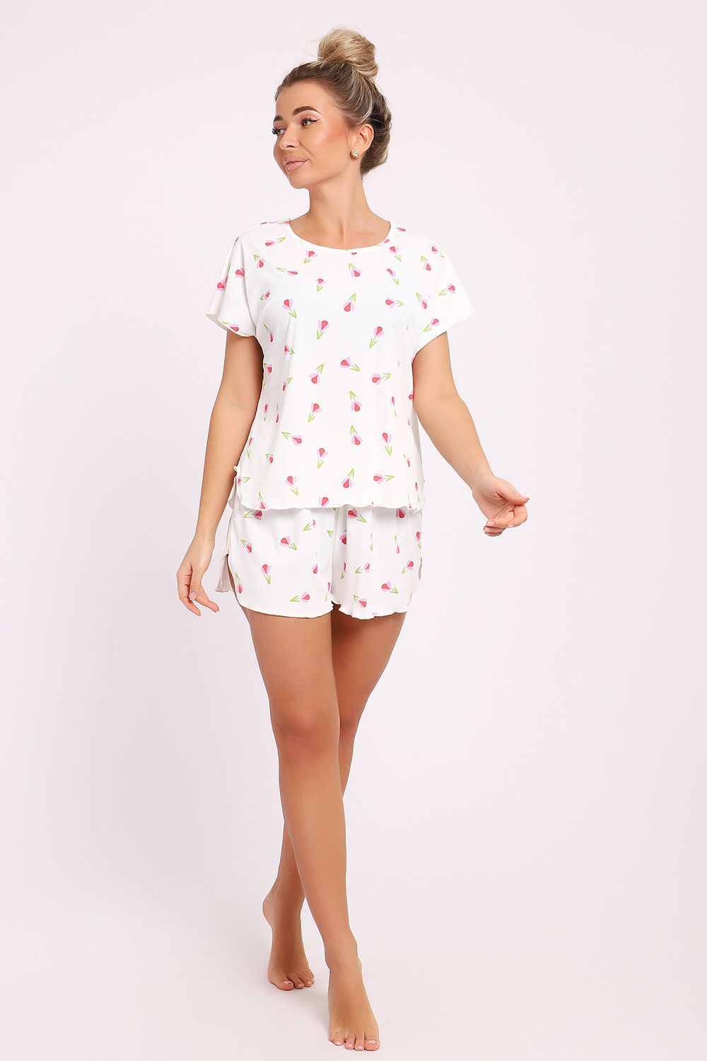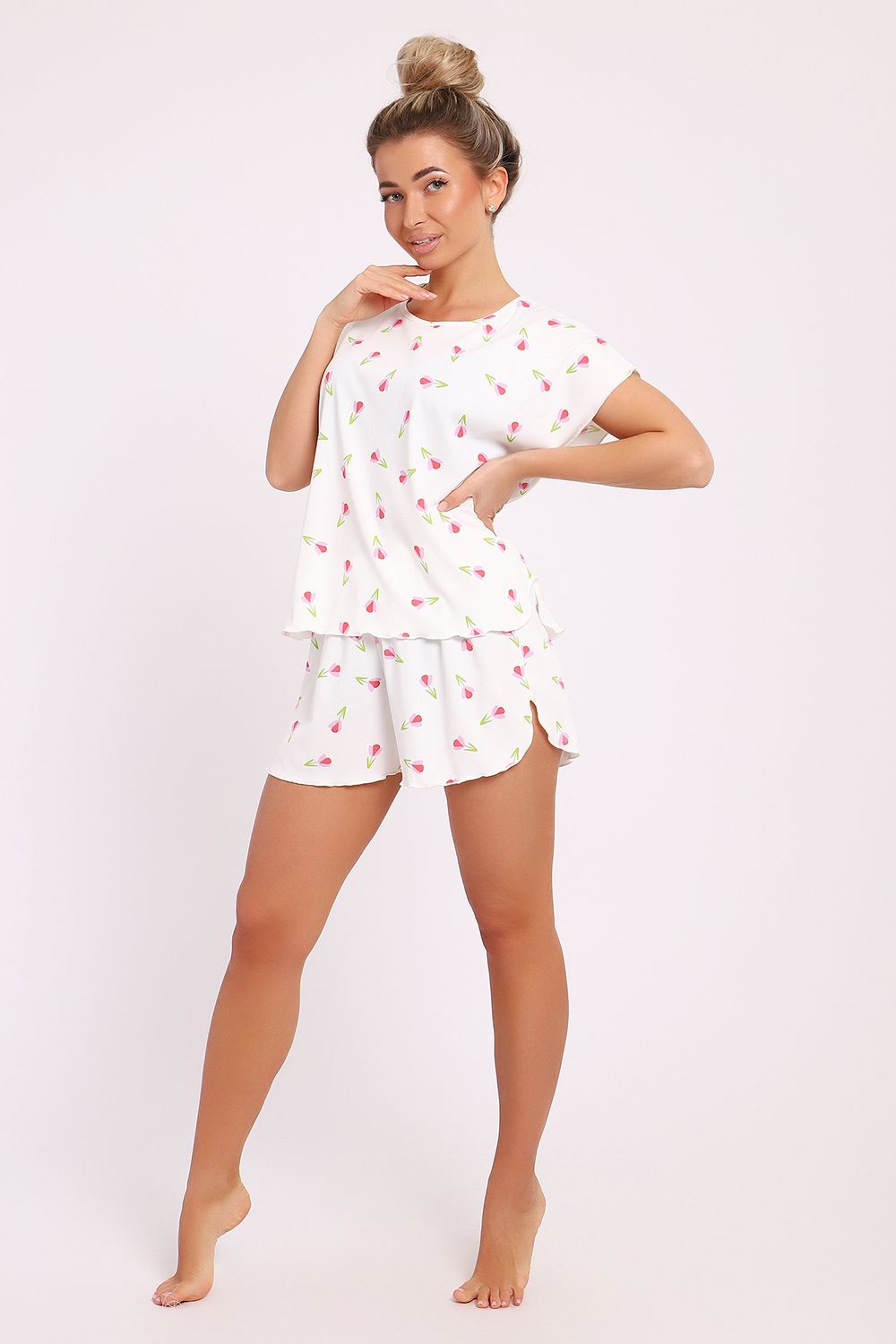 Не упустите возможность обновить свой гардероб с помощью стильной и удобной домашней одежды. Наша пижама с шортами — это не просто одежда, это способ создать уютную атмосферу в вашем доме. Кроме того, яркий и жизнерадостный принт поможет поднять настроение в любой ситуации. Выбирая этот набор, вы делаете ставку на качество и стиль, которые не подведут вас в самый нужный момент. Пожалуй, такой комплект станет вашей любимой домашней одеждой, в которой приятно не только отдыхать, но и заниматься повседневными делами. Позвольте себе насладиться комфортом и женственностью в домашней обстановке с этой великолепной пижамой, которая станет вашим верным спутником в уютные вечера и спокойные утренние часы.