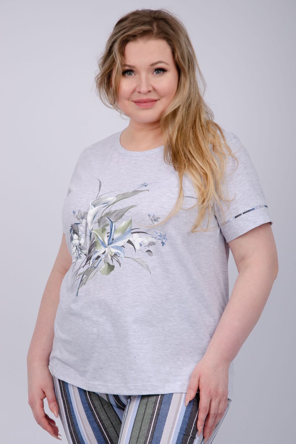 Пижама женская со штанами изготовлена из мягкой ткани (100 % хлопка), которая обладает дышащими и влаговпитывающими свойствами, идеально подходит для сна, обеспечивает максимальную практичность и воздухопроницаемость, облегчая сон даже в самые жаркие и холодные ночи. Женский домашний костюм состоит из стильной тонкой ночной футболки с коротким рукавом и легких брюк, которые создают комфортный домашний уют дома. Милая женская пижамка украшена принтом. Пижама женская яркая и в тоже время нежная, идеальна для беременных, будущих мам или в роддом, ведь в этой пижаме для беременных удобно весь день. Носить можно в любое время года: осенью или даже зимой под согревающим одеялом.