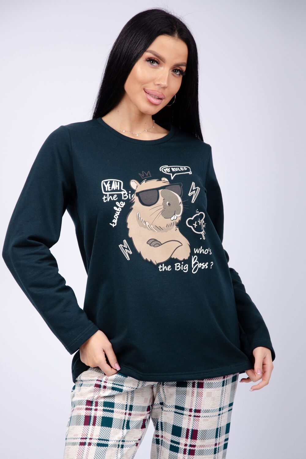 Эта модель доступна в больших размерах, поэтому идеально подойдёт для любых фигур. Удобный свободный крой не сковывает движения, позволяя чувствовать себя комфортно в любое время суток. Пижама женская с брюками особенно практична для зимних уикендов, когда так приятно завернуться в мягкую ткань и насладиться уютом.