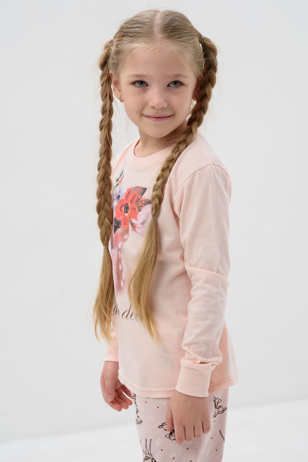 Пижама для девочки подростка со штанами и кофтой из трикотажа будет идеальным выбором для дома и детского сада. Резинка не вшита, поэтому ее можно убавить. Манжеты на пижаме смогут отрегулировать длину кофты и брюк.