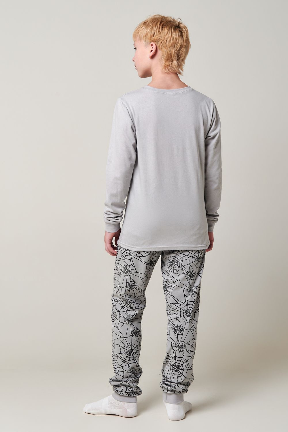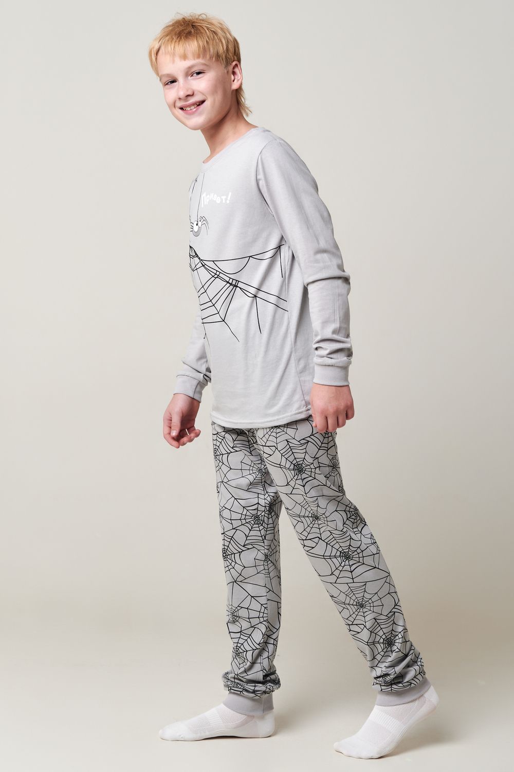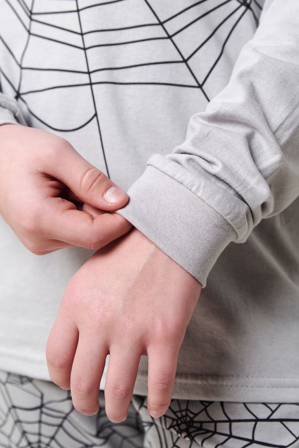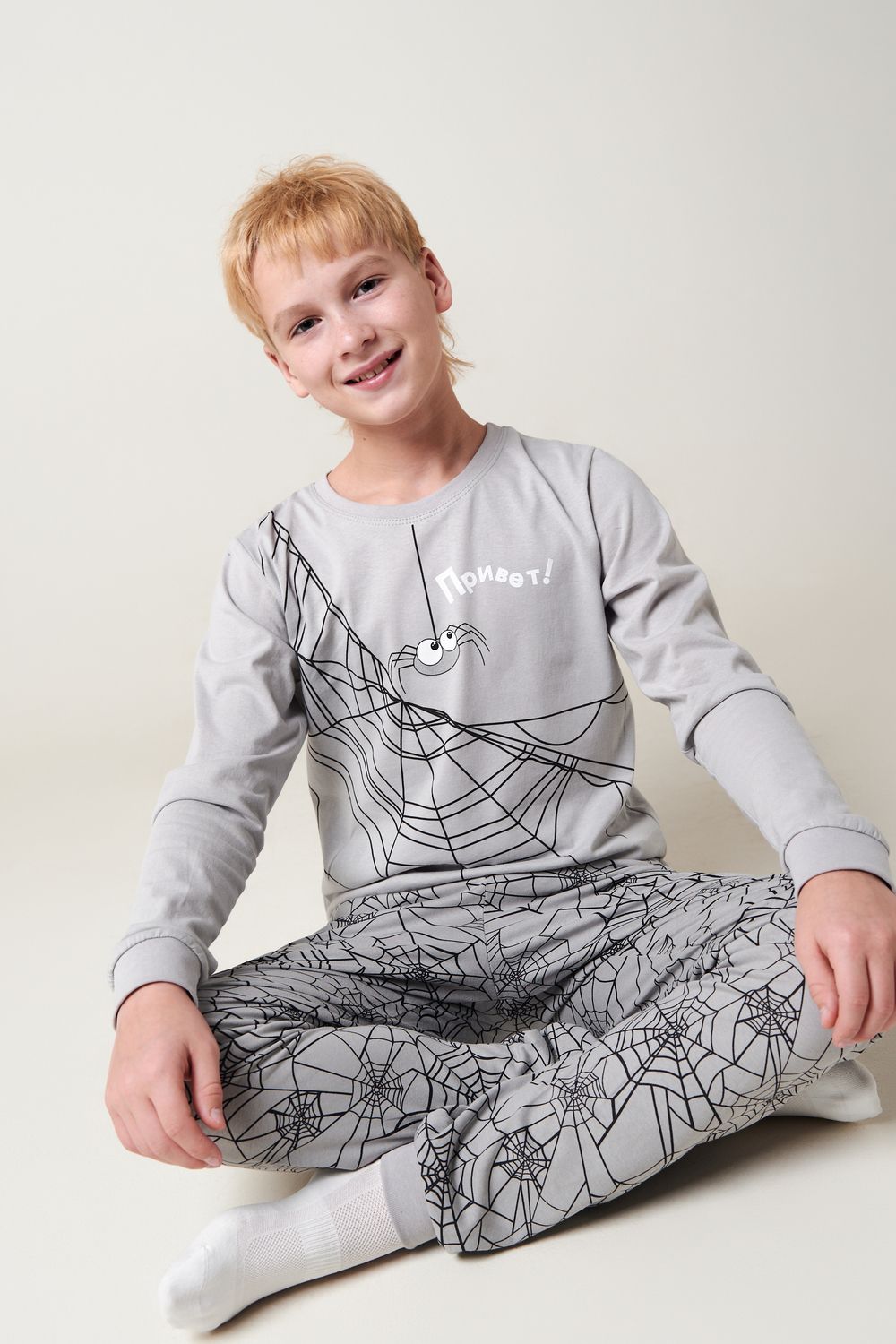 Подарите Вашему ребенку уют и праздничное настроение с детской новогодней пижамой для мальчика со штанами. Пижамный трикотажный костюм для юноши имеет стильный и современный дизайн. Домашний костюм из хлопка для мальчика в стиле у2к со штанами обеспечивает комфортный и спокойный сон. Пижамный комплект с манжетами на рукавах и штанах обеспечивают свободные движения. Легкий хлопок не стесняет, хорошо пропускает воздух и отводит влагу. Наша пижама с пауком - отличный подарок для Вашего ребенка/племянника/внука к зимним праздникам, который сочетает в себе практичность, стиль и заботу о комфорте. Выбирая пижаму "с паутиной", Вы выбираете качество, безопасность и праздничное настроение для своего мальчишки.