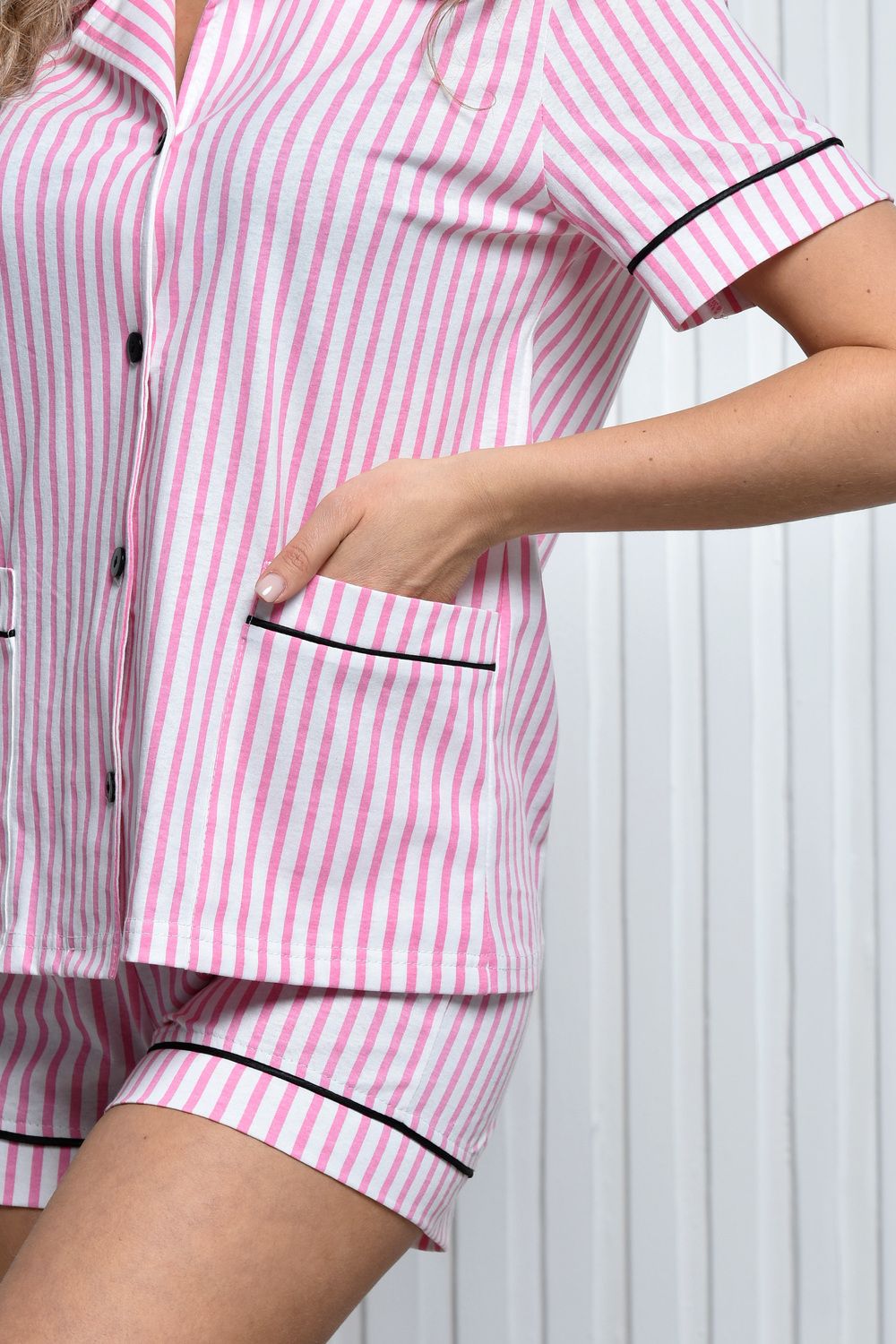 Домашняя пижама, состоящая из комплекта рубашки с шортами – отличный вариант для дома! Изготовлена из ткани кулирка премиум качества. Такой костюм - отличный вариант как для сна, так и для повседневной носки. Модель состоит из рубашки на пуговицах с коротким рукавом с манжетой и отложным воротником и шорт прямого кроя на эластичной резинке с высокой посадкой, которые обеспечивают свободу движений. Для сохранения всей глубины цвета даже после многочисленных стирок, ухаживайте за изделием должным образом. Рекомендуем стирать на бережном режиме, при температуре не выше 40 градусов.