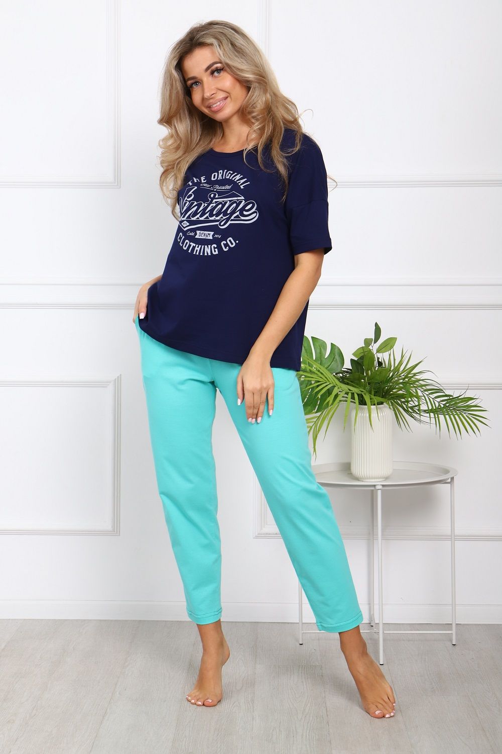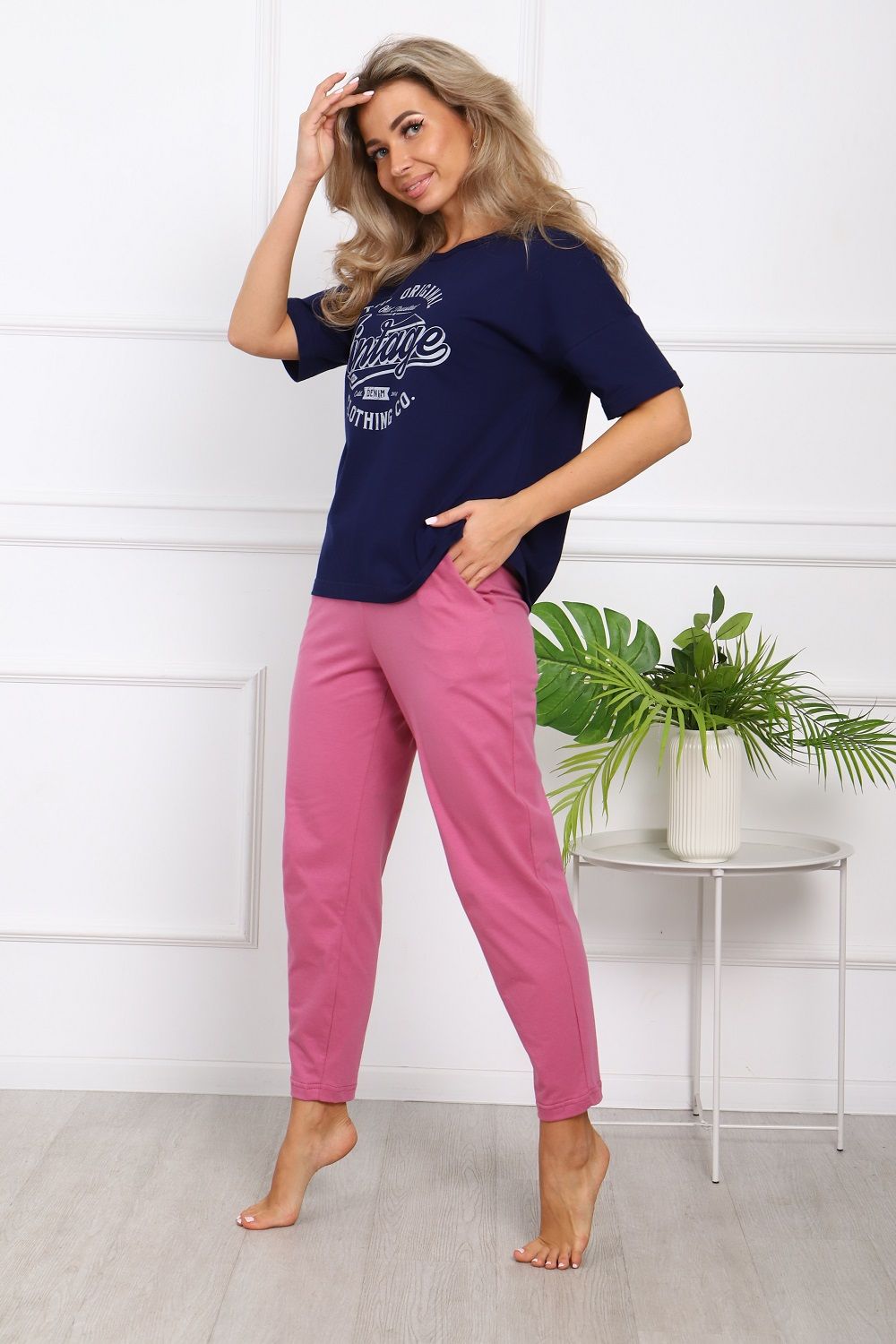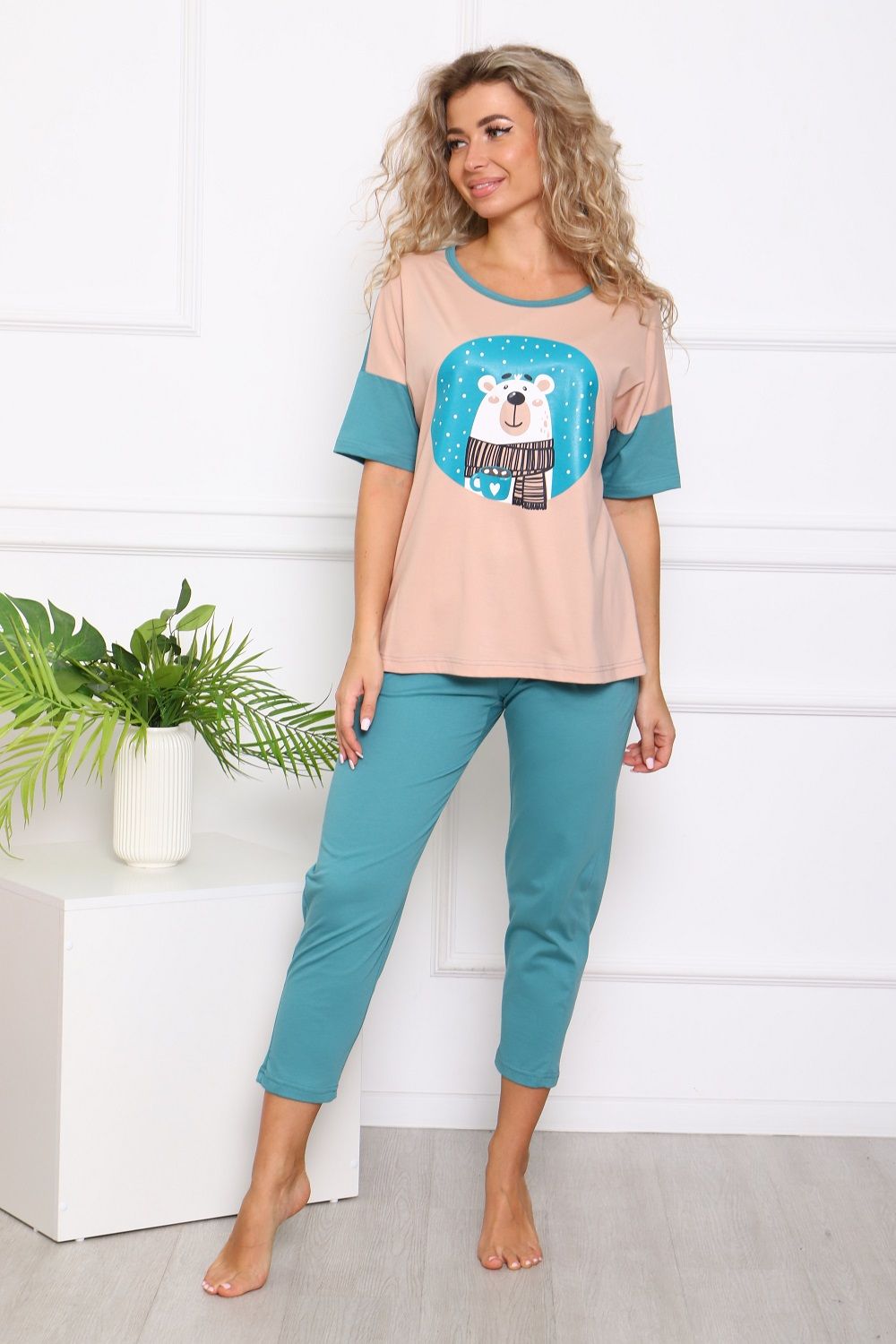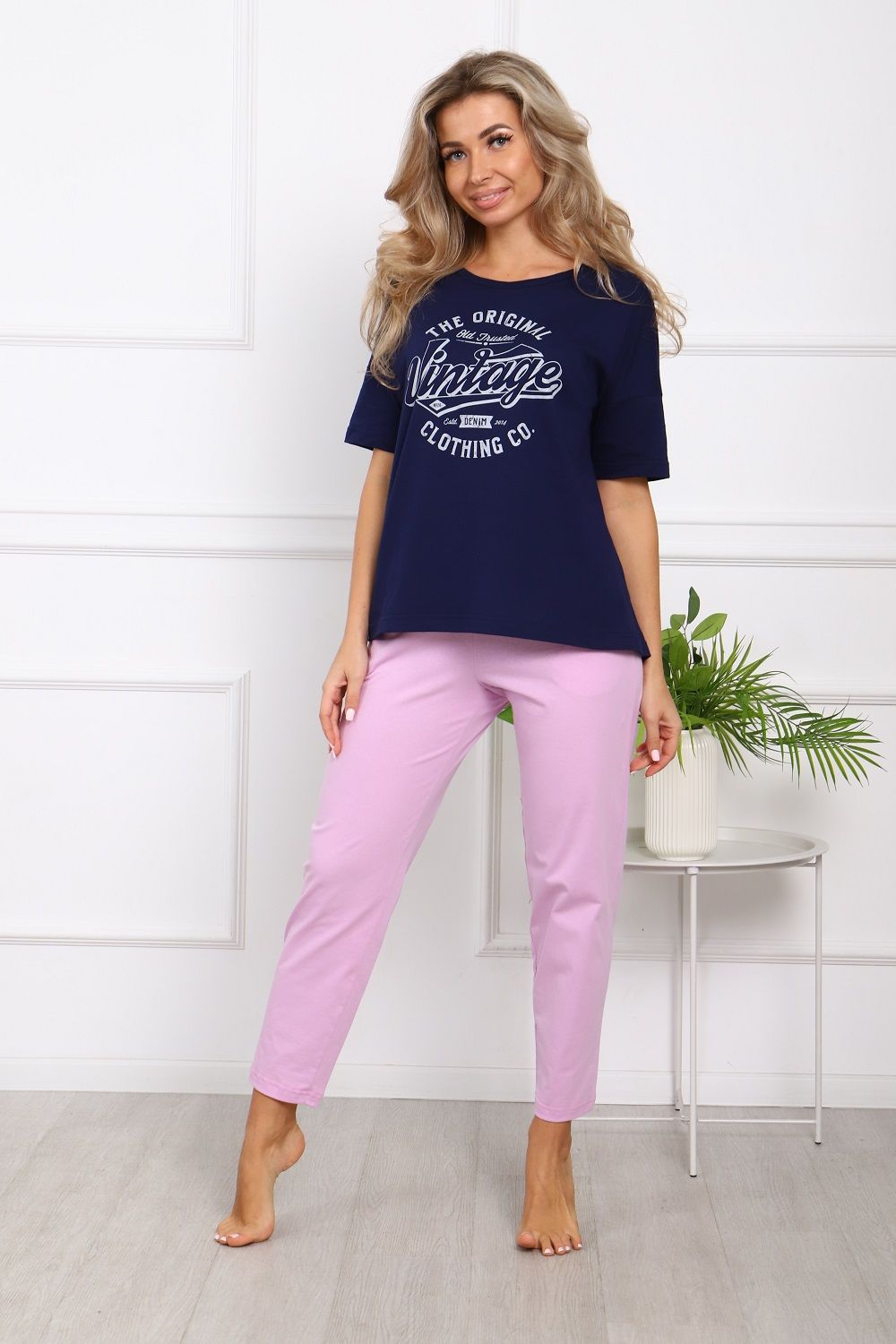 Пижама на пуговицах со штанами больших размеров Однотоннная