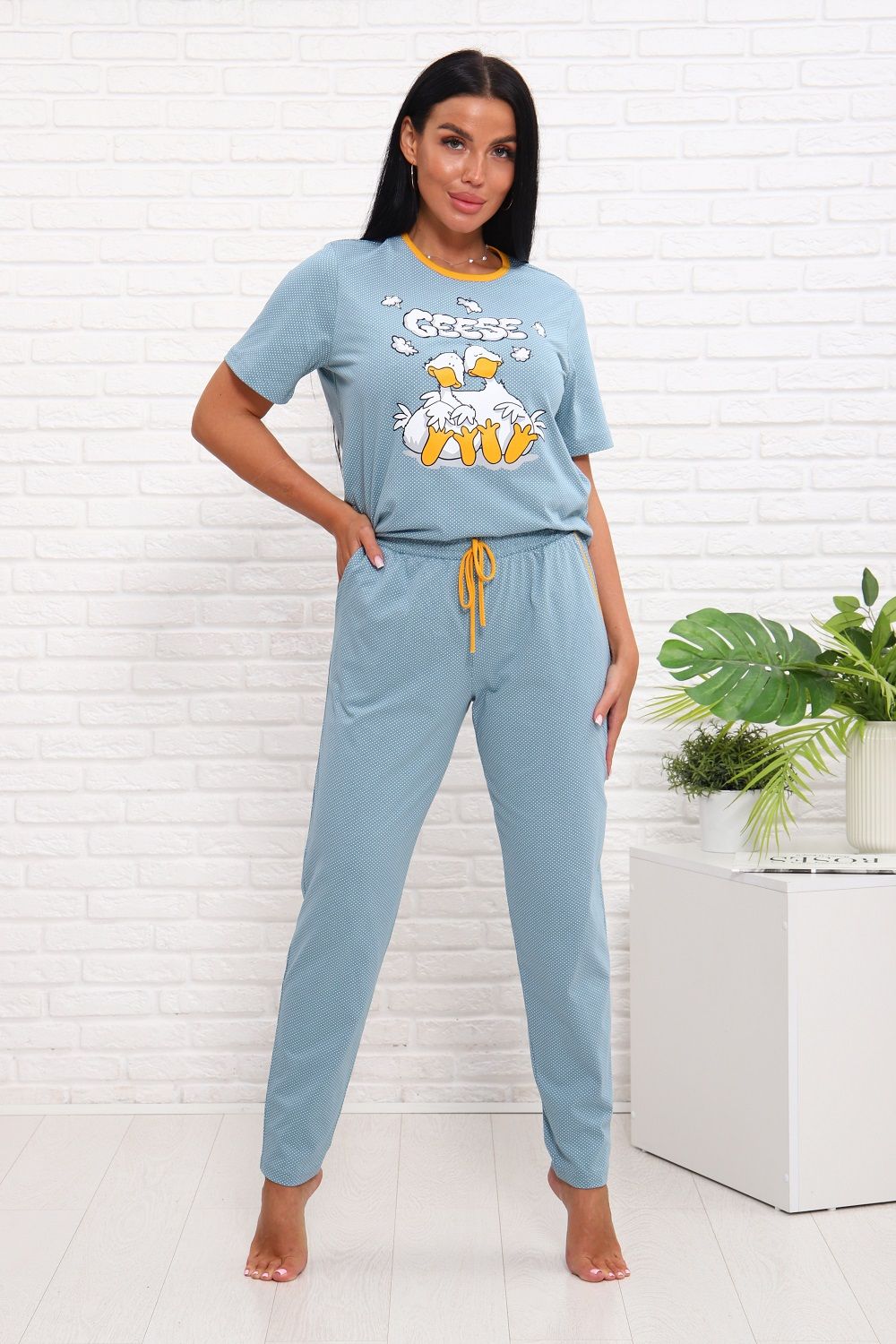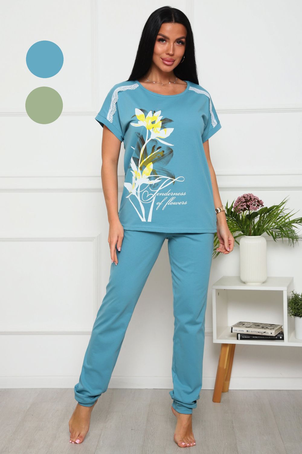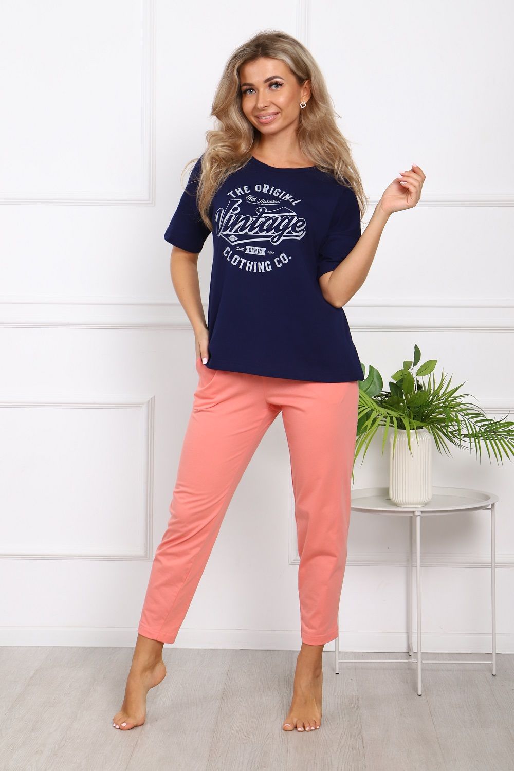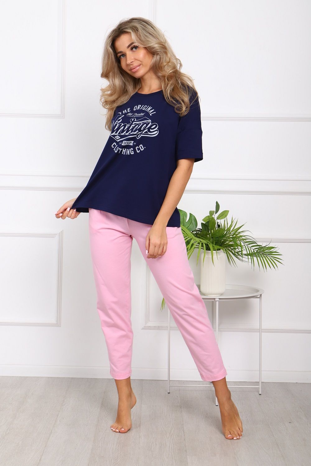 Пижама на пуговицах со штанами больших размеров Однотоннная