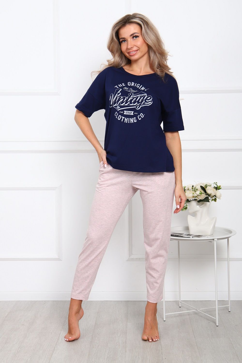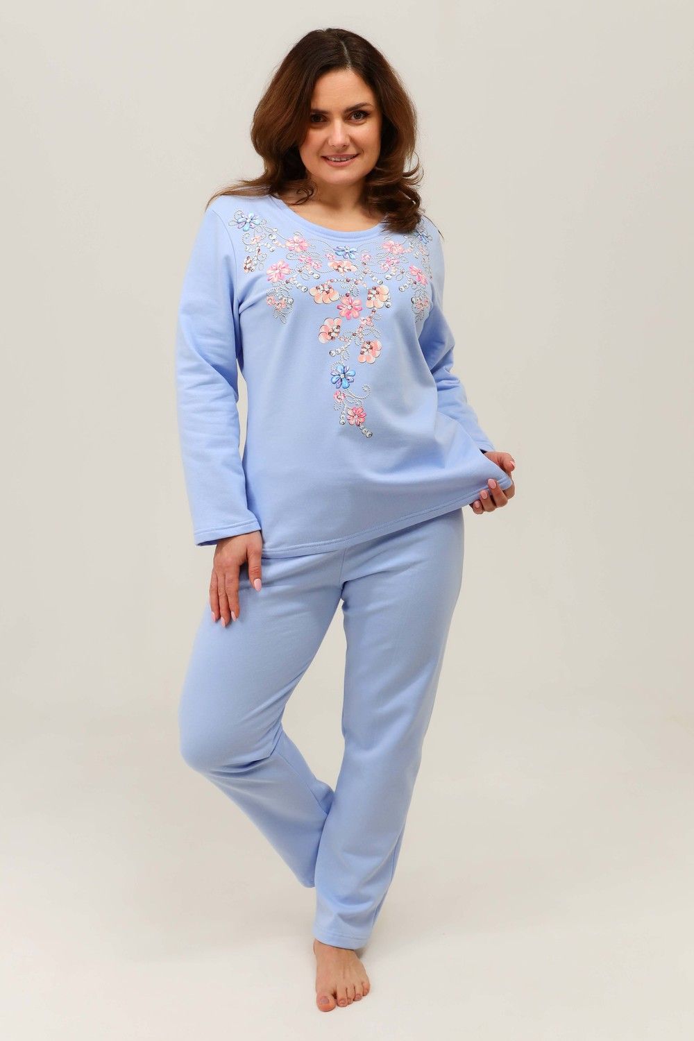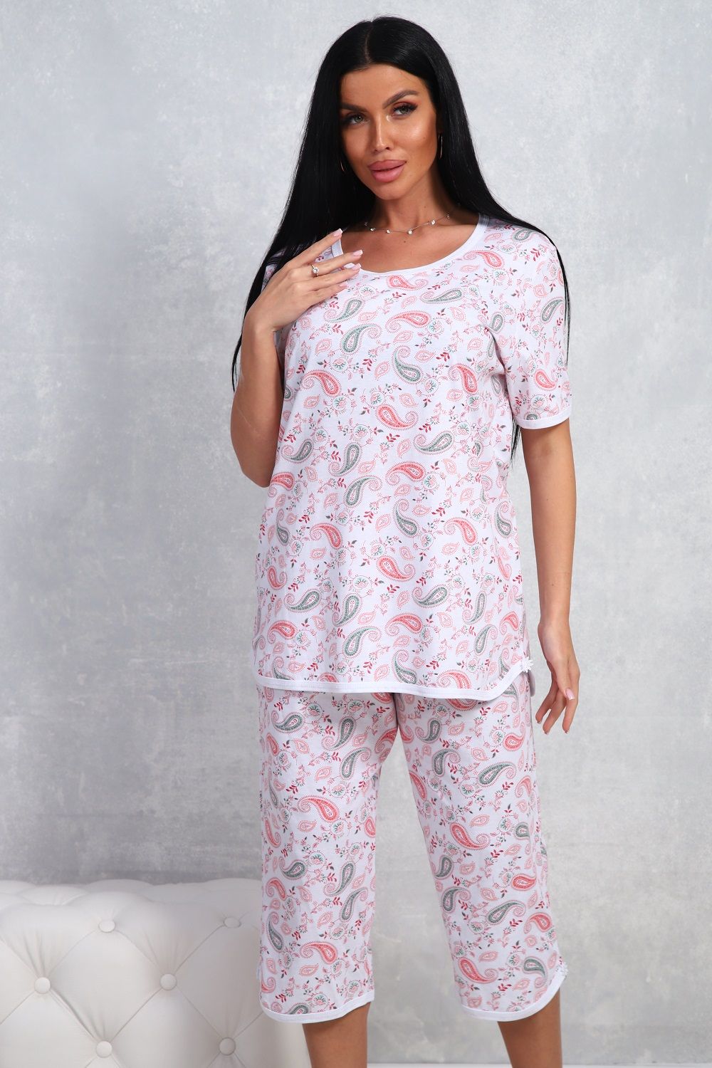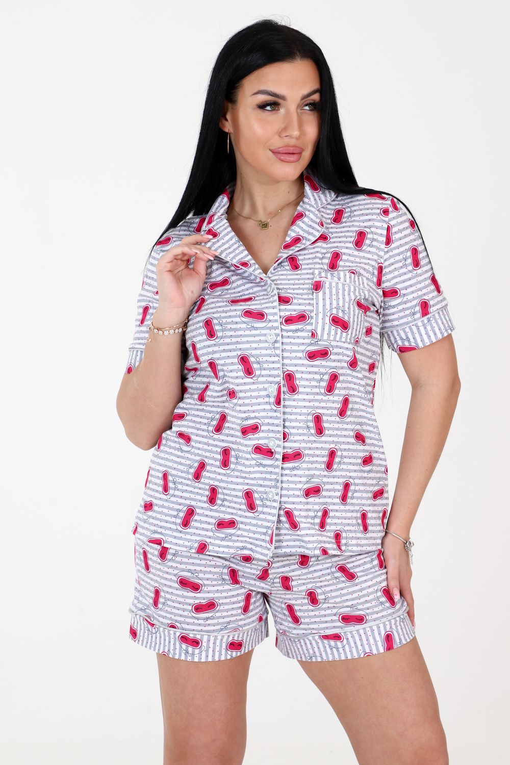 Пижама на пуговицах со штанами больших размеров Однотоннная