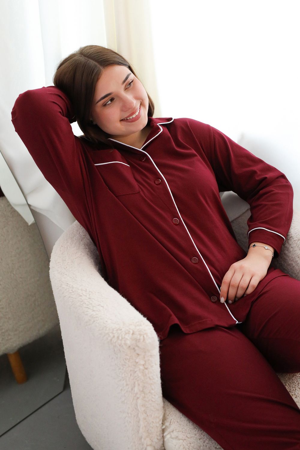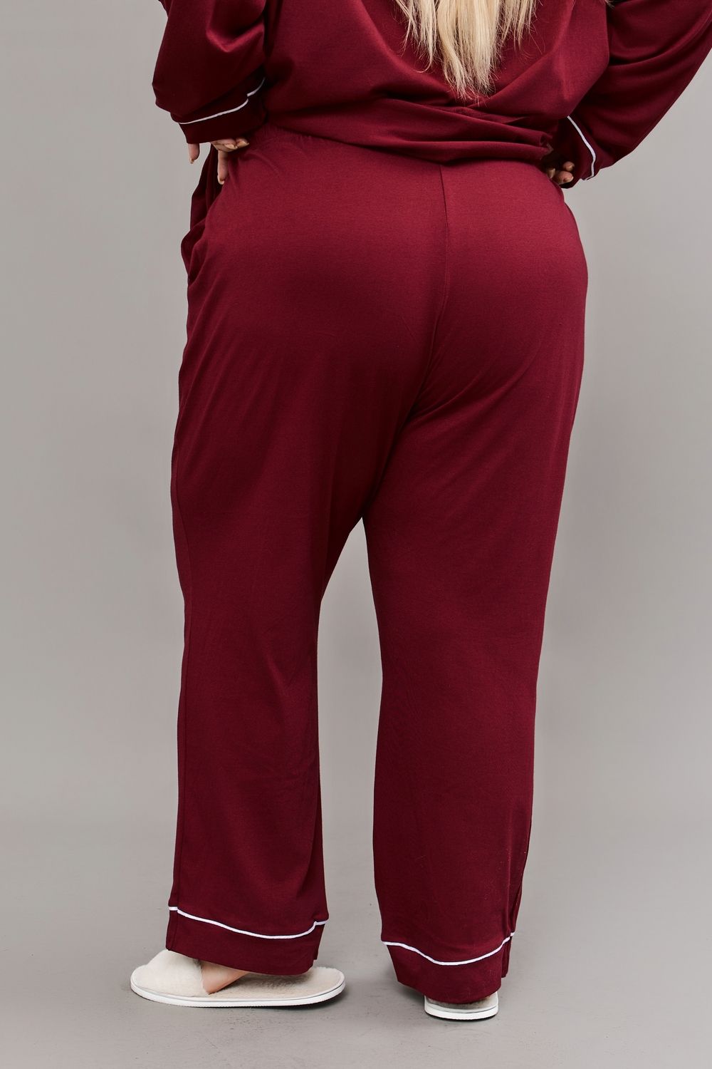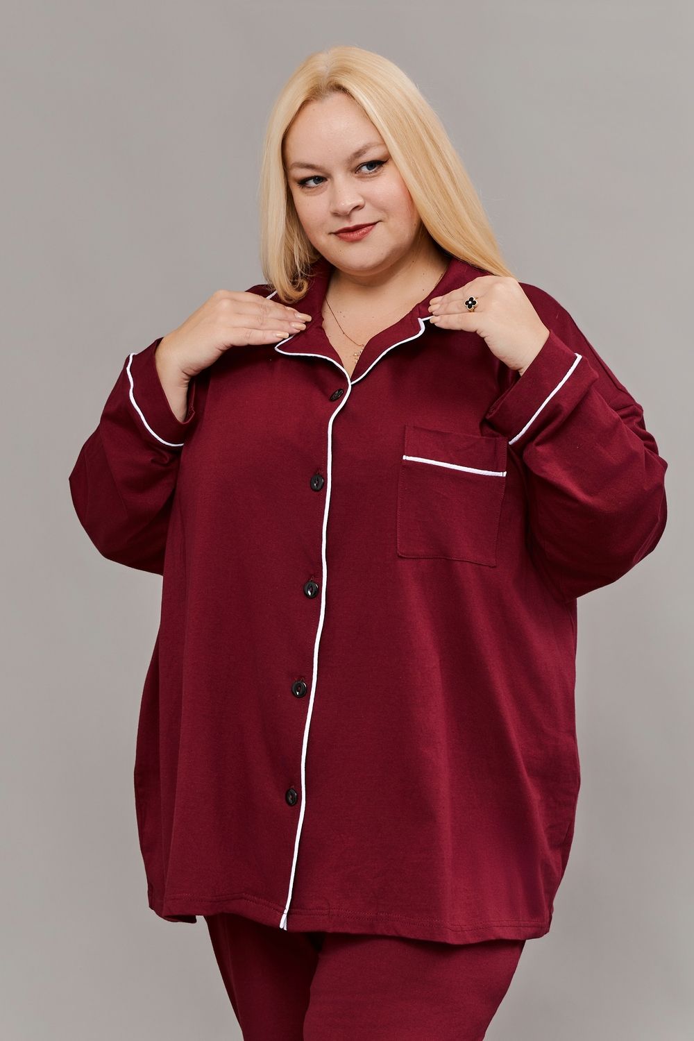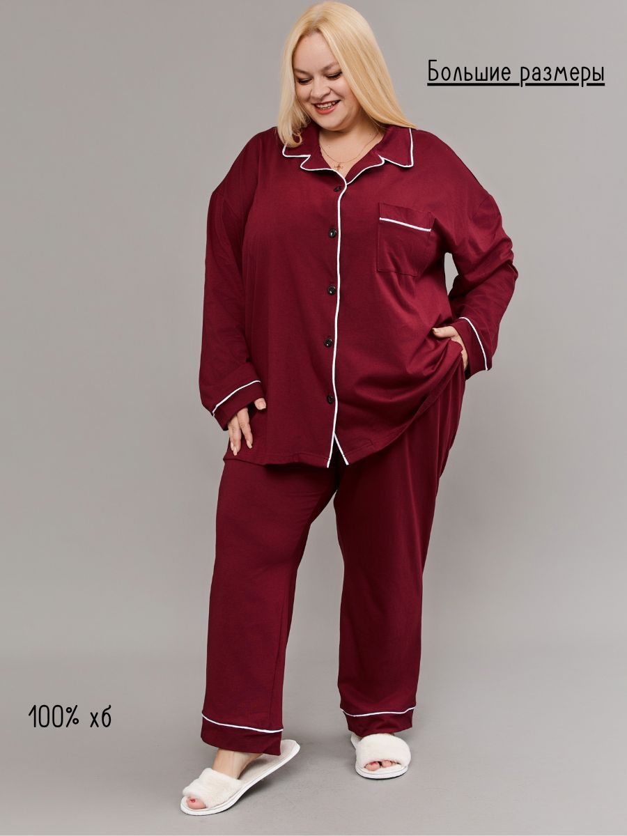 Пижама на пуговицах со штанами больших размеров Однотоннная - бордовый