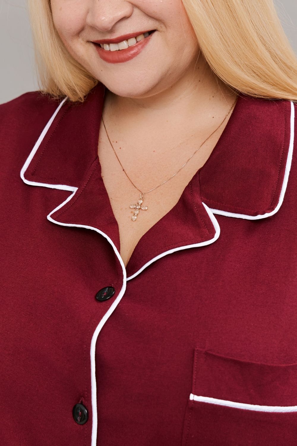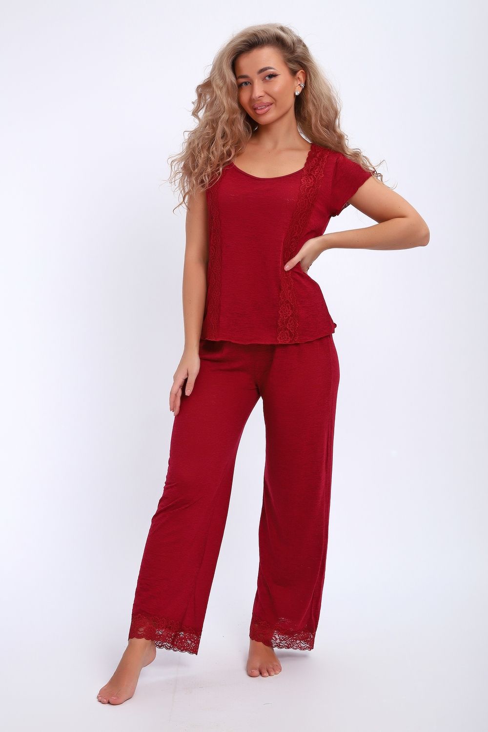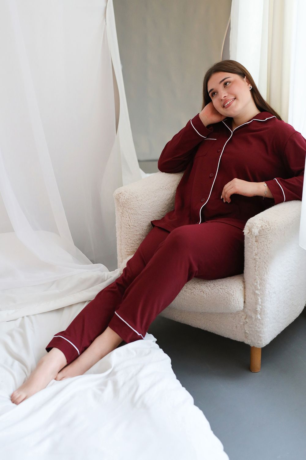 Пижама на пуговицах со штанами больших размеров Однотоннная - бордовый