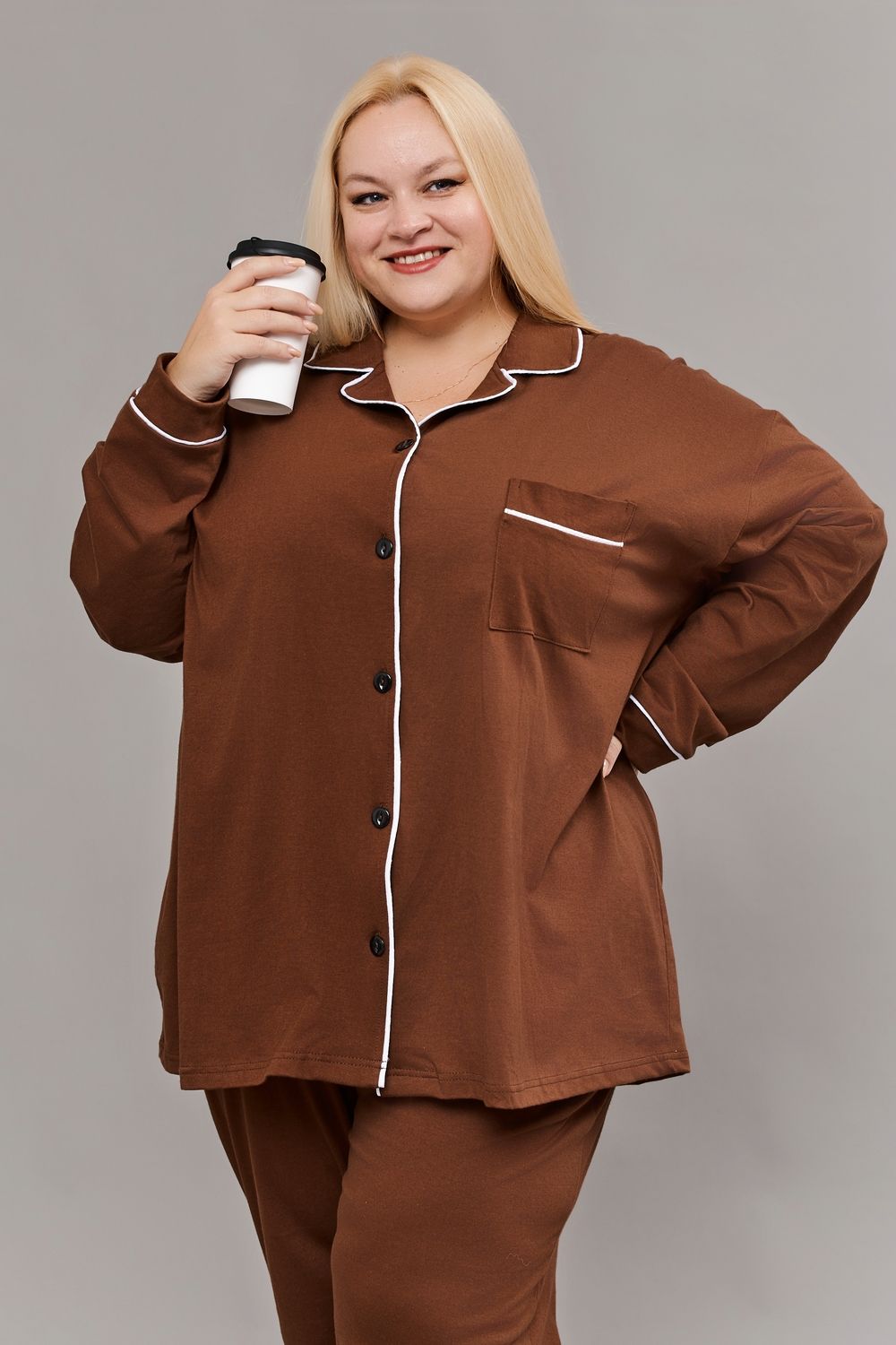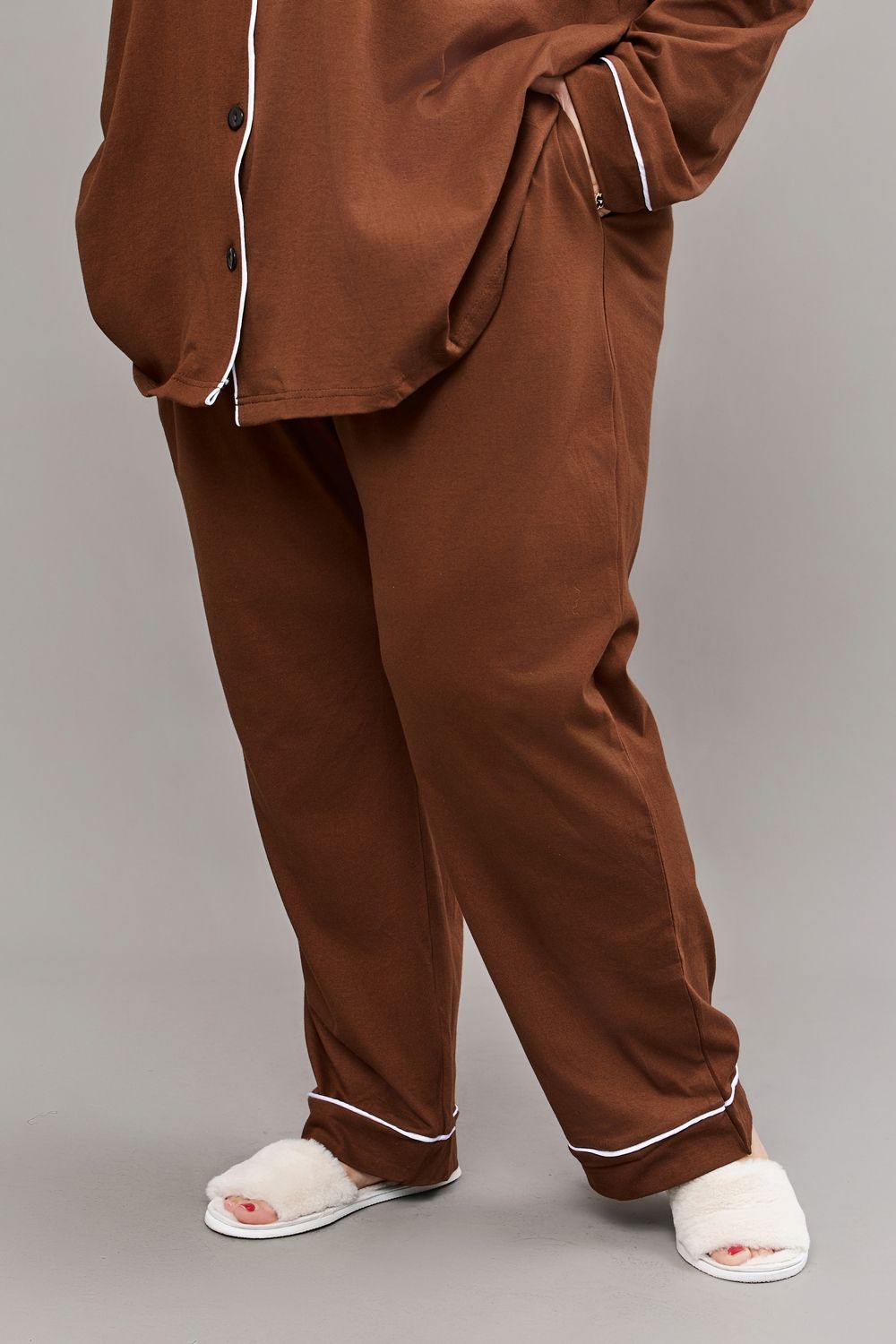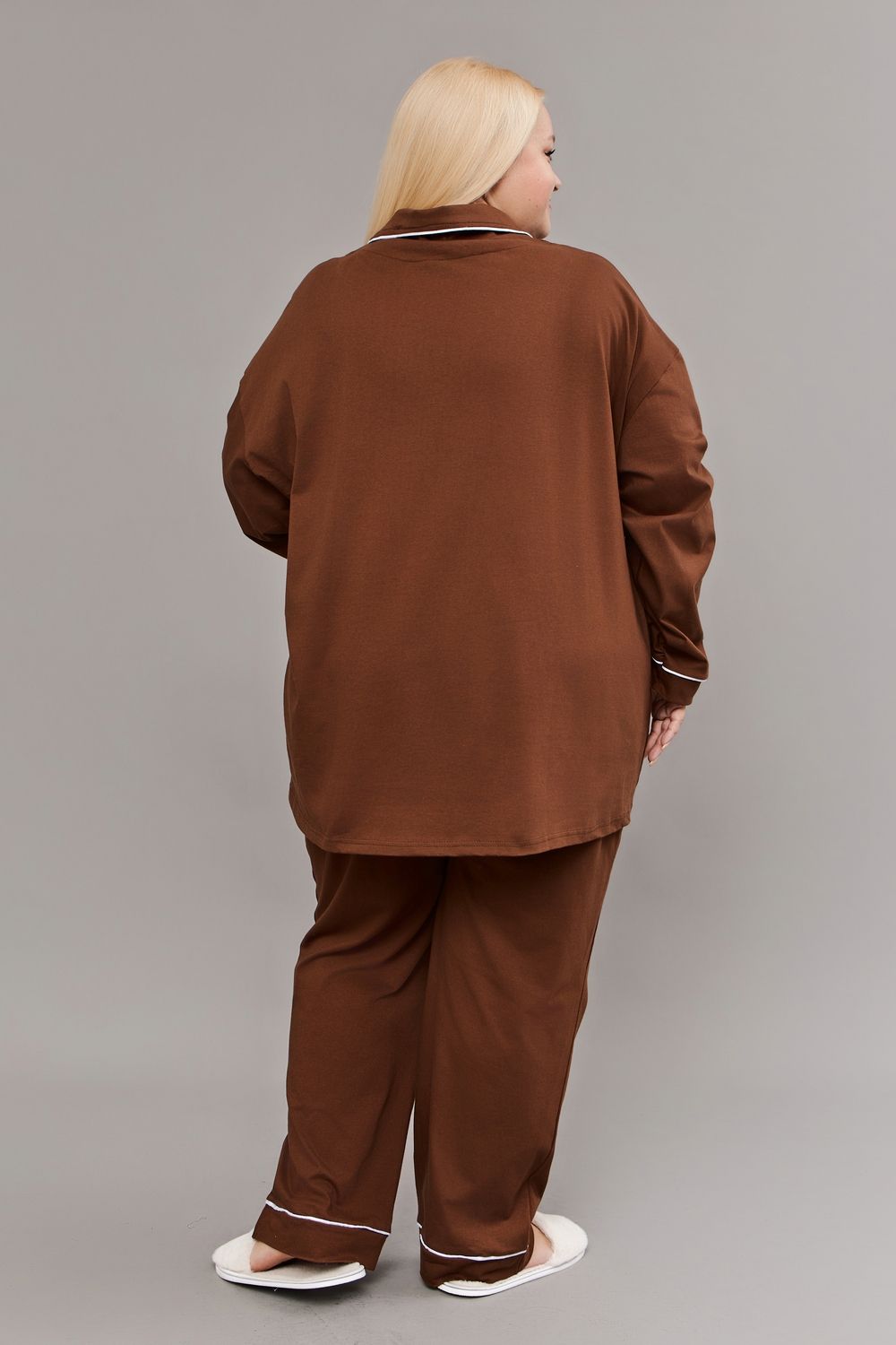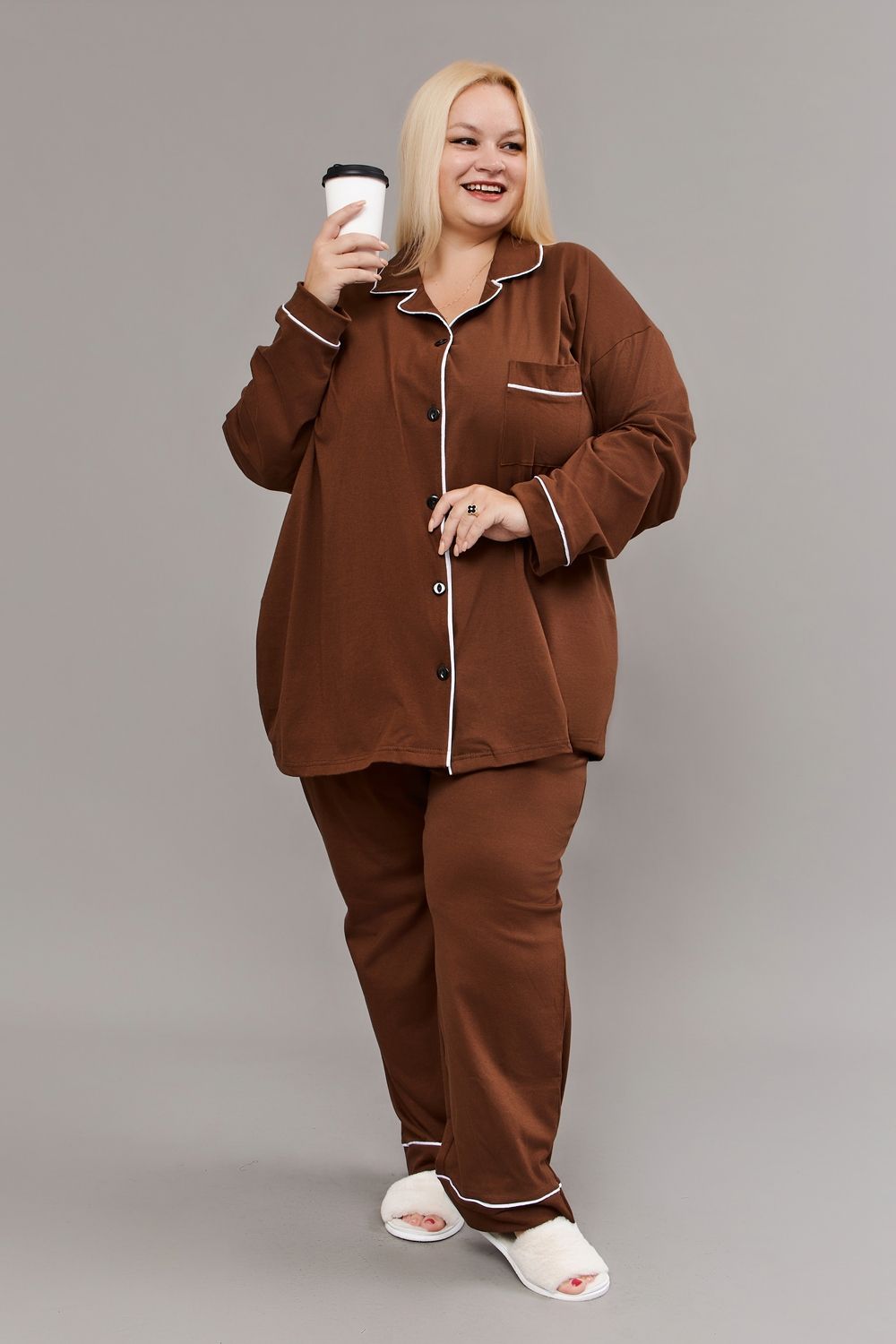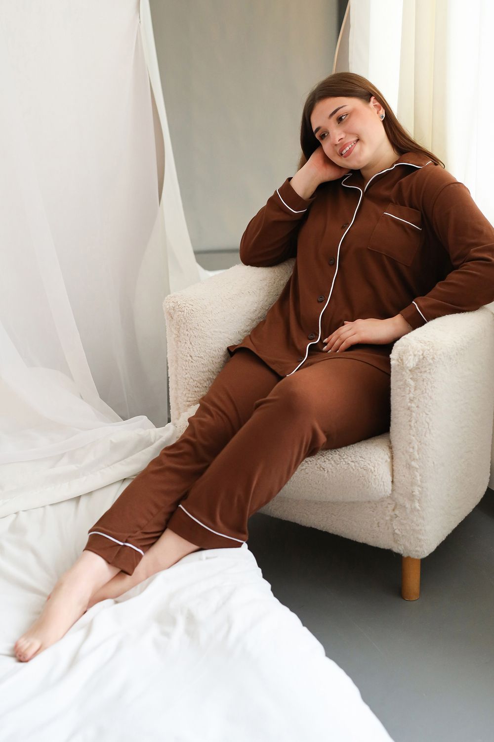 Пижама на пуговицах со штанами больших размеров Однотоннная - коричневый