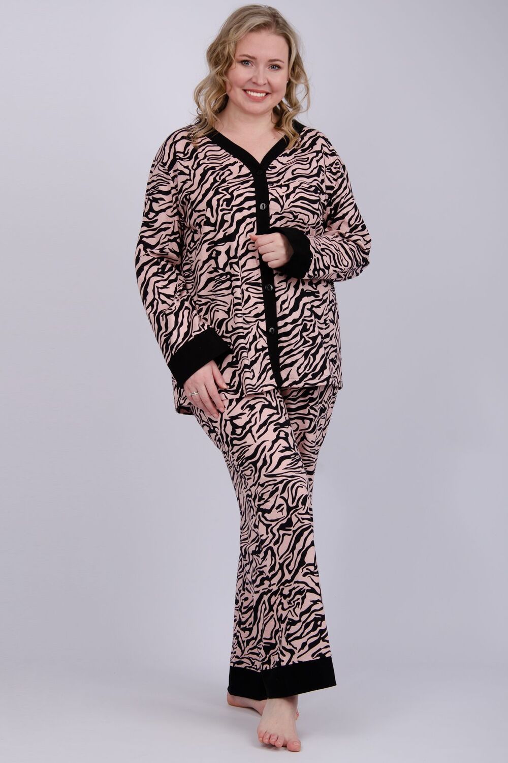 Наша пижама выполнена из мягкого и приятного на ощупь трикотажа, который обеспечивает максимальный комфорт во время отдыха. Материал прекрасно дышит, не вызывает аллергии и раздражения кожи. Благодаря своей структуре он сохраняет тепло в холодное время года, и создает ощущение легкости и свежести в летнее время. Пижама представлена в нескольких размерах, включая большие, чтобы каждая женщина могла найти подходящий вариант, который подходит именно вам.