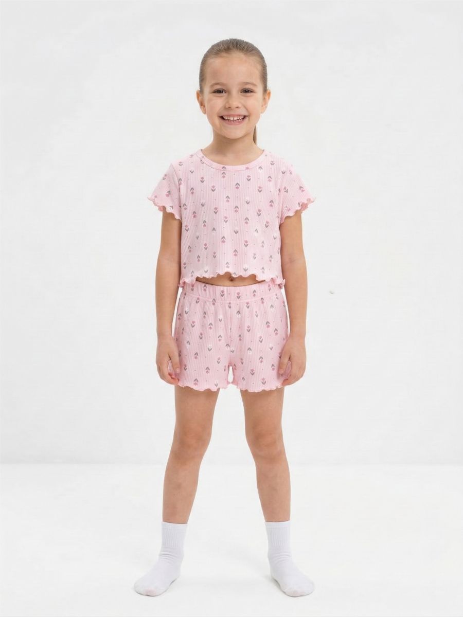 Пижама Пружинка топ с шортами 33069 розовые цветы