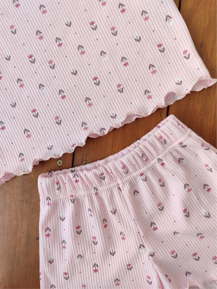 Пижама Пружинка топ с шортами 33069 розовые цветы - розовые цветы