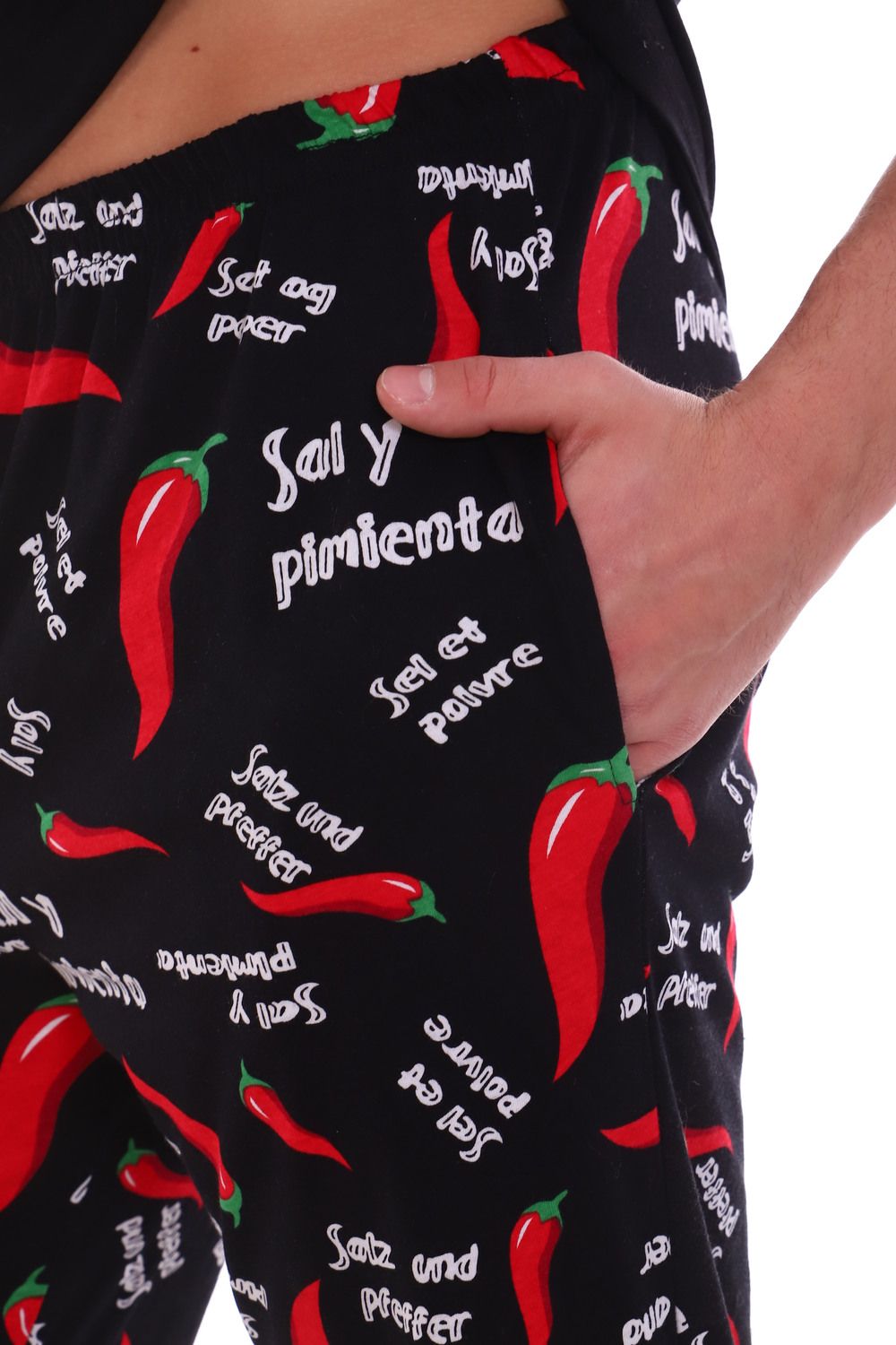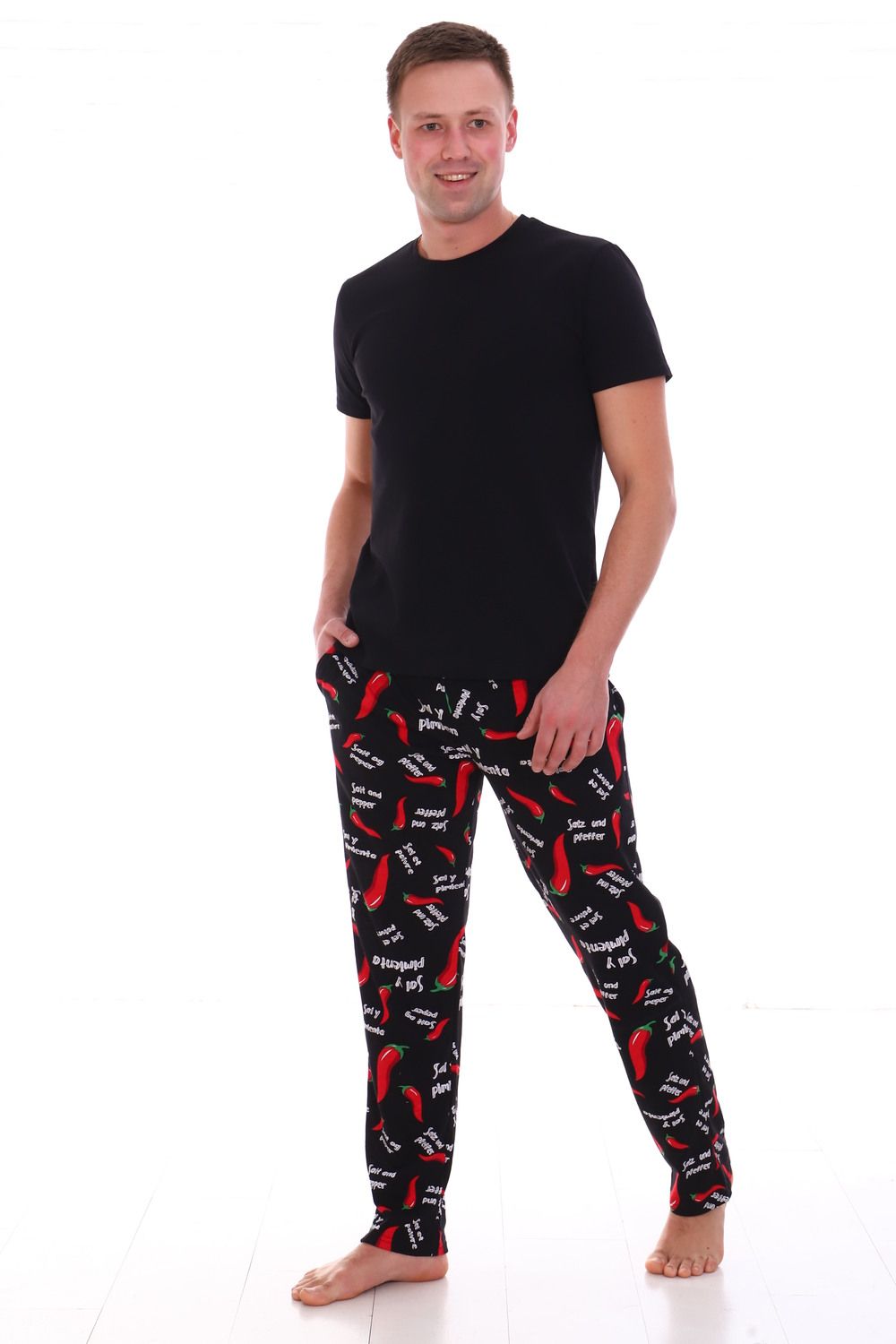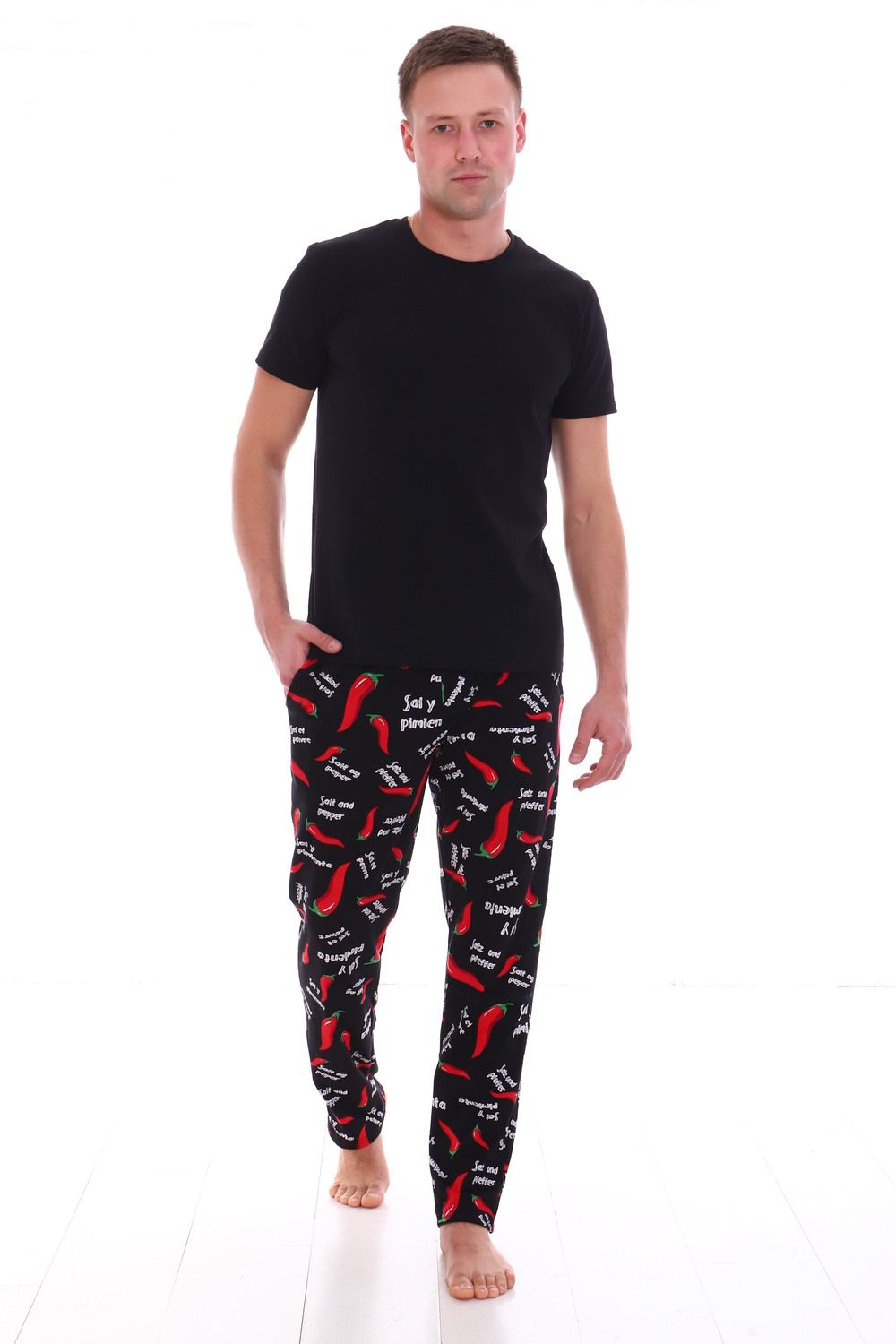 Комплект состоит из футболки и брюк. Футболка свободного кроя, с коротким рукавом, круглым вырезом горловины, который обработан рибаной. Брюки прямого кроя и карманами.