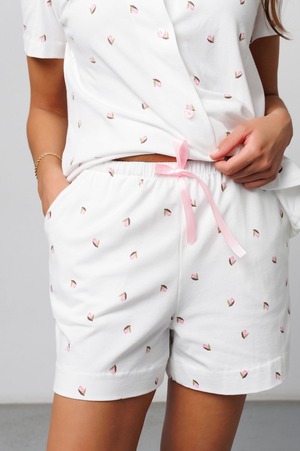 Представляем Вам очаровательную пижаму с шортами и рубашкой от Raposa, которая станет идеальным выбором для летних ночей! Эта милая пижама, выполненная из мягкого и дышащего хлопка с добавлением эластана, подарит Вам невероятный комфорт и свободу движений. Нежный принт с цветочками создает романтичный и эстетичный вид, а атласная лента на шортиках добавляет пикантности и стиля. Эта пижама женская – настоящая находка для девушки, которая ценит комфорт и красоту. Она идеально подходит для сна, отдыха дома и даже для утренней пробежки по саду. Благодаря своей универсальности, эта пижама белая в цветочек станет отличным подарком для подруги, сестры или мамы. Костюм домашний с шортами и рубашкой выполнена в больших размерах до 54 и 56 и подойдёт для полных женщин плюс сайз и беременных будущих мам. Шорты на резинке обеспечат идеальную посадку на любой фигуре, идеально будет смотреться на высоких и невысоких. Легкая и приятная к телу хлопковая ткань не мнется, что делает костюм пижама идеальной для путешествий и активного отдыха. В швах удобные карманы для мелочей, а короткие рукава рубашки не стесняют движений. Эта пижама трикотажная - настоящий символ летнего комфорта и стиля! Пижама комплект двойка станет изюминкой фотосессии для образа, как из пинтерест. Мы уверены, что Вы полюбите эту пижама набор за ее нежность, красоту и удобство.