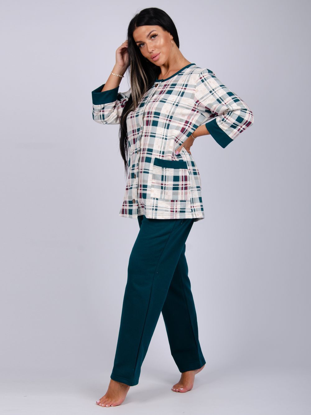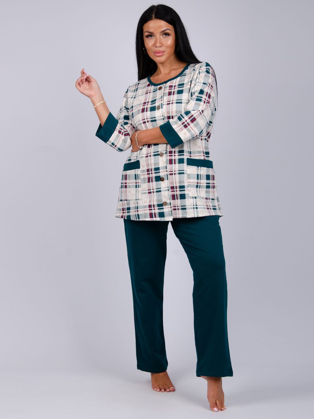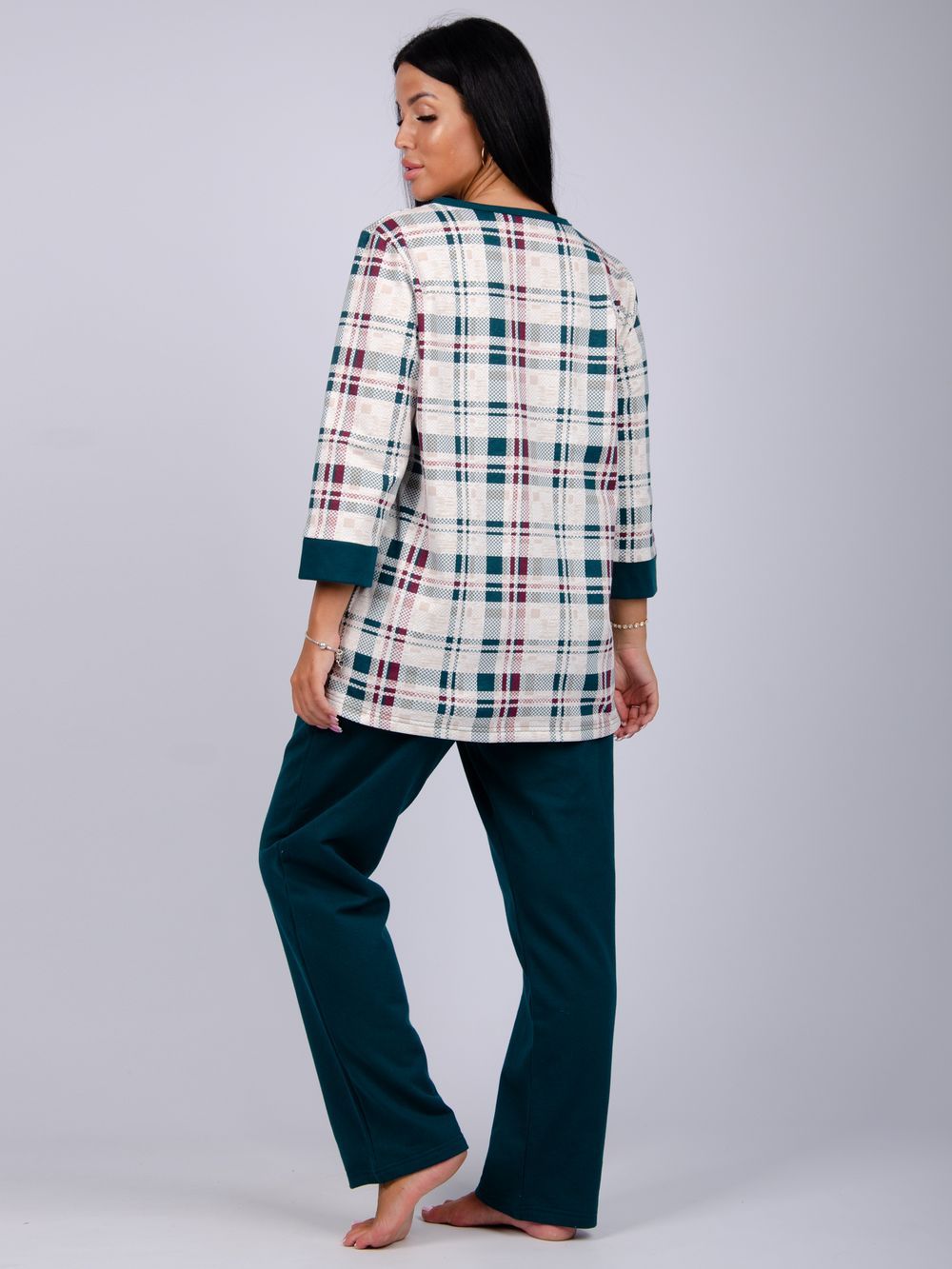 Этот комплект станет отличным выбором для холодных зимних вечеров, когда вам хочется обернуться теплом и комфортом. Мягкий и приятный на ощупь хлопок создает уютную атмосферу, что делает пижаму идеальной для носки как дома, так и на даче. Широкие брюки не сковывают движения, а легкий дизайн позволяет не ощущать дискомфорта во время сна.