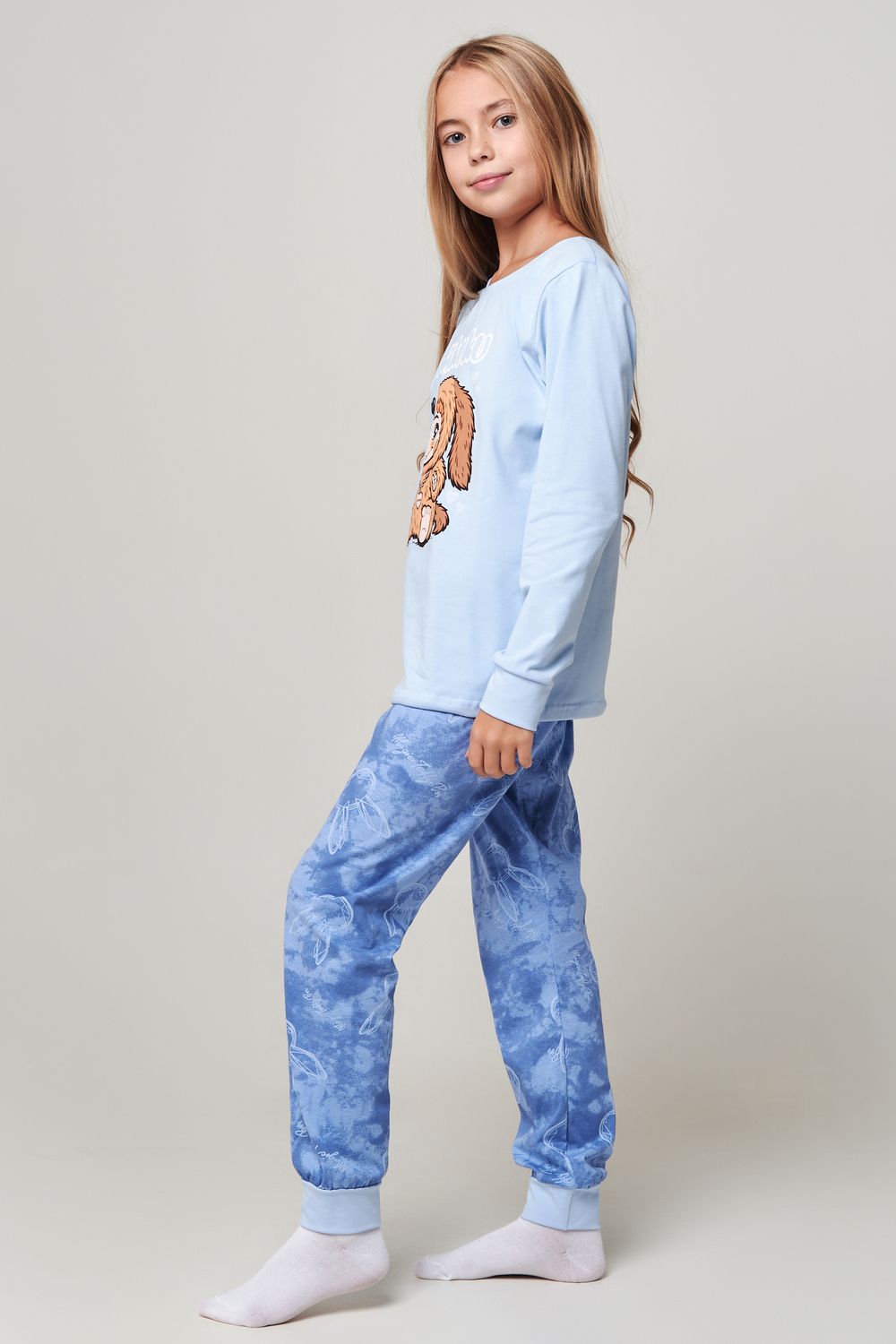 Пижама Ушастик длинный рукав - голубой