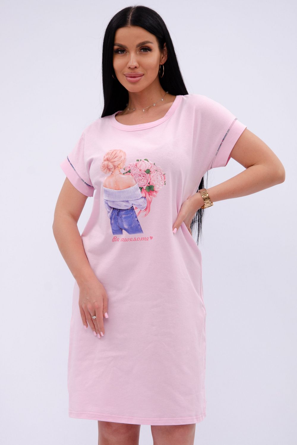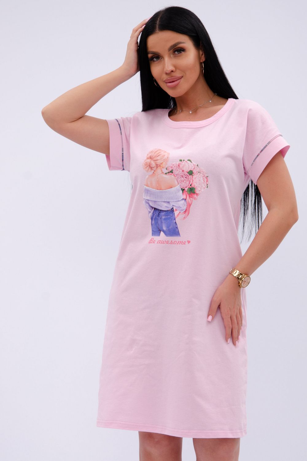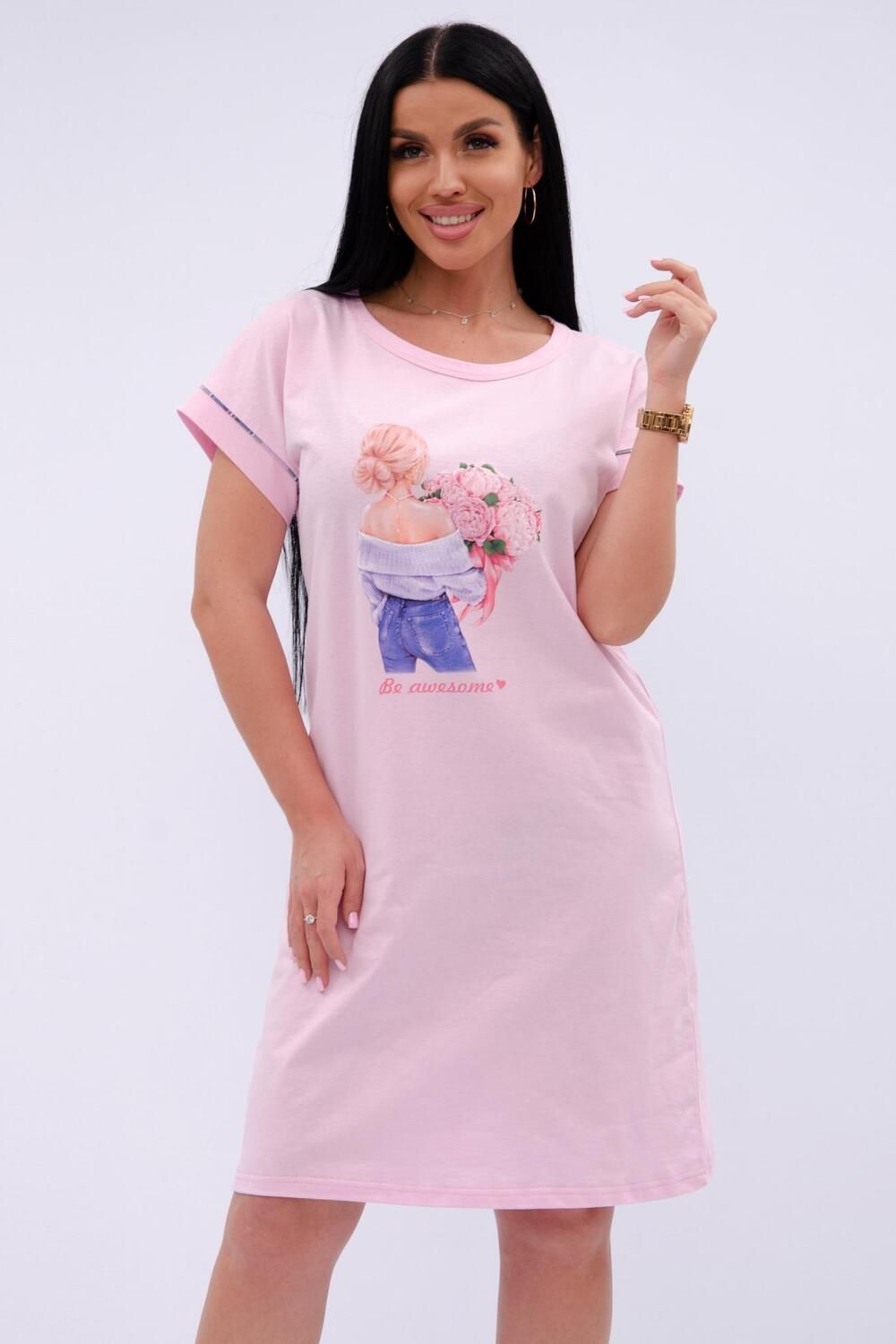 Пионы сорочка женская - розовый
