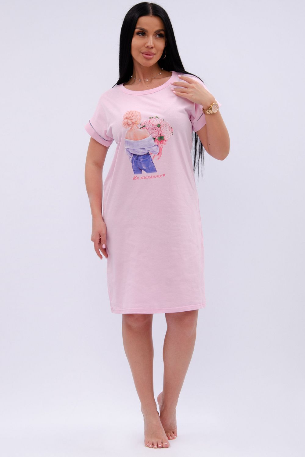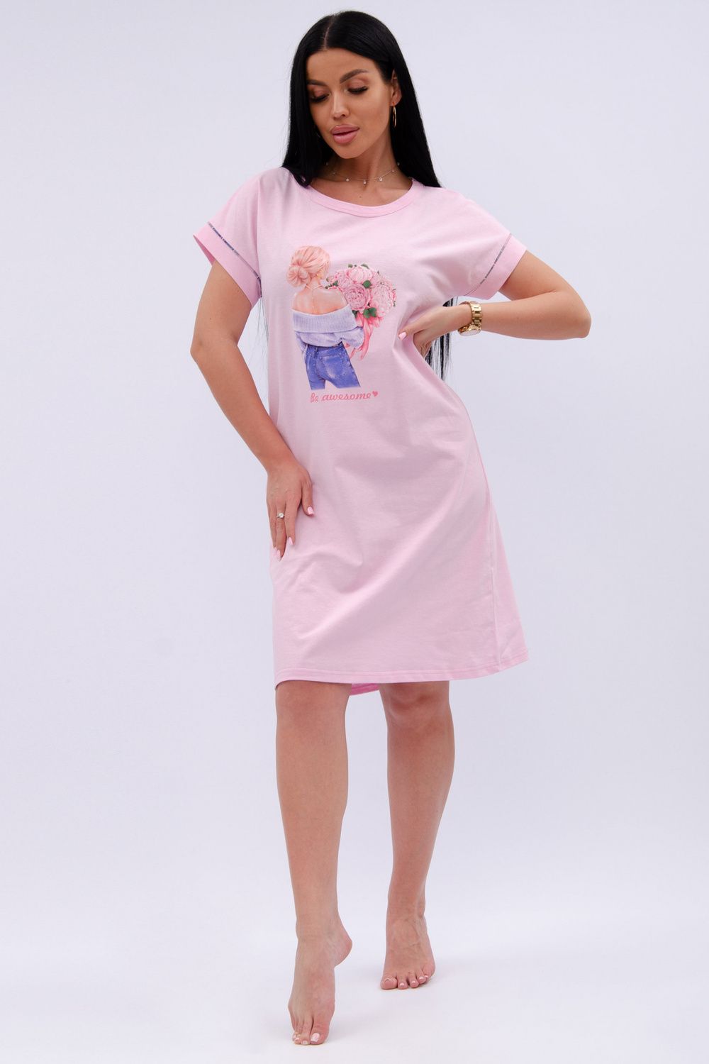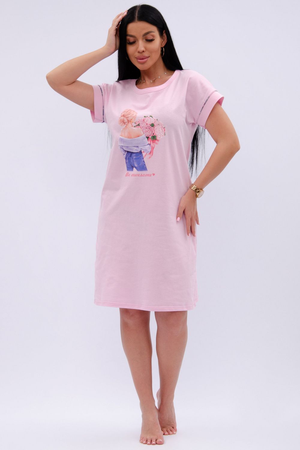 Пионы сорочка женская - розовый