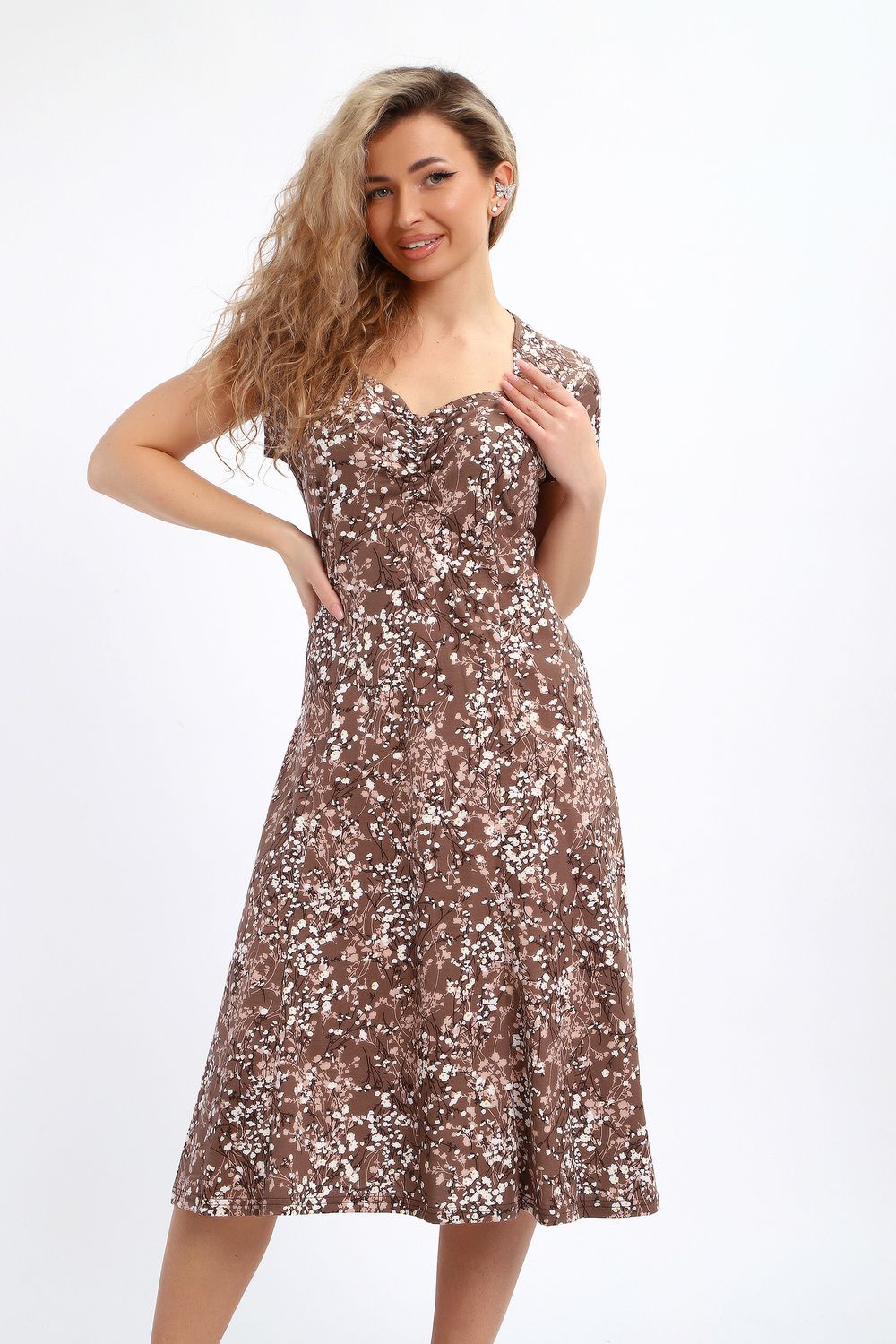 Легкое летнее платье выполнено из кулирки 100% хлопок яркой оригинальной расцветки. Платье средней длины, приталенное, к низу расклешенное, рукав короткий, в области груди со сборкой. Идеально подойдет для прогулок и отдыха.