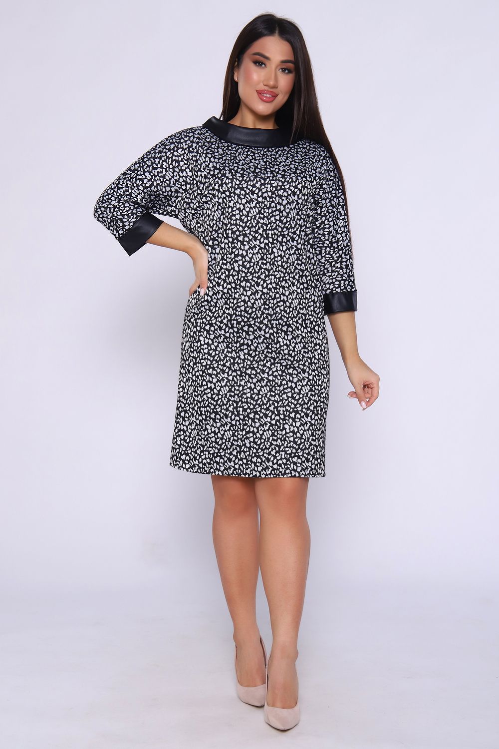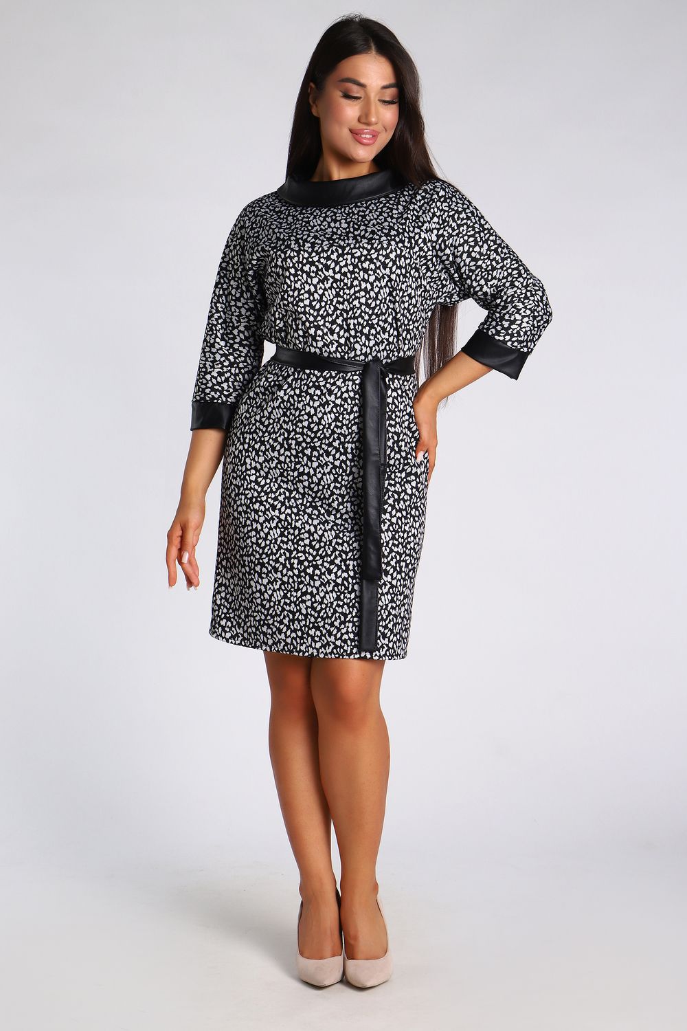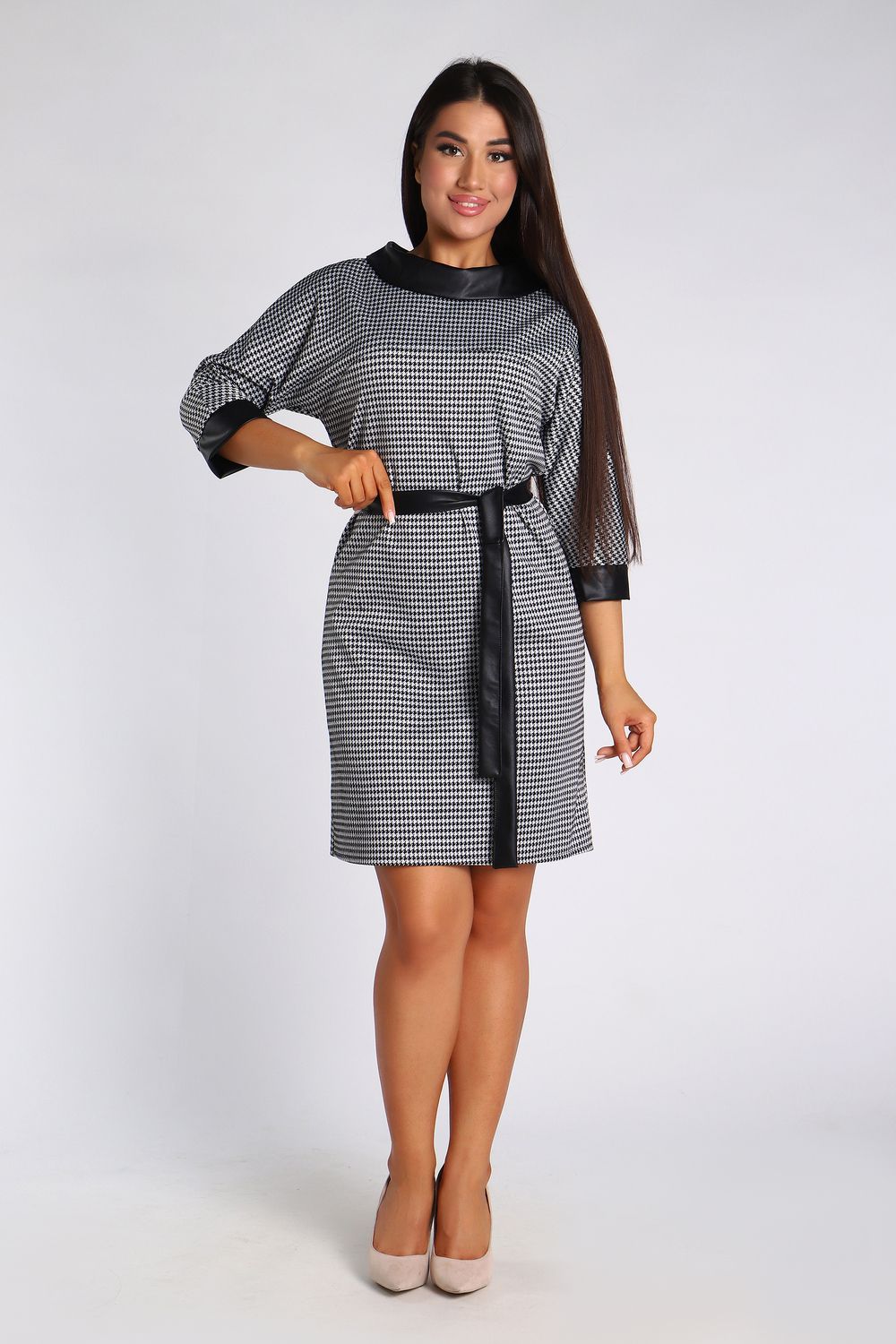 Элегантное стильное платье подчеркнет вашу женственность и неповторимость. Модель платья подходит для дам разного возраста, поможет создать и деловой, и повседневный, и праздничный образ. Платье полуприталенного силуэта, кокетка на полочке выгодно подчеркнет линию груди, цельнокроеный рукав обеспечит свободу движения и скроет полноту рук. Длина платья до середины колена (при росте 164см), рукав длиной 3/4 (в замерах длина рукава указана от горловины). Изюминкой изделия являются манжеты и отложной воротник-лодочка из фактурной экокожи. Ткань трикотаж жаккард плотная и достаточно хорошо тянется, что обеспечивает безупречную посадку на любой фигуре. Классические расцветки в черно-белой гамме популярны во все времена. А обладательницам фигуры "песочные часы" талию можно подчеркнуть поясом или ремешком (платье продается без пояса).