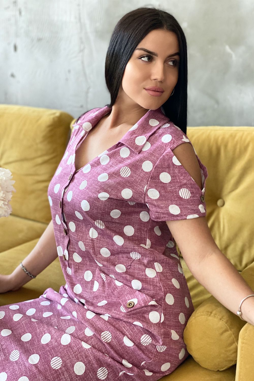 Платье женское полуприлегающего силуэта с застежкой "поло".
