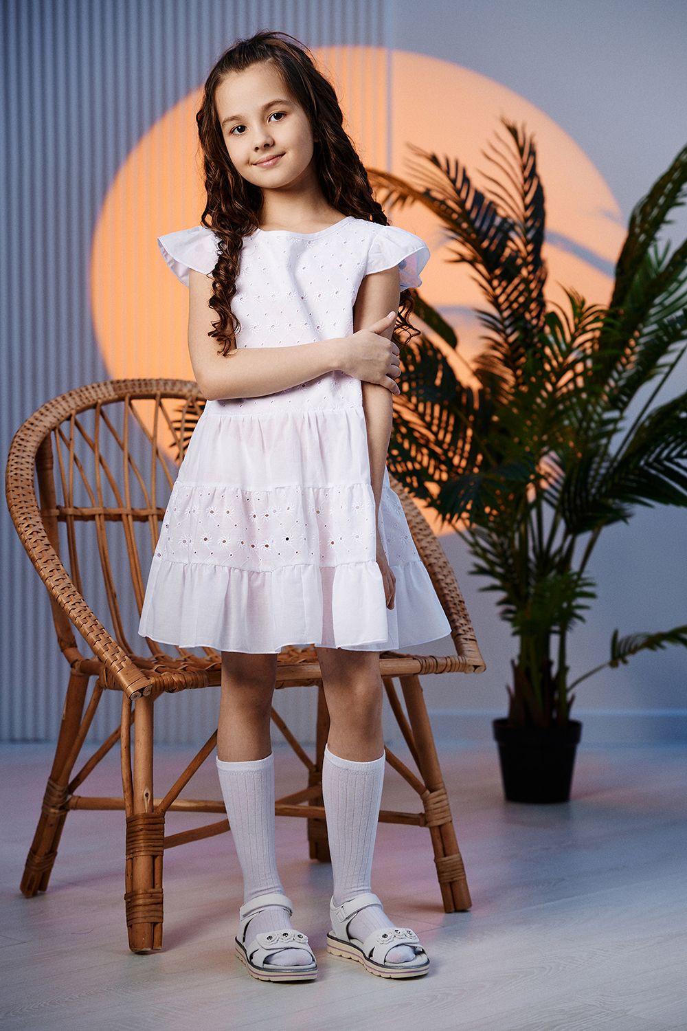 Платье для девочки вязанный трикотаж SP50119 - белый