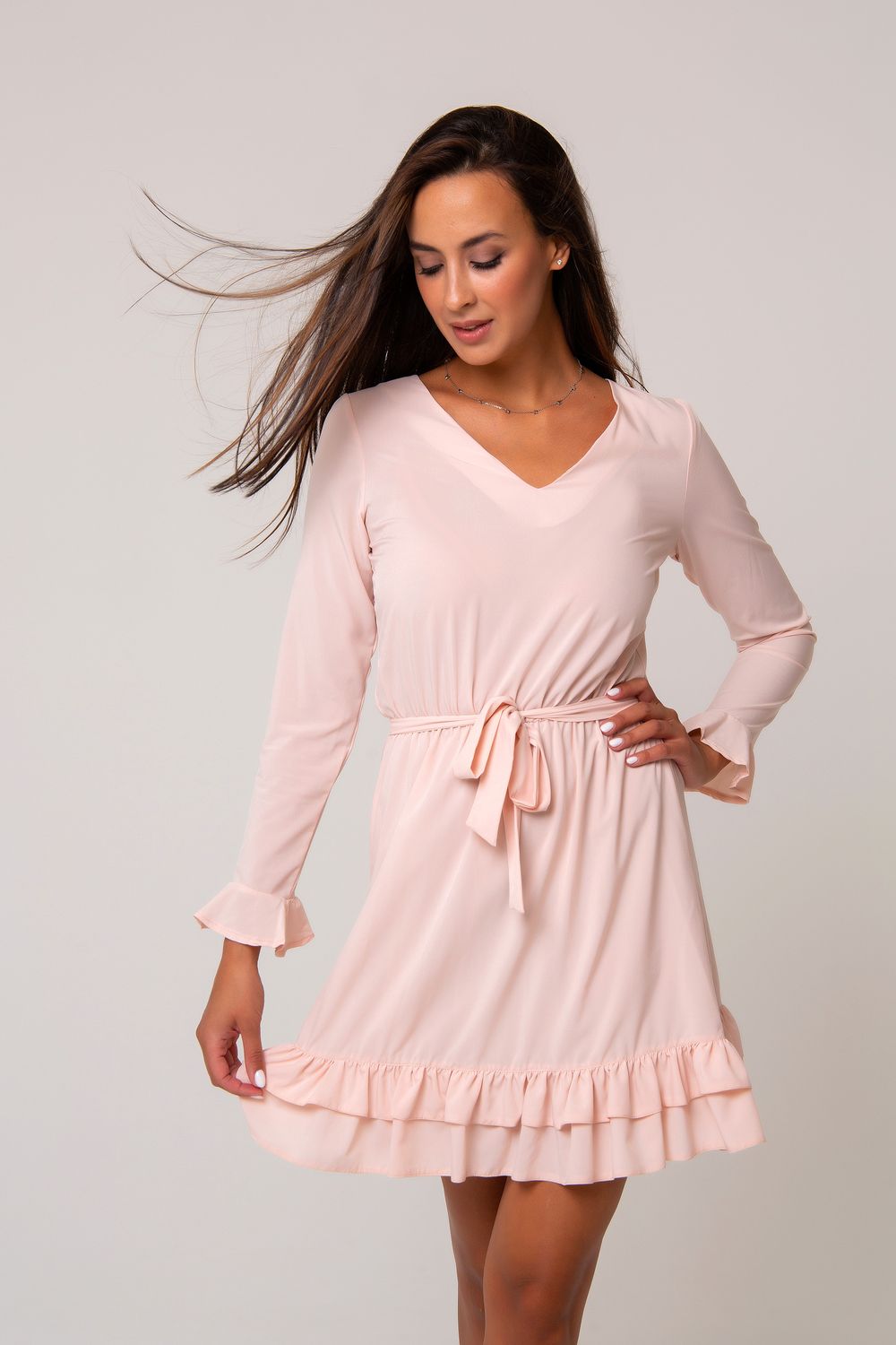 Новое изделие может иметь незначительный запах, после первой стирки он исчезнет, на носку или качество платье строгое это никак не повлияет.
