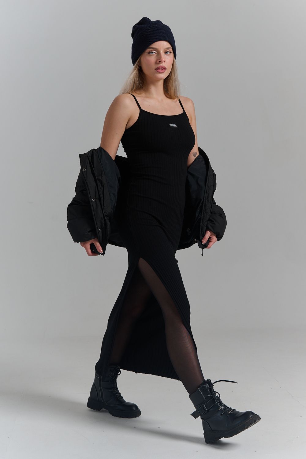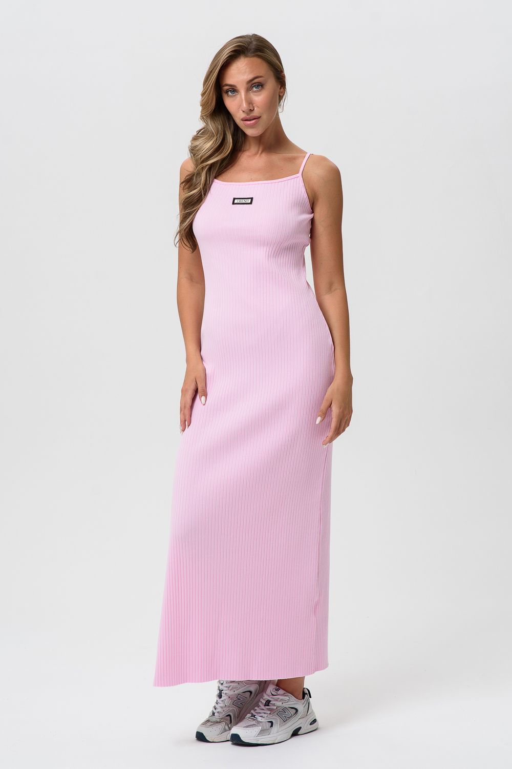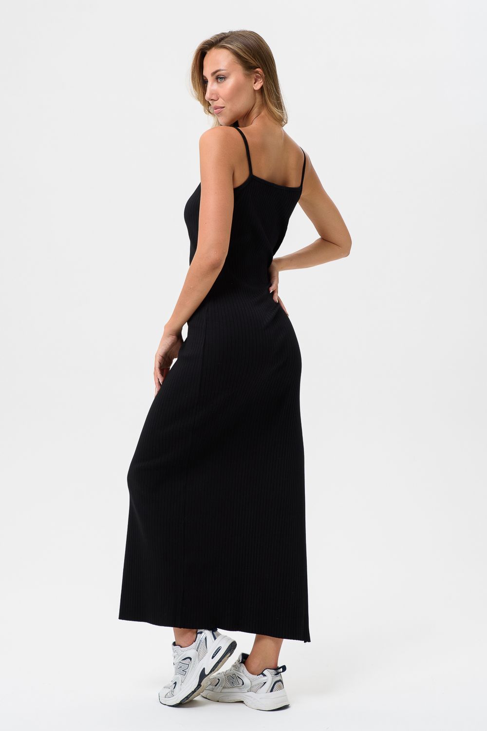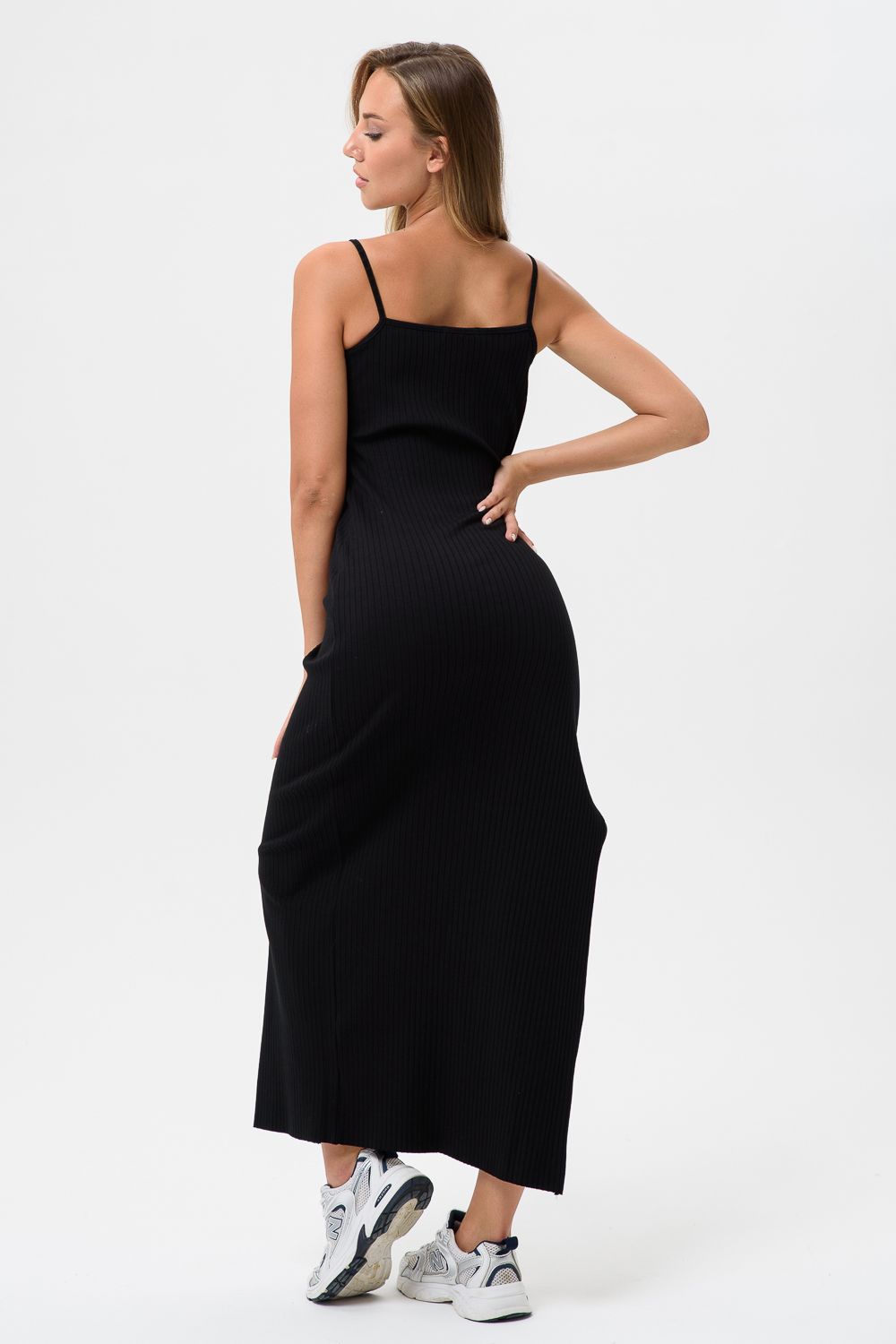 Длинное спортивное платье приталенного силуэта на тонких брительках. Мягкая ткань в рубчик обеспечивает комфорт. Идеальный вариант на каждый день или в отпуск, на море или путешествий и отдыха. Длинное сексуальное платье с разрезом идеально сочетается с любой спортивной обувью будь, то кроссовки, кеды, сандали.
