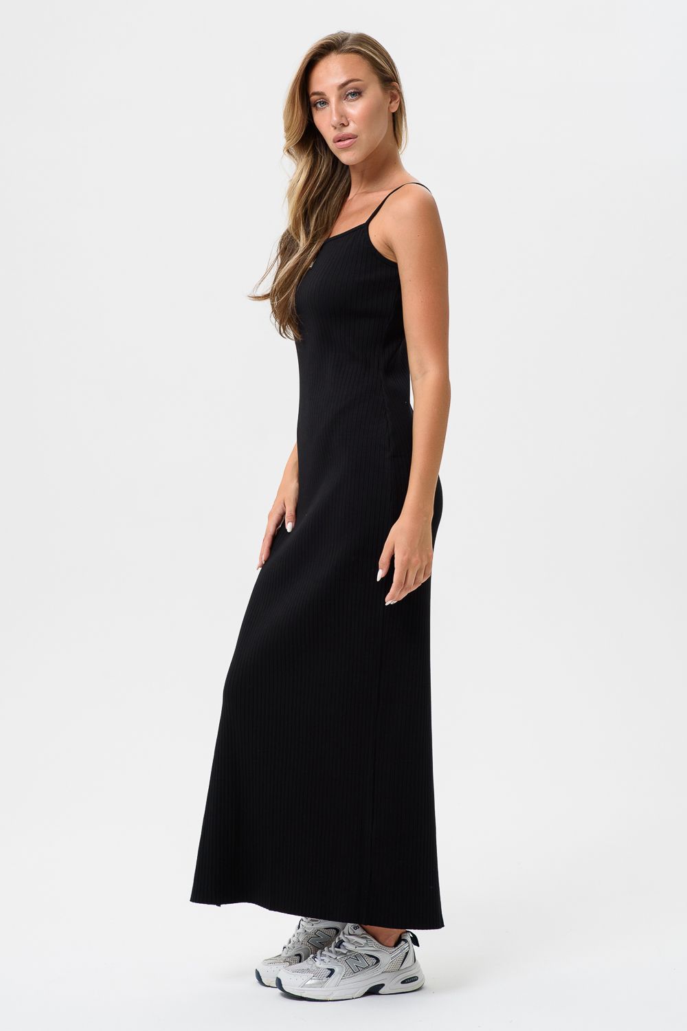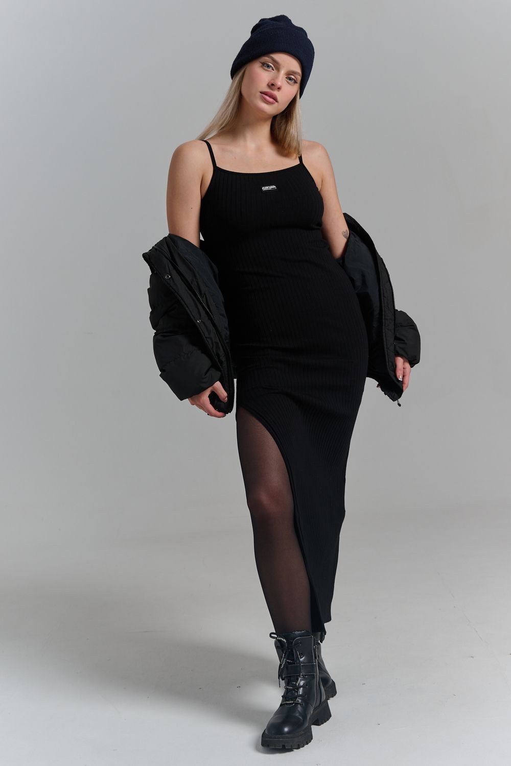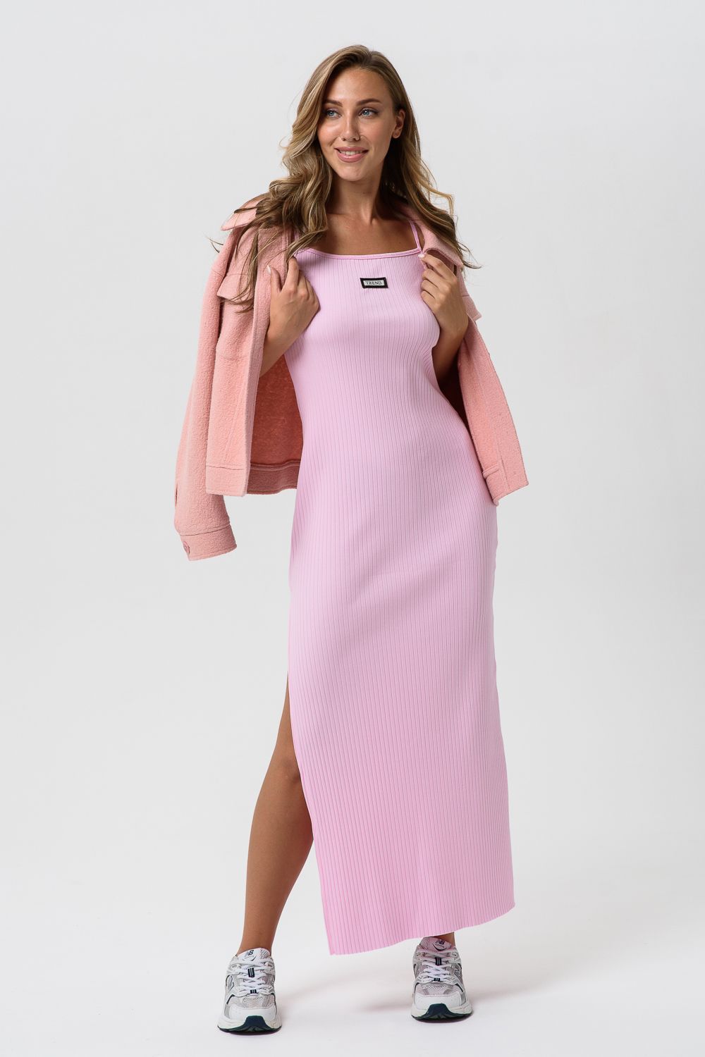 Длинное спортивное платье приталенного силуэта на тонких брительках. Мягкая ткань в рубчик обеспечивает комфорт. Идеальный вариант на каждый день или в отпуск, на море или путешествий и отдыха. Длинное сексуальное платье с разрезом идеально сочетается с любой спортивной обувью будь, то кроссовки, кеды, сандали.