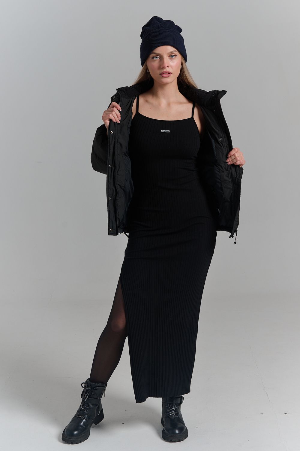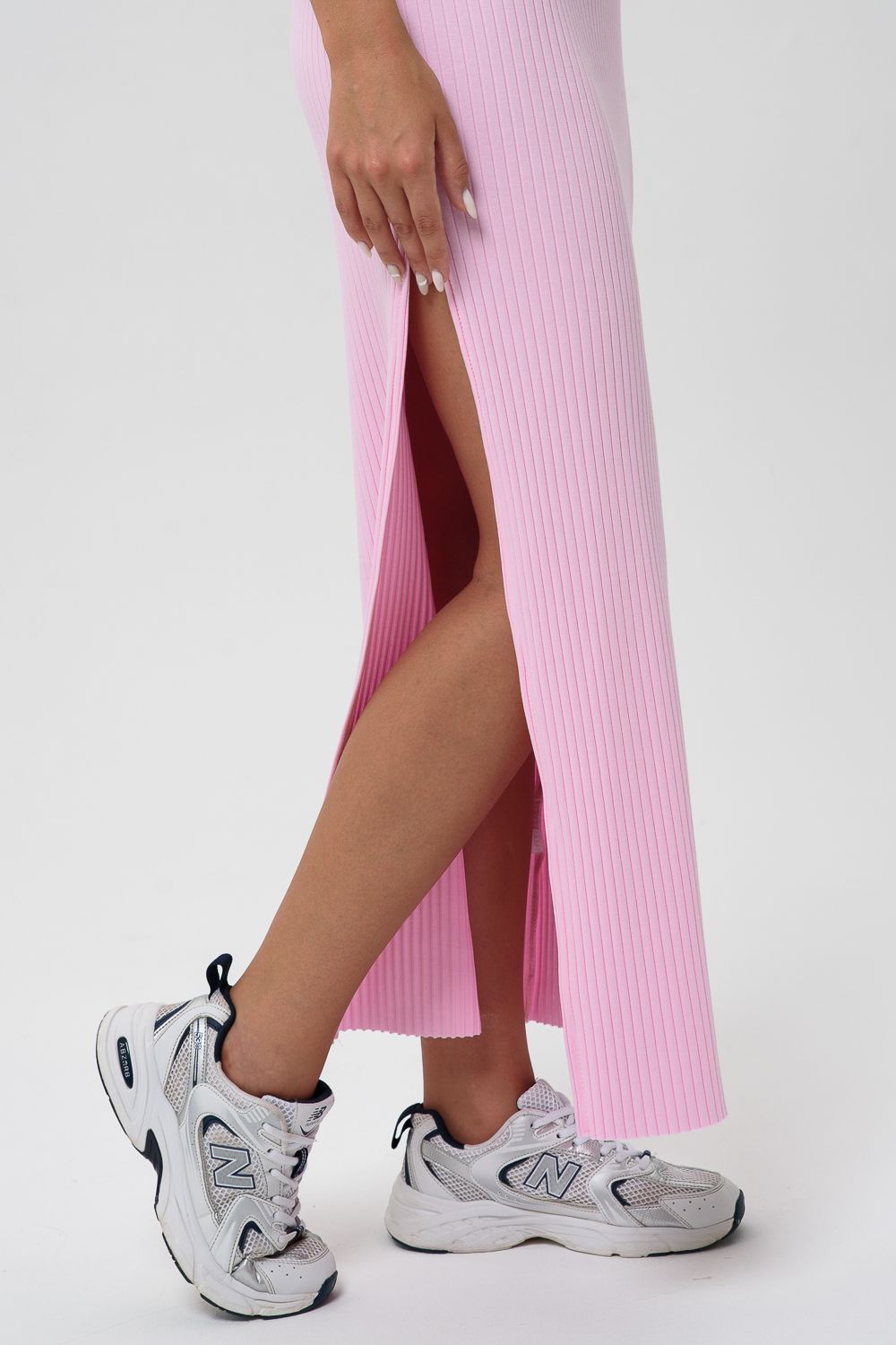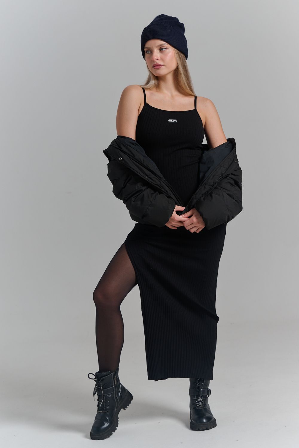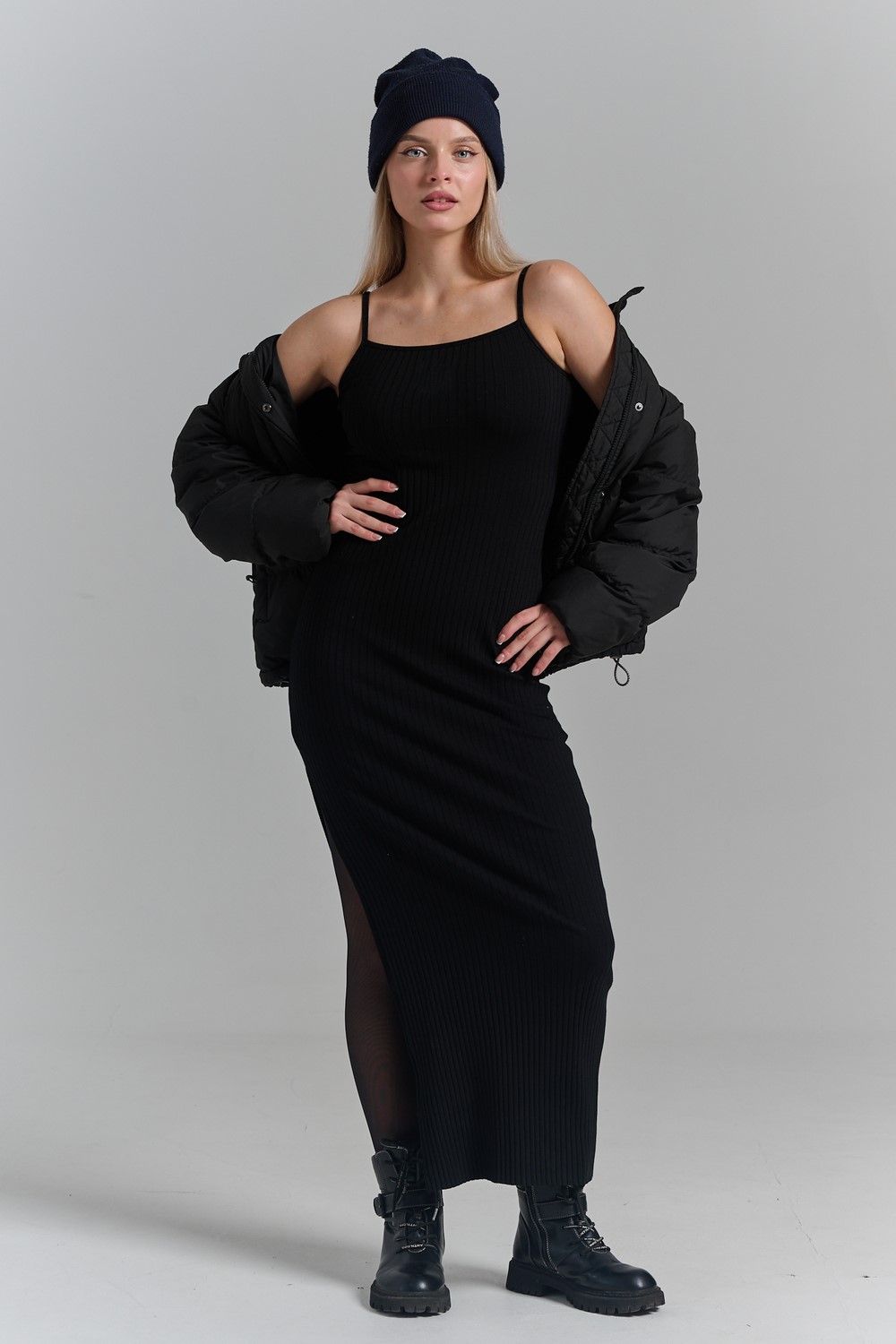 Длинное спортивное платье приталенного силуэта на тонких брительках. Мягкая ткань в рубчик обеспечивает комфорт. Идеальный вариант на каждый день или в отпуск, на море или путешествий и отдыха. Длинное сексуальное платье с разрезом идеально сочетается с любой спортивной обувью будь, то кроссовки, кеды, сандали.