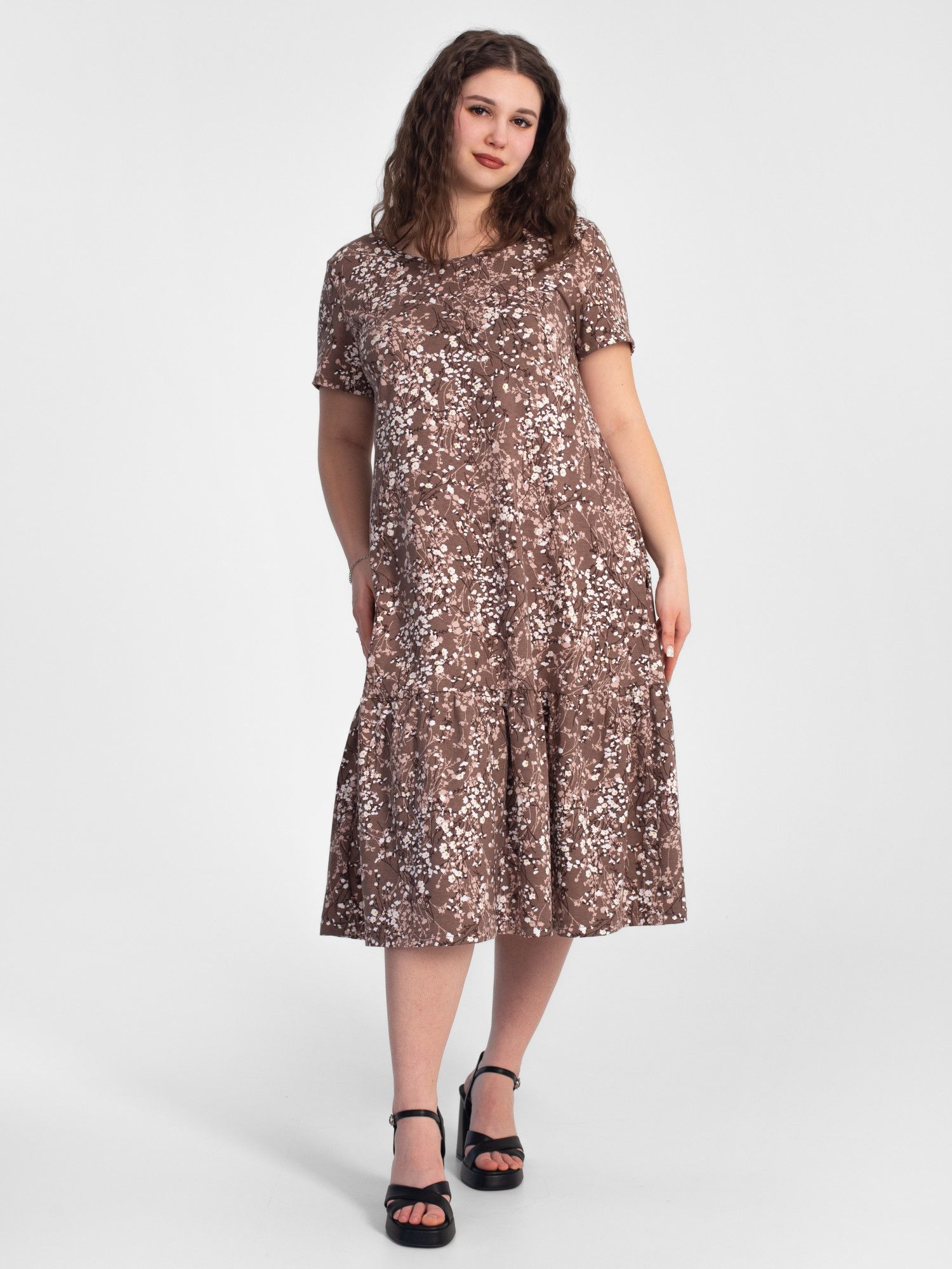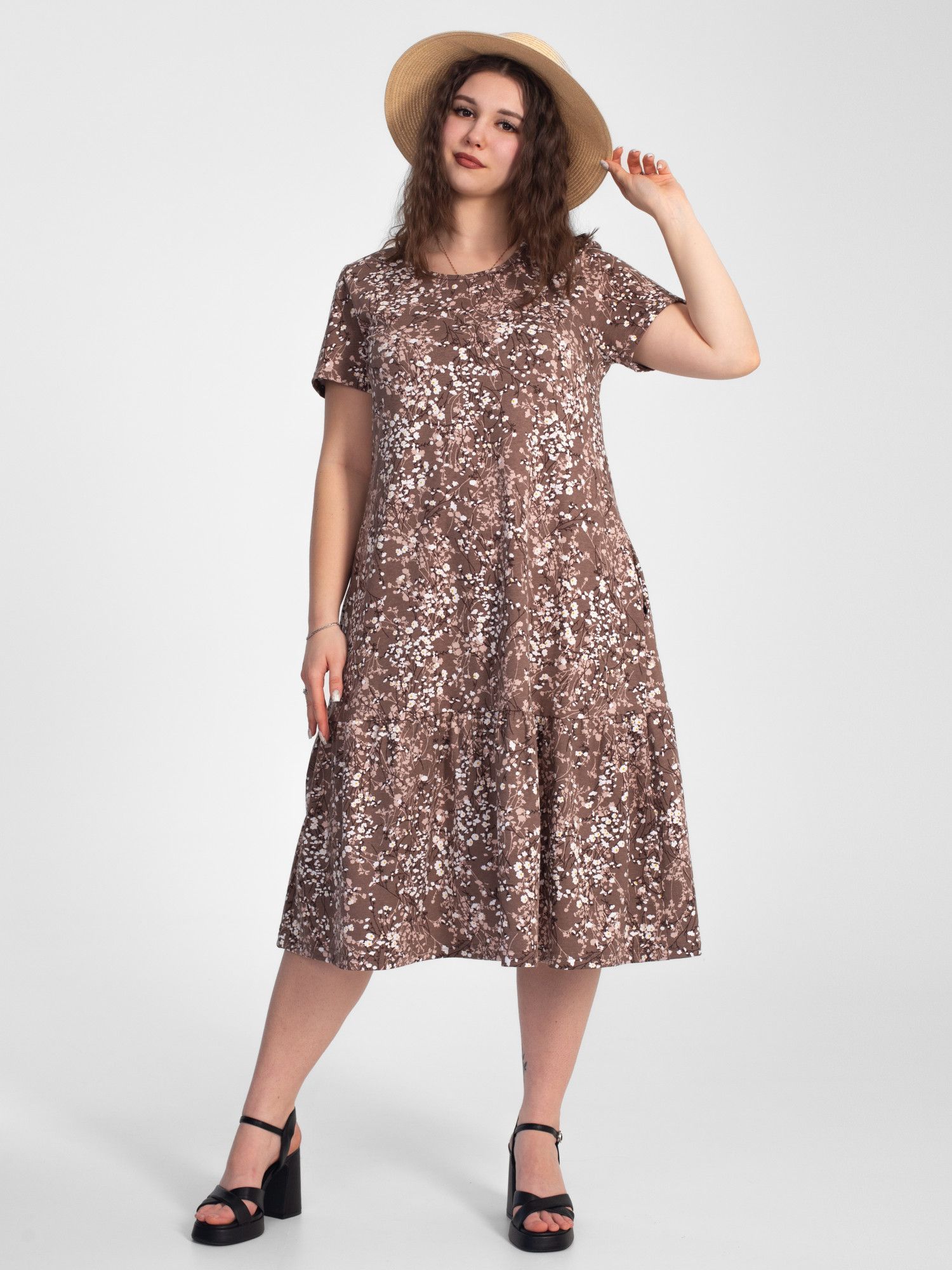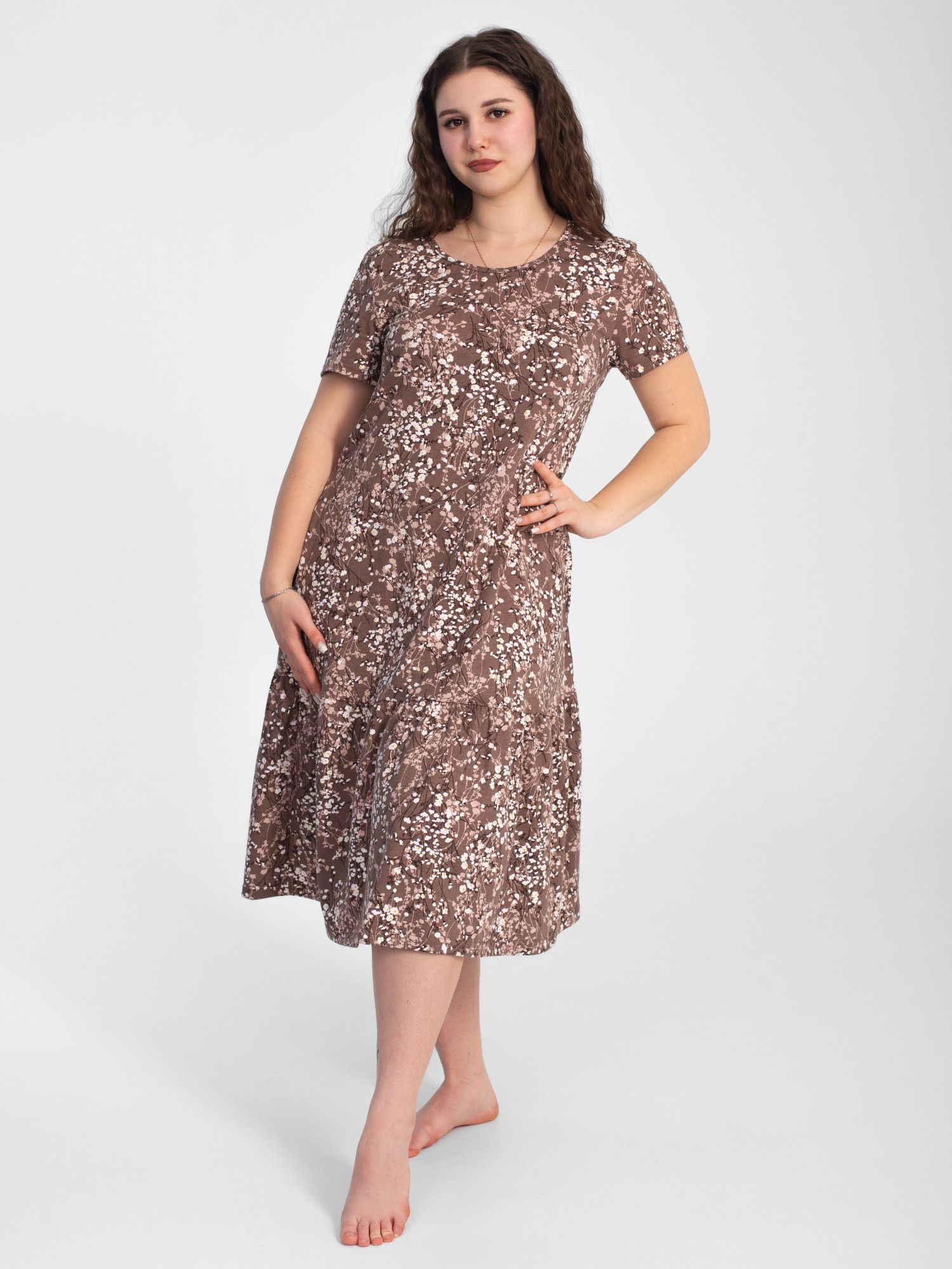 Платье женское кулирка "АГНИЯ" РОМАШКА КОФЕ
