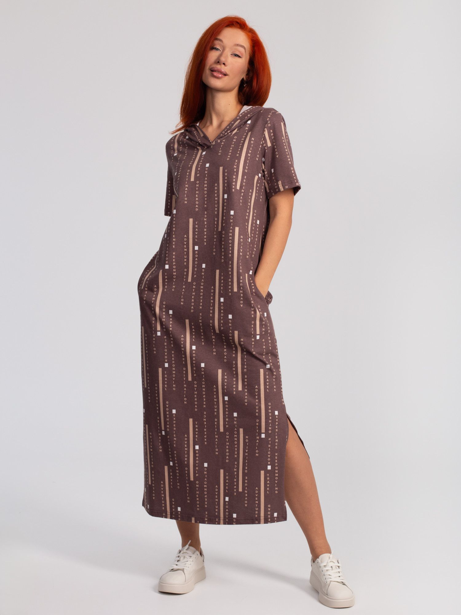 Платье женское кулирка с капюшоном "ПЕРФЕКТ" ШОКОЛАД