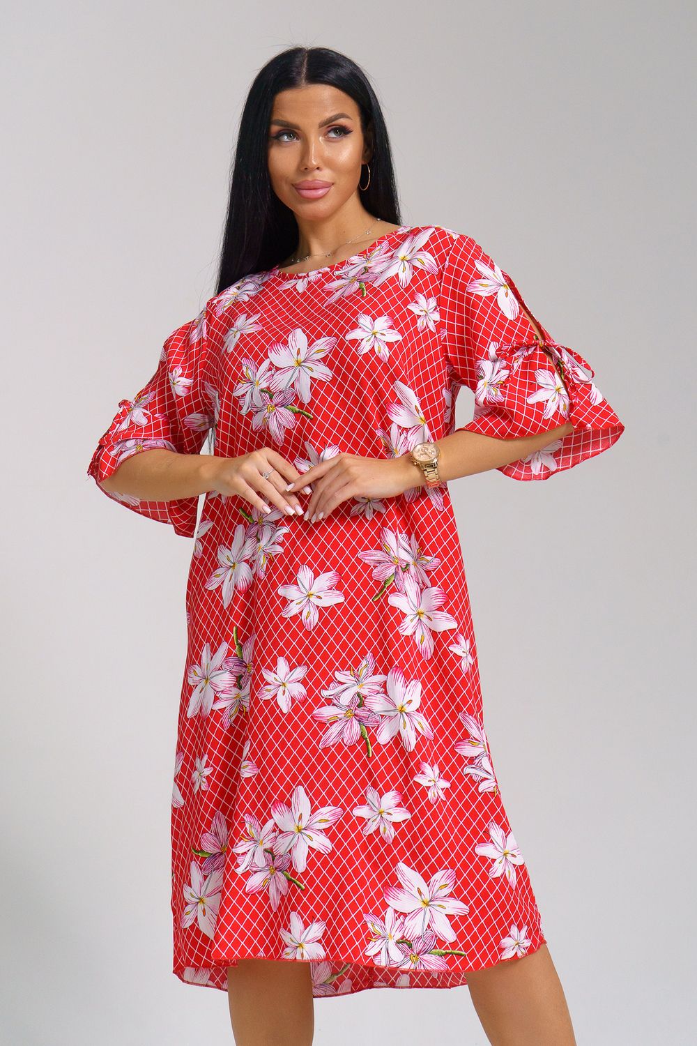 Платье «Лилия» — женственность и комфорт в каждой детали Представляем вашему вниманию изысканное платье «Лилия» из высококачественного штапеля — 100% вискозы, которое станет настоящей находкой для вашего ассортимента. Это платье сочетает в себе элегантность и практичность, идеально подходя для самых разных случаев. Почему «Лилия» — выбор для вашего бизнеса? Уникальный дизайн рукавов с регулируемыми завязками позволяет создавать разные образы — от романтичных до повседневных. Цельнокроеная кокетка с плавным переходом плечевых швов подчеркивает изящность силуэта и обеспечивает комфорт при носке. Аккуратная отделка горловины и низа придает изделию завершенный и профессиональный вид. Легкая, дышащая ткань штапель (100% вискоза) гарантирует комфорт даже в жаркую погоду, что особенно важно для летних коллекций. Платье подойдет на любой случай: Повседневный стиль: Идеально для офисных будней и прогулок — сочетайте с легкими балетками или сандалиями. Вечерние выходы: Добавьте яркие аксессуары и каблуки — и вы готовы к романтическому ужину или встрече с друзьями. Праздничные мероприятия: Благодаря оригинальному дизайну рукавов платье отлично подойдет для семейных торжеств и корпоративов. Туристический гардероб: Легкость и комфорт ткани делают «Лилию» незаменимой в путешествиях и отпуске. Преимущества для оптовых покупателей: Конкурентоспособная цена при высоком качестве. Универсальный размерный ряд и привлекательный дизайн. Быстрая поставка и гибкие условия сотрудничества. Добавьте в ваш ассортимент платье «Лилия» — продукт, который оценят ваши клиенты за стиль, комфорт и качество!