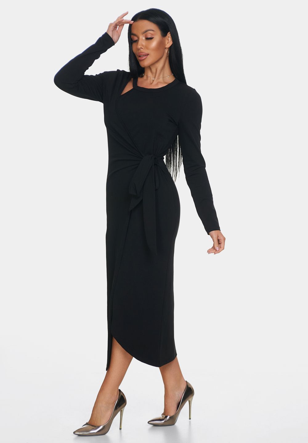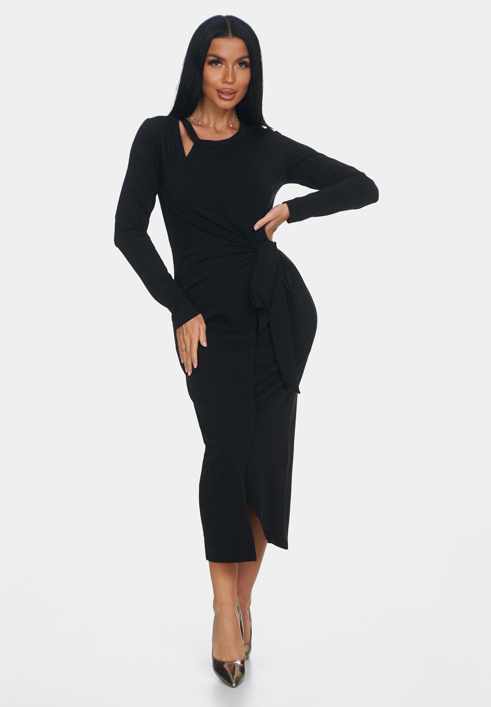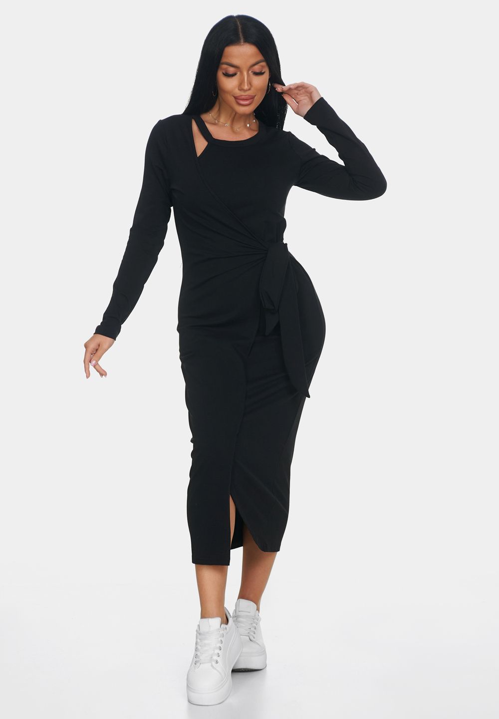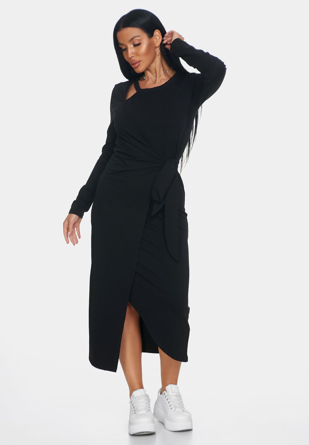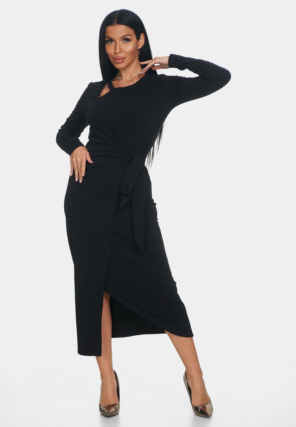 Элегантное платье — идеальный выбор для создания женственного и комфортного образа. Платье офисное с длинной макси и длинными рукавами создаст утонченный и воздушный силуэт, подчеркивая вашу фигуру и обеспечивая полную свободу движений. Повседневное платье выполнено с эффектом запаха, что делает образ непринужденным и в то же время очень стильным. Необычный вырез у шеи — еще одна изюминка этой модели. Такой вырез добавляет уникальности и акцента в образ, при этом оставаясь элегантным и сдержанным.